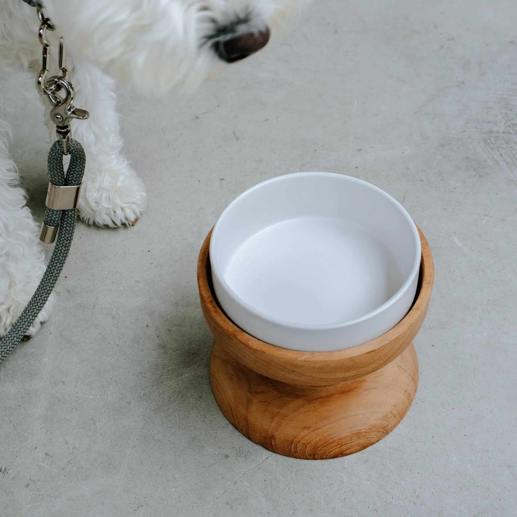 そのまま床に置いてフードやお水のボウルとして使えますが、別売りのフォイヌ・フードボウルスタンドにのせて使えば、ワンちゃんがより食べやすく、見た目にもインテリアに映えますよ。