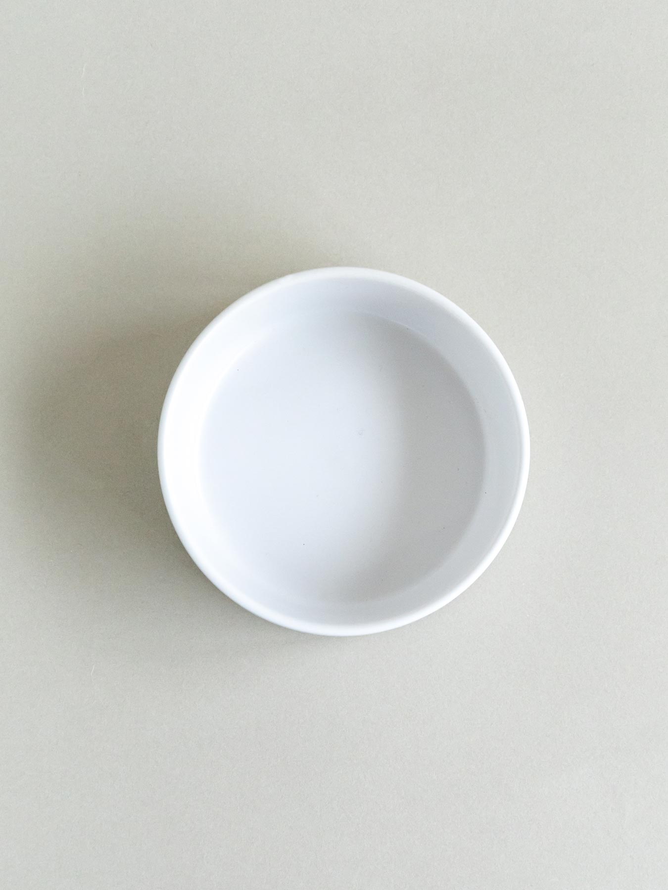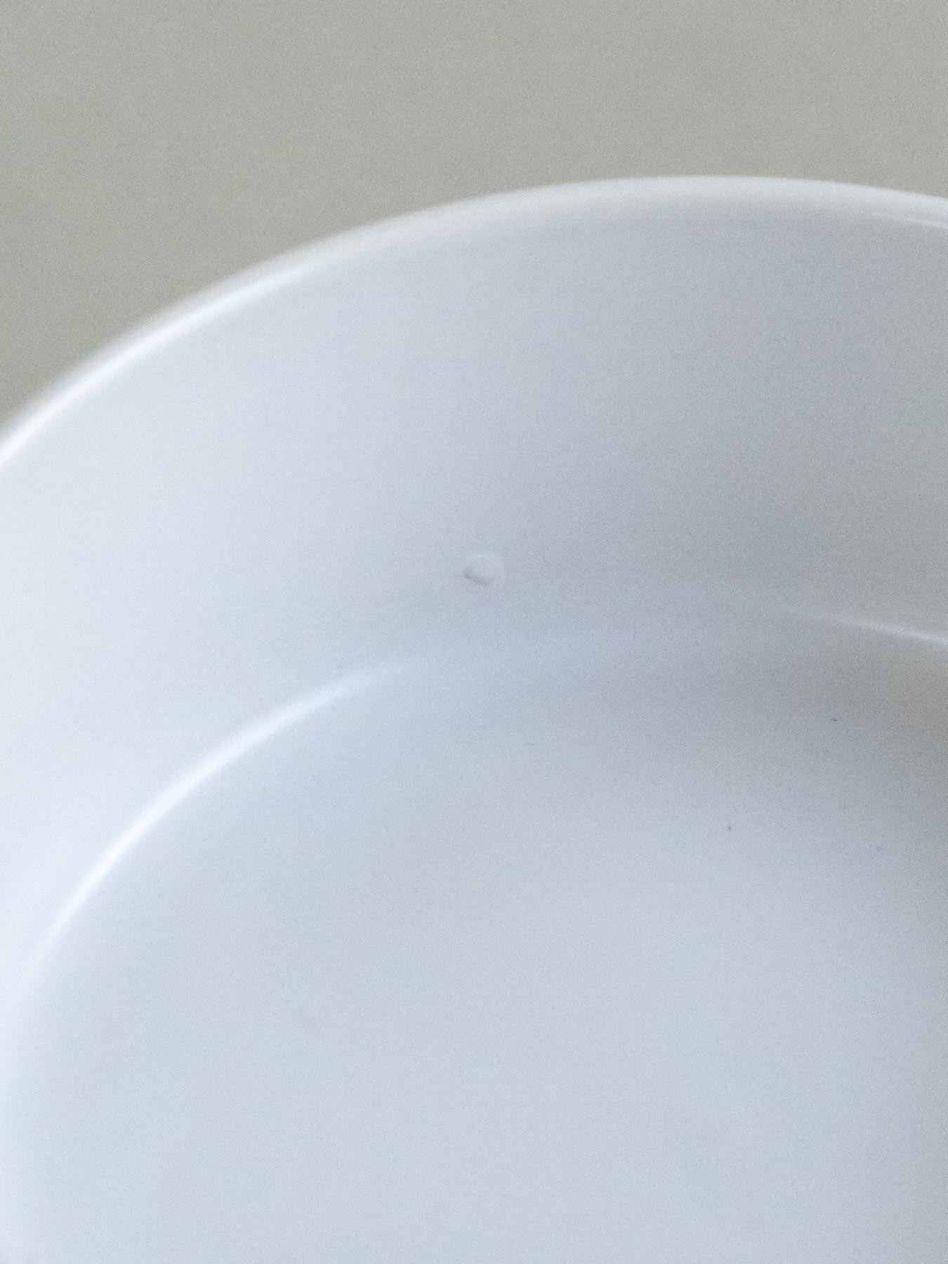 ストンと直線的なフォルムで安定感あり。フチが垂直に立ち上がっているので、フードも飛び散りにくいです。