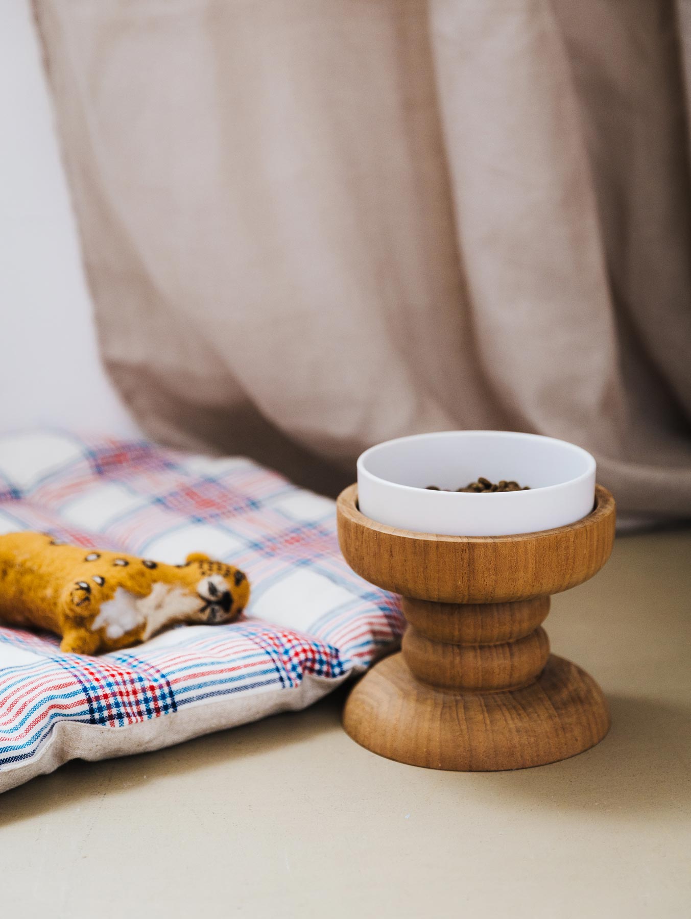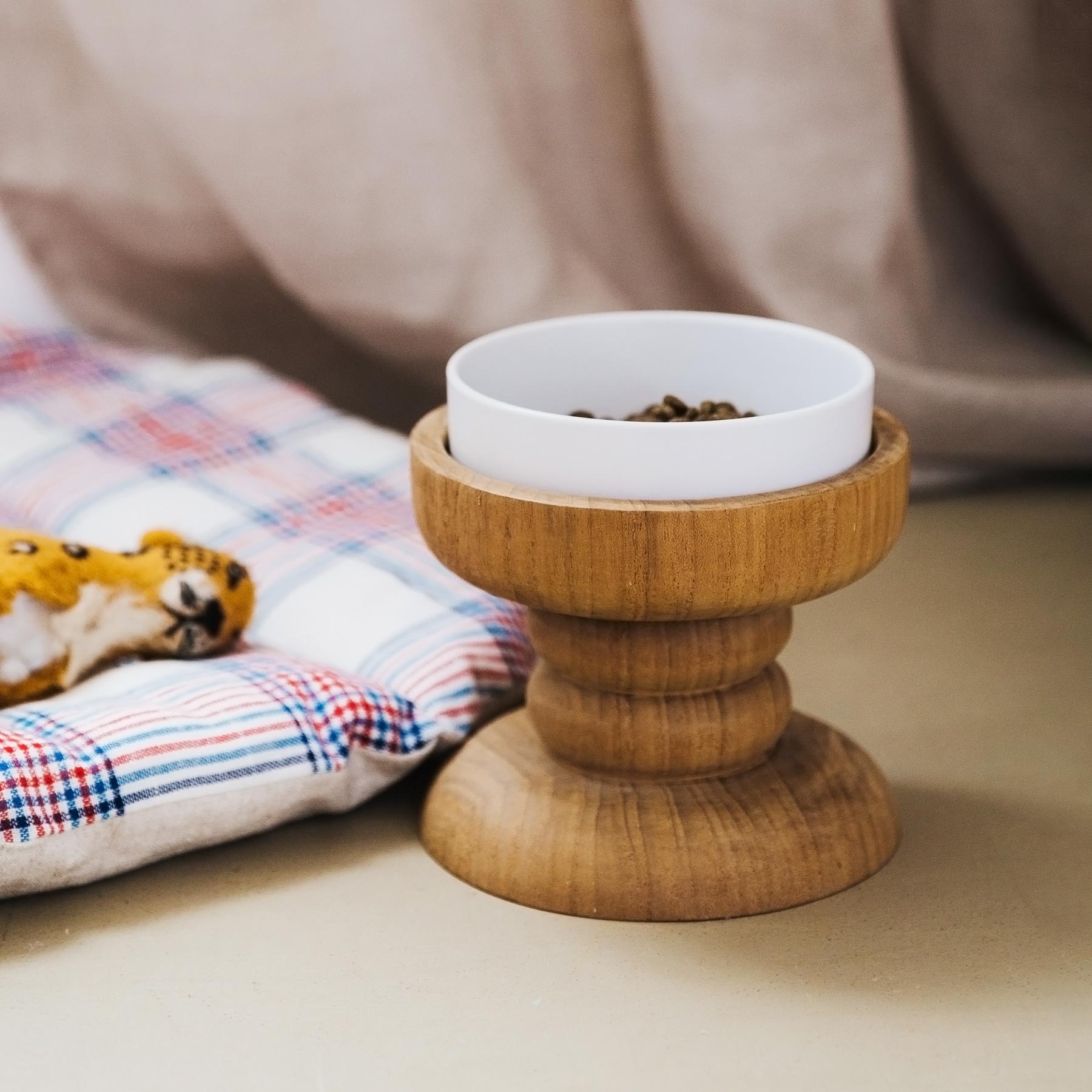 ウッドターニングで削り出した、絵になるシルエットを引き継ぎつつ、猫用よりもひとまわり大きくして、ボウル部分の形状も犬用に改良しています(ボウルとスタンドは別売りです)。