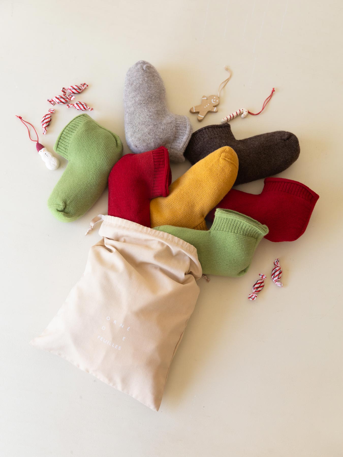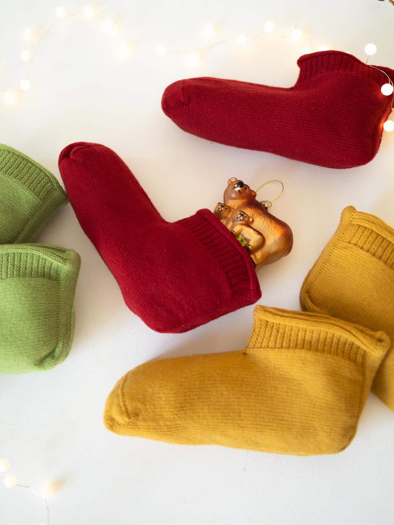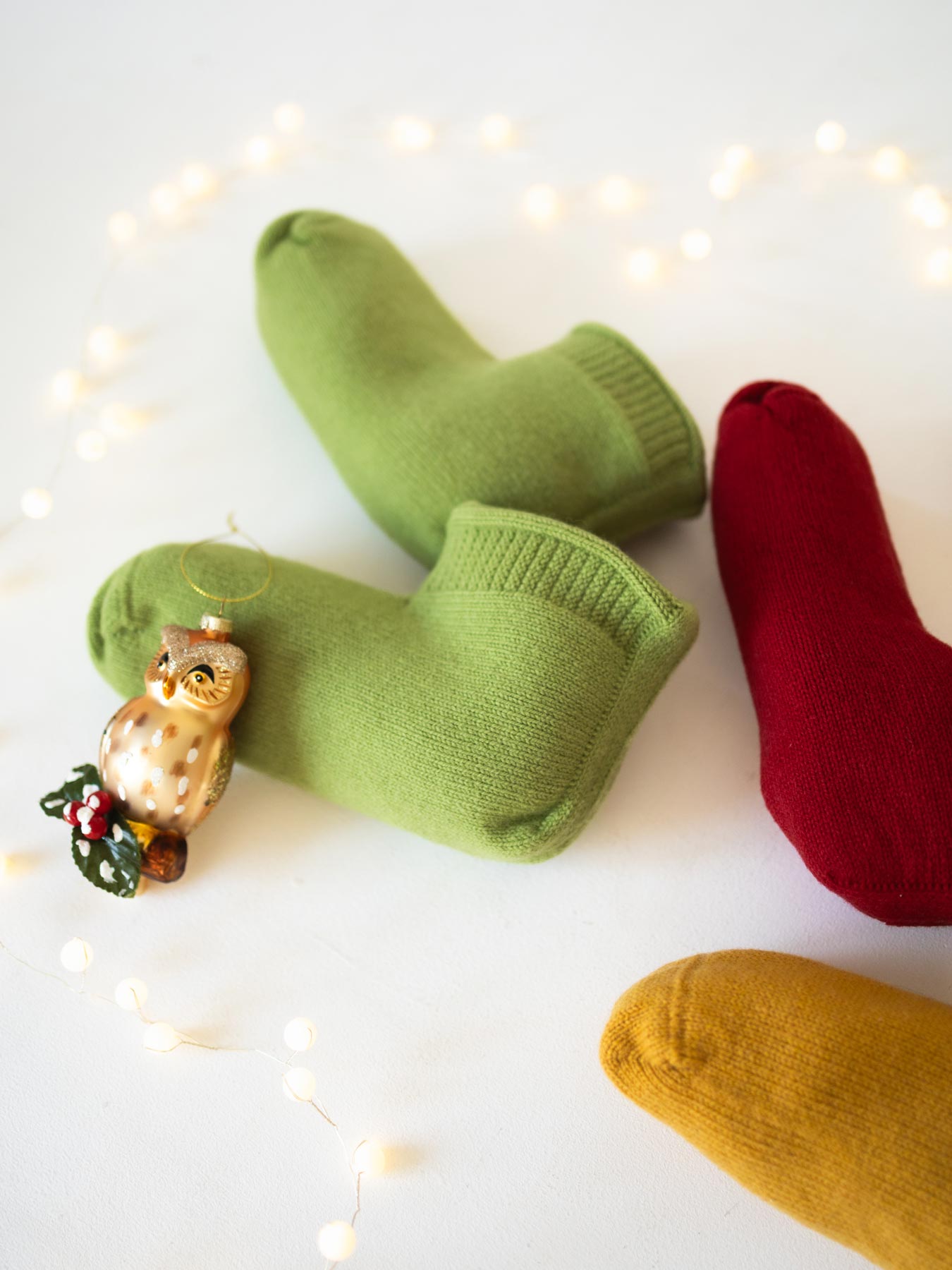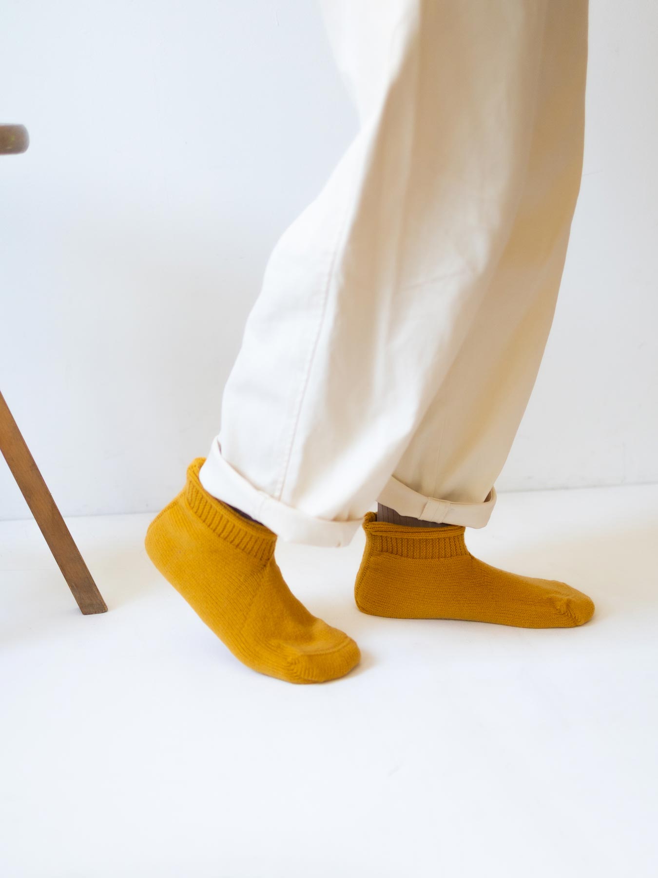 カラフルな3色は、ウールとコットンの混紡です。毛羽立ちの少ない表面で、より丈夫なので、気軽に毎日履くのにぴったり。