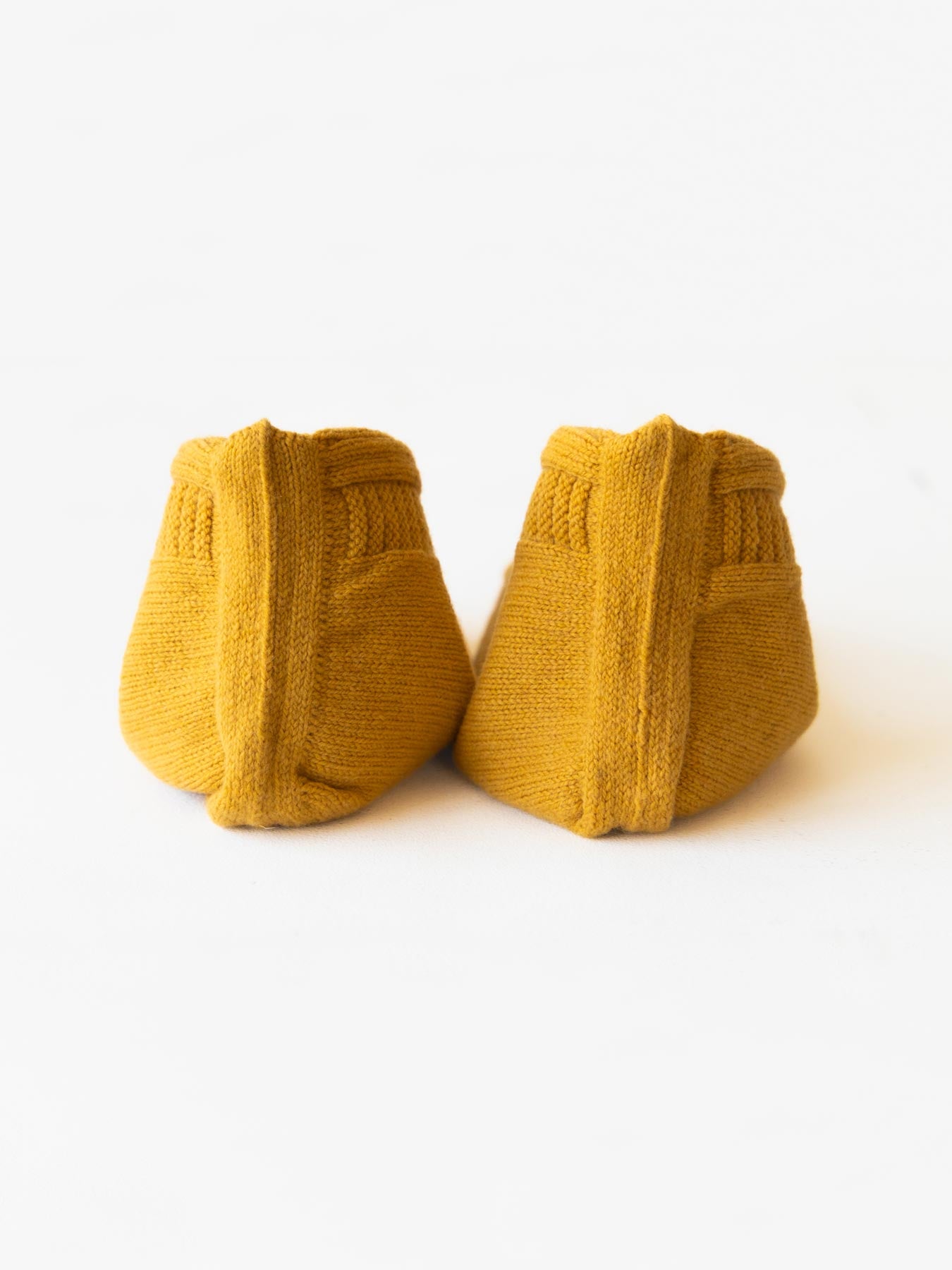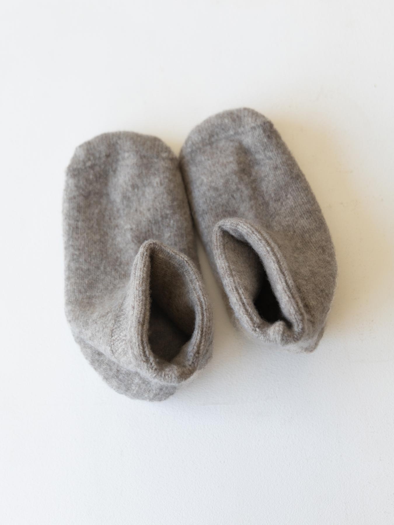ウールの糸を使用した2重構造で仕立てられ、空気を多く含むので保温性に優れています。ほどよいホールド感があり、靴下やタイツの上から、あるいは素足に履いても心地良いですよ。