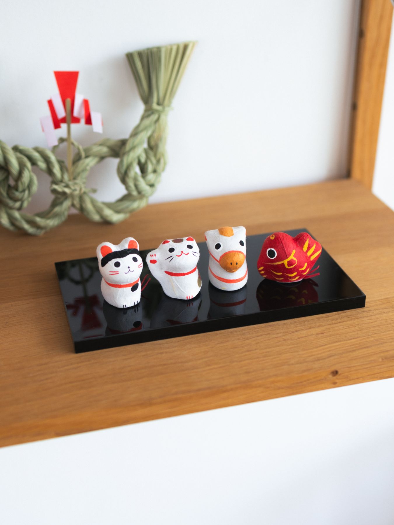 | サイズ | 【招き猫】幅4cm×奥行2.5cm×高さ4cm 【生涯安鯛】幅5cm×奥行2.5cm×高さ4cm 【午(うま)】幅4cm×奥行3cm×高さ4cm 【戌(いぬ)】幅3cm×奥行3cm×高さ4.5cm |