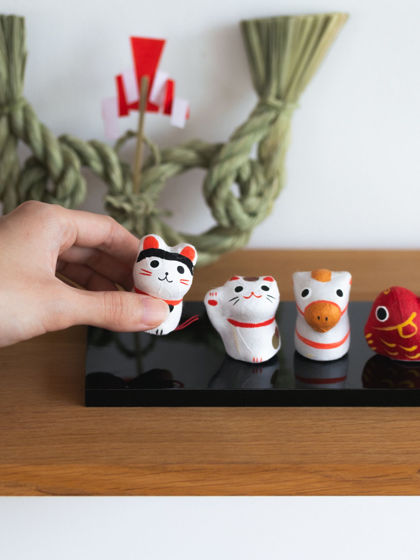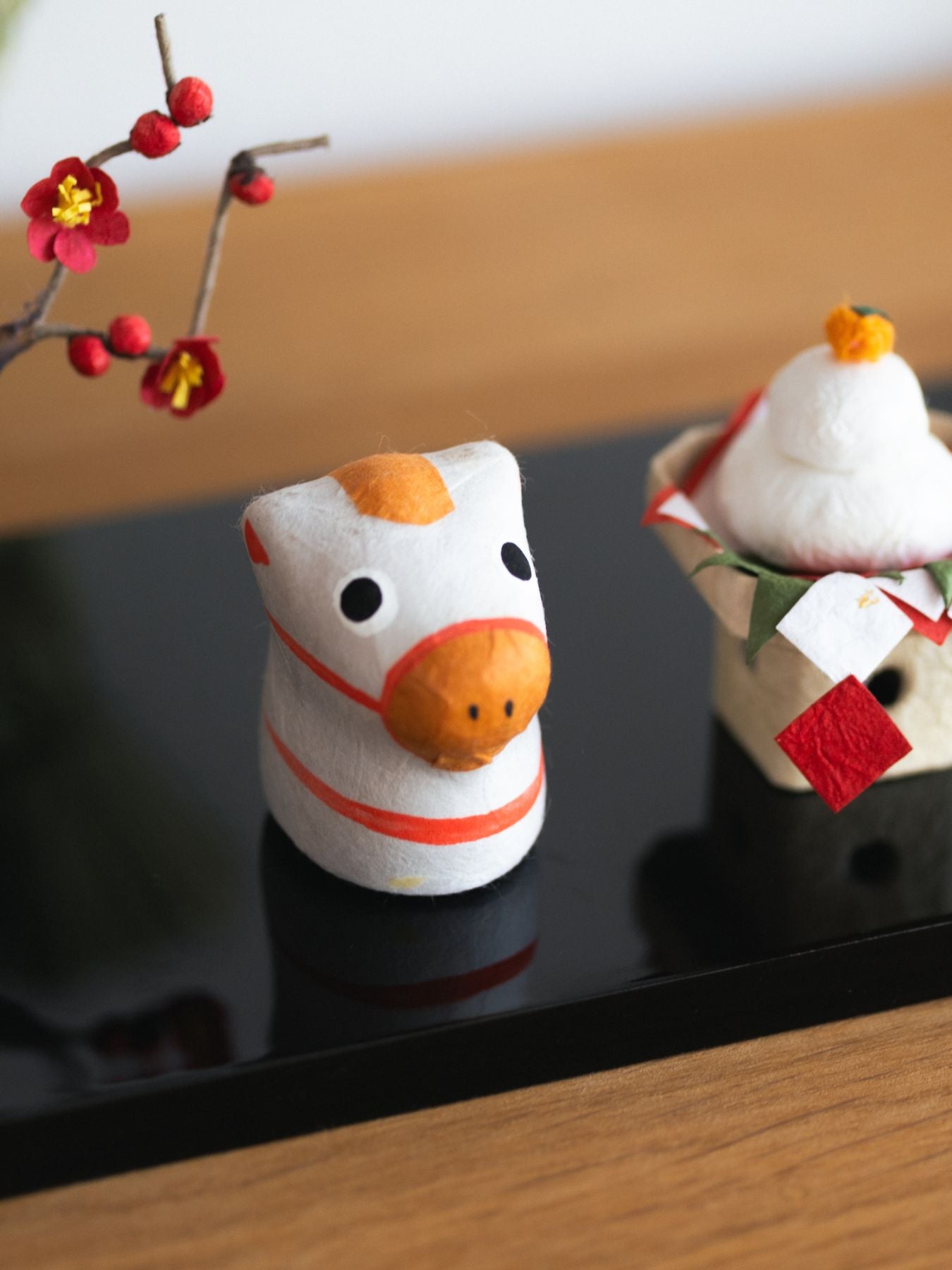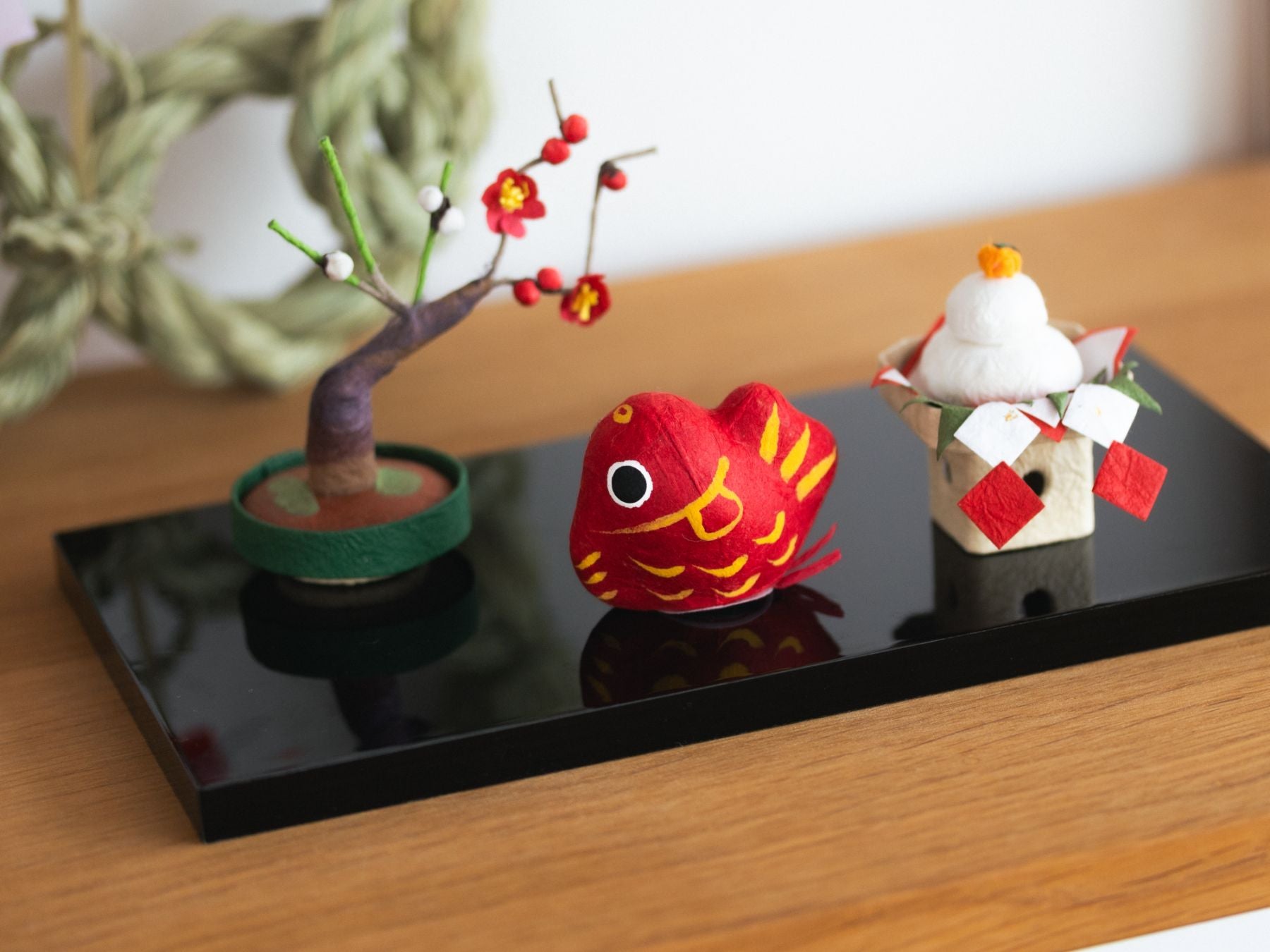 和紙のミニチュア飾りでお正月に遊び心とめでたさを 和紙のお正月飾り