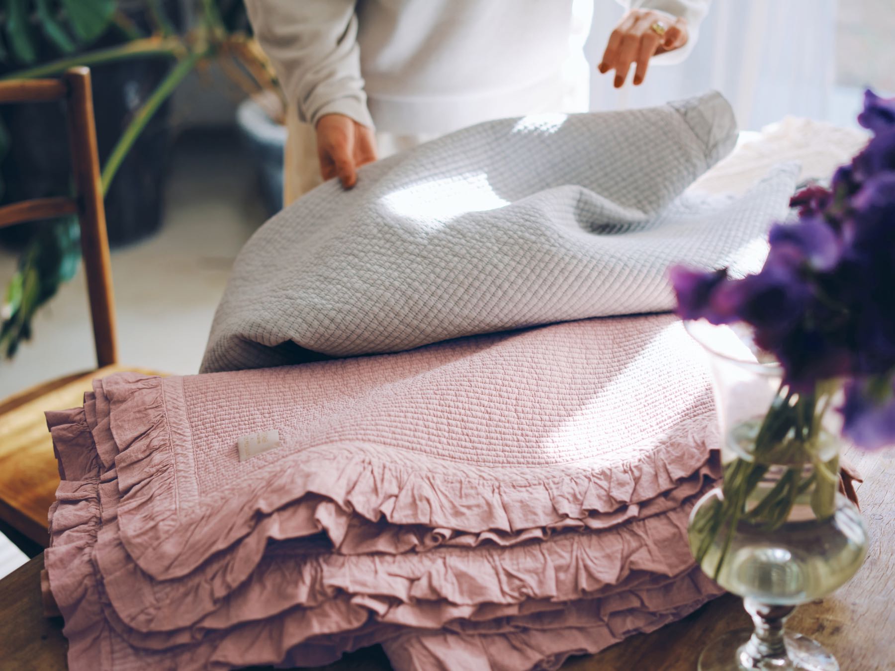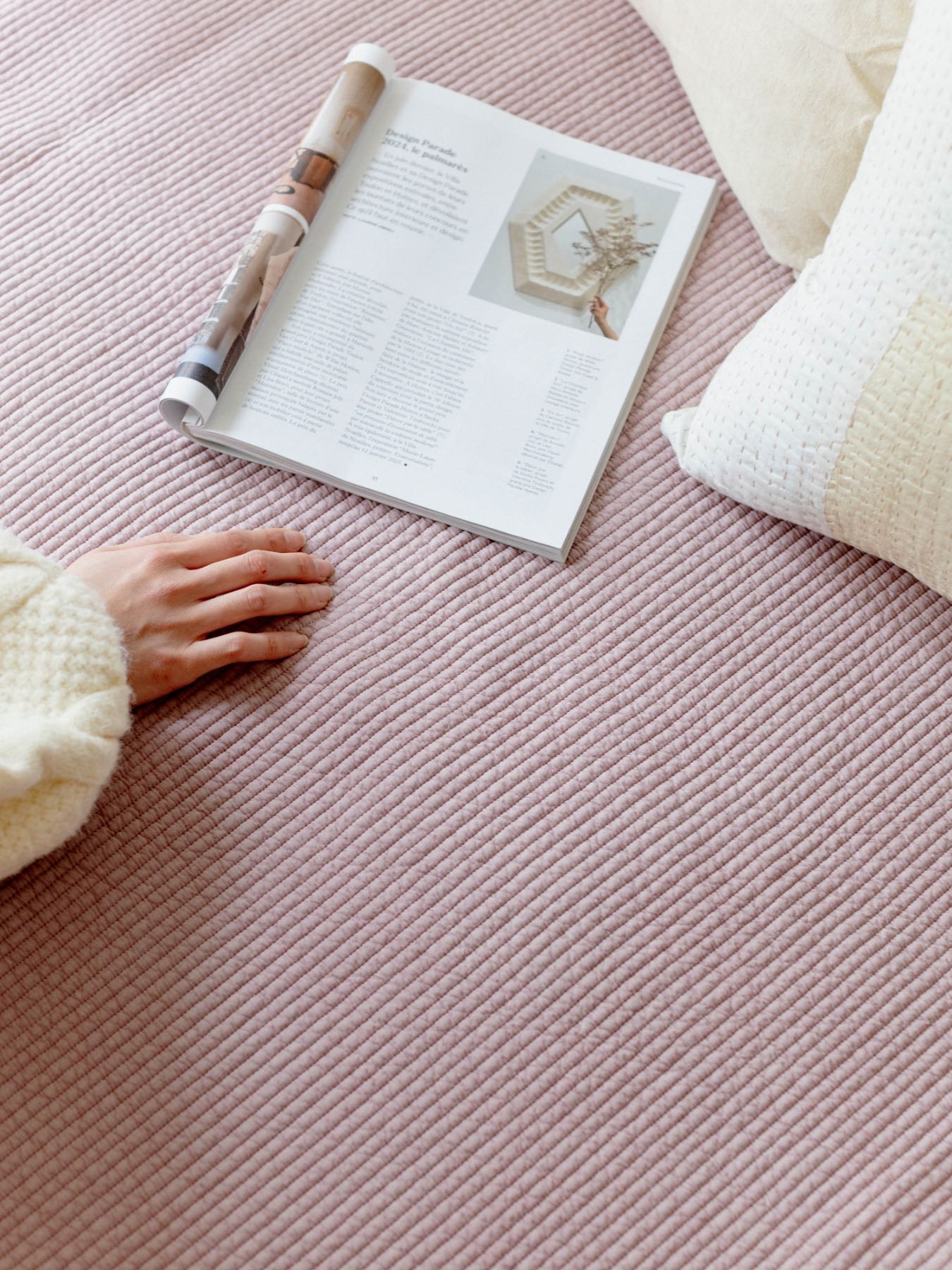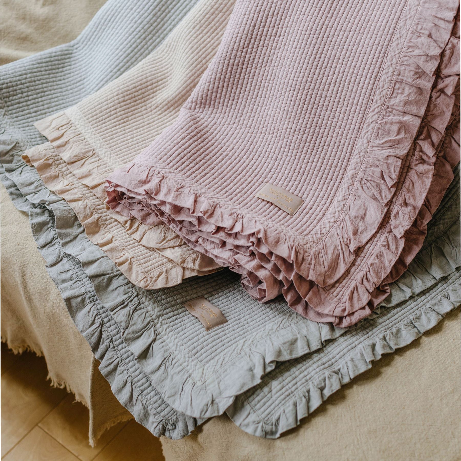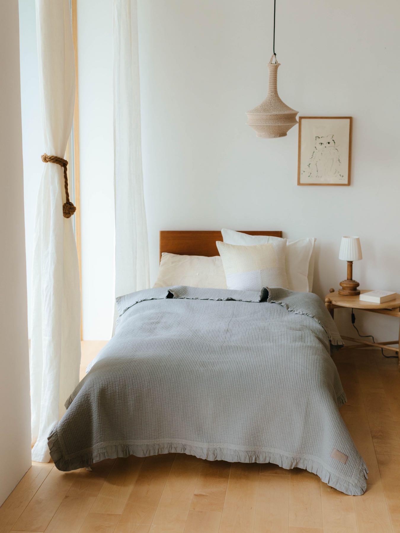柔らかな布の表情や心地よい肌触りが魅力の韓国キルト・イブルに、雅姫さんのヴィンテージシックな感性が重なり、今の暮らしに寄り添う理想の一枚に仕上がりました。