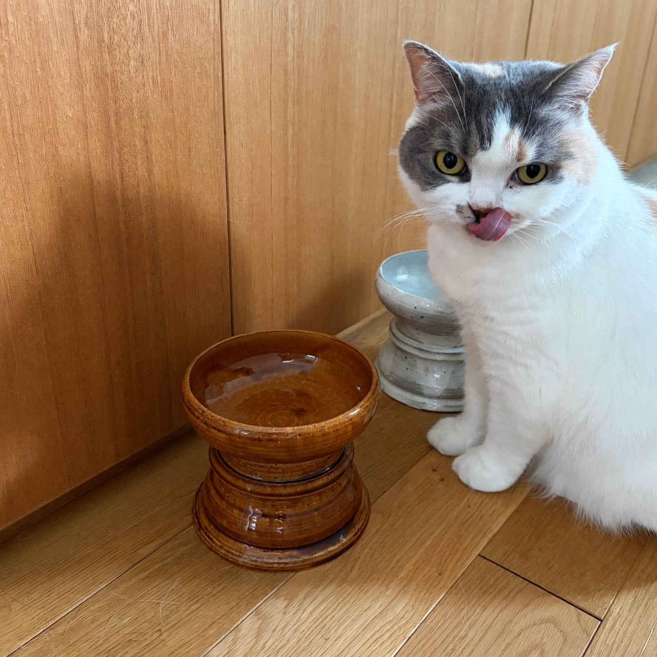 ボウルとスタンドは一体型に見えて、実はセパレート仕様。見た目の美しさと実用性を両立した、こだわりのデザインです。ネコにも人にもやさしい、食べやすく使いやすい形に仕上げました。