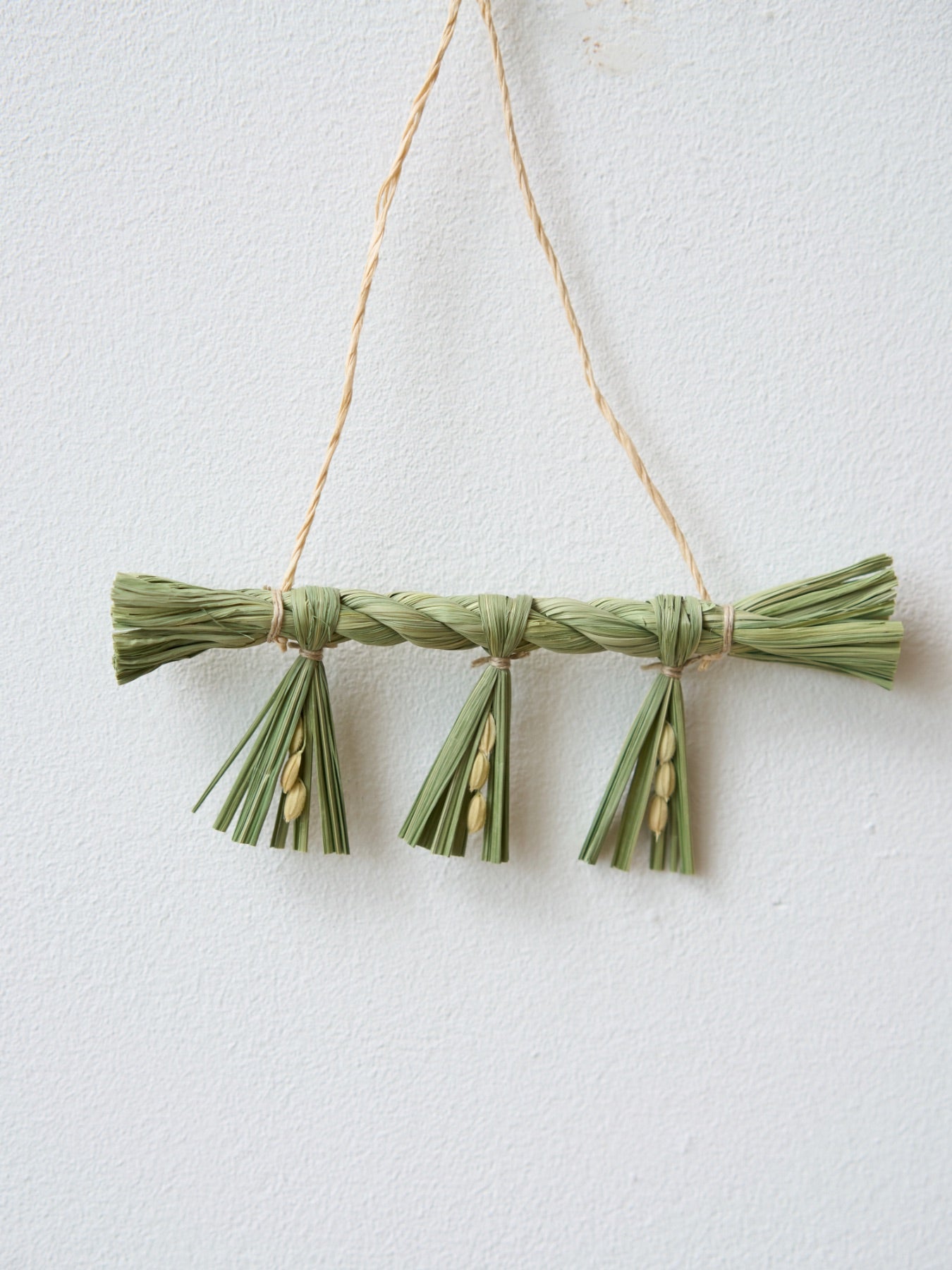 横幅12cmと小さいですが、青々と美しい稲藁の風合いも感じられますよ。ちらりと覗く稲の実も可愛らしいです。