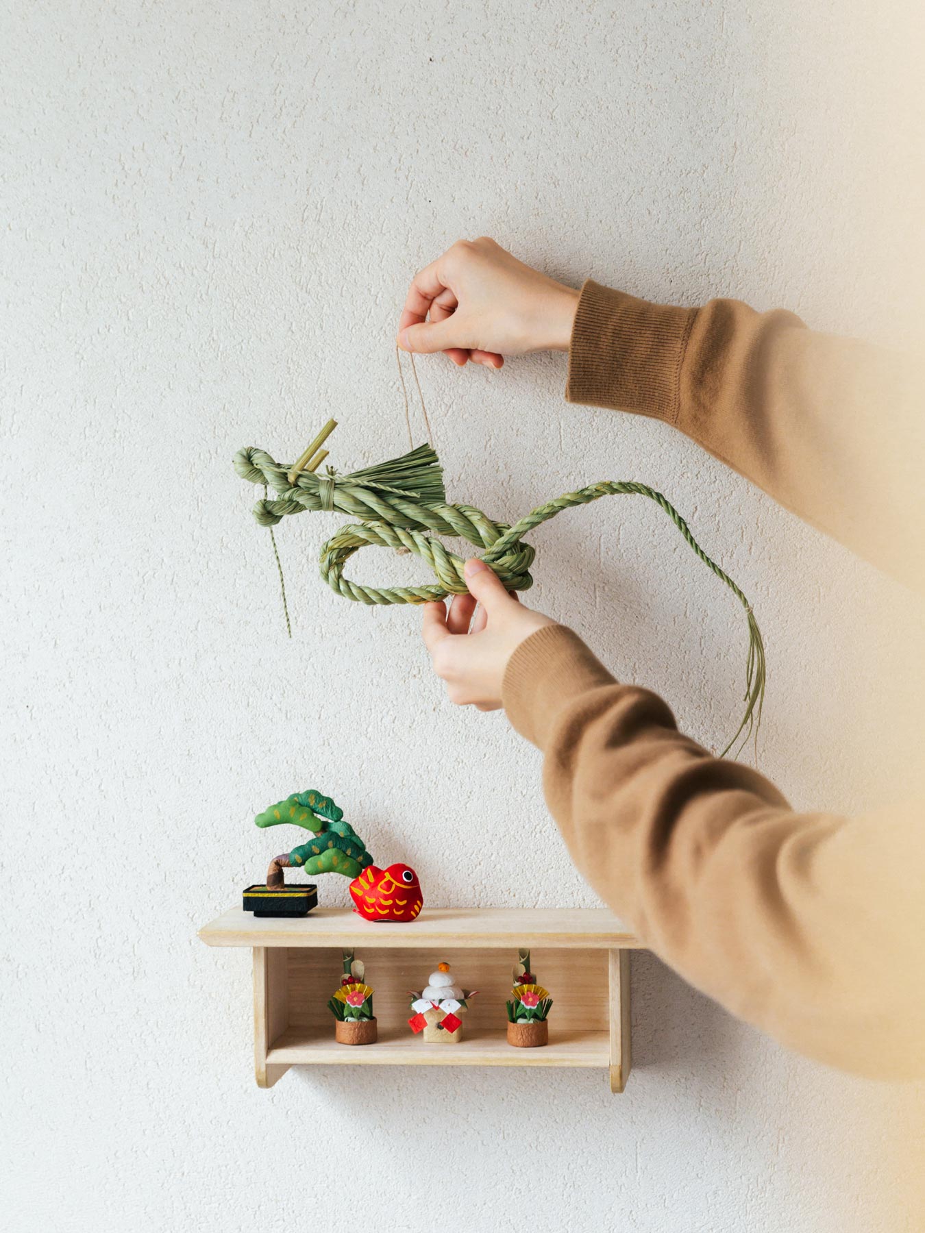 わら飾りは初めてという方や、小さなスペースに飾りたい方にもぴったり。浮遊しているようなナチュラルなデザインは気軽に飾れて、今の暮らしにもフィットします。