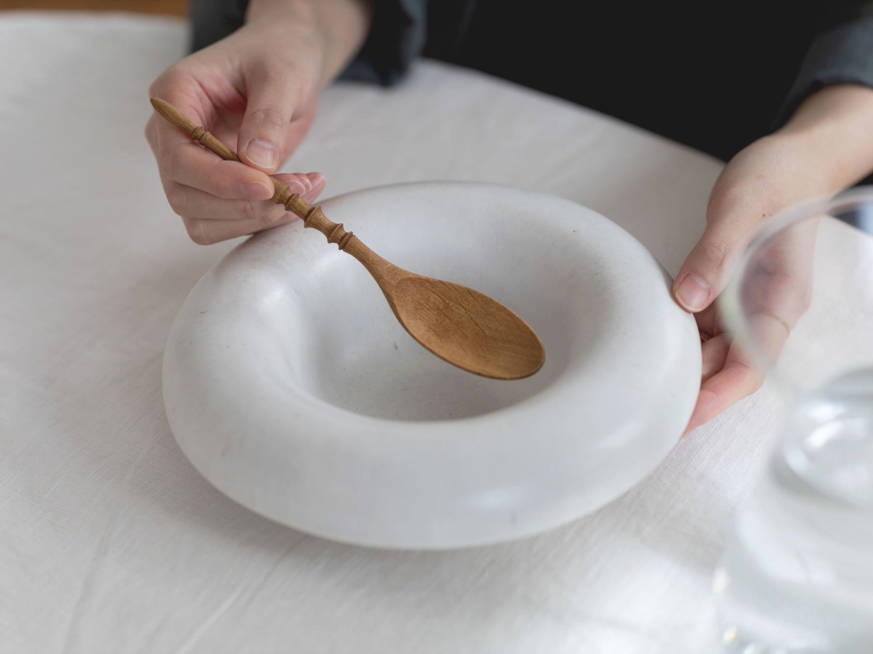ウッドカトラリーというと素朴なものが多い中、鈴木さんのカトラリーは細身のフォルムで、木製品のイメージを覆す美しく繊細なデザインが特徴です。