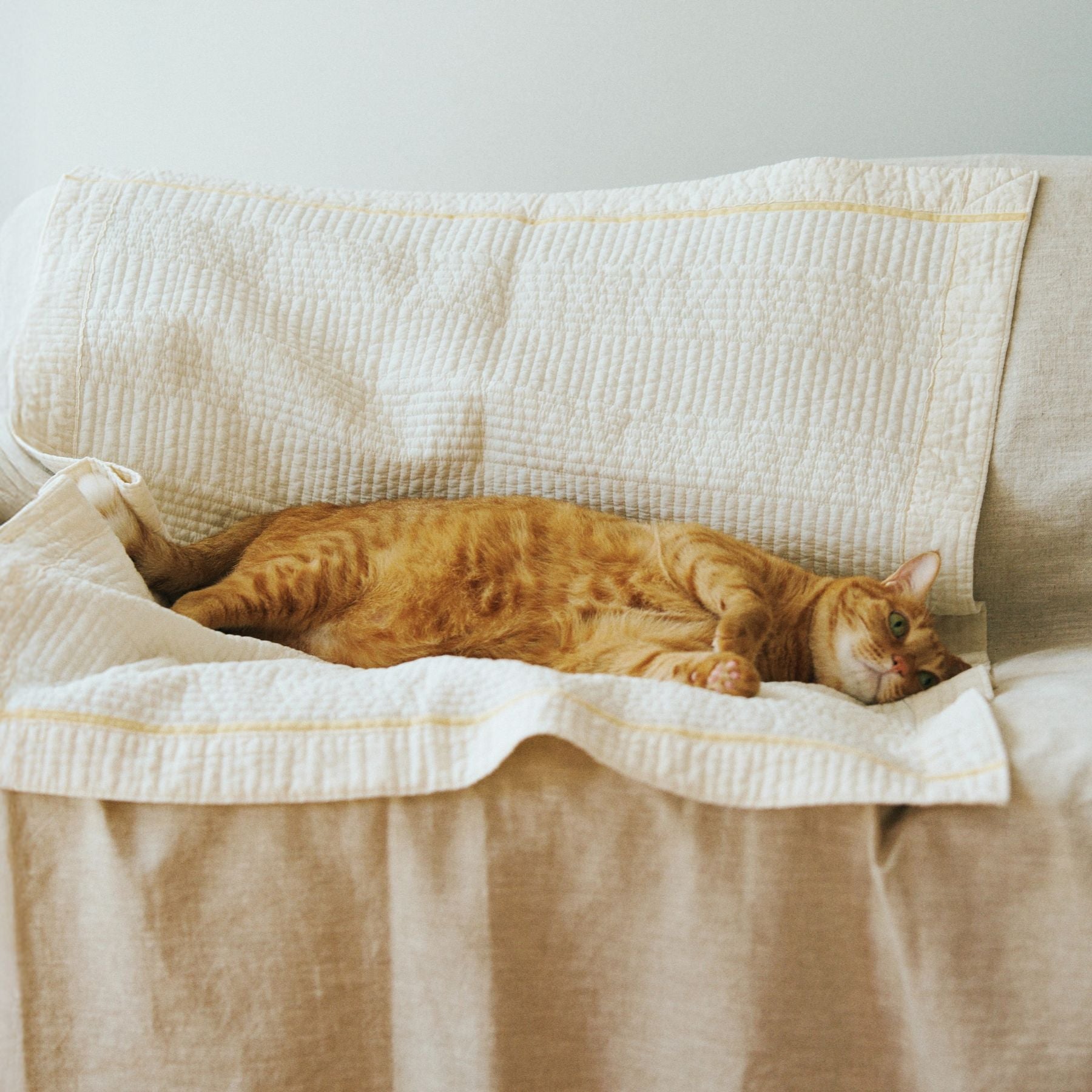 丁寧なキルティング加工で耐久性が高く、ふんわり柔らか。気軽に洗えるから、ペットとの暮らしにおすすめです。