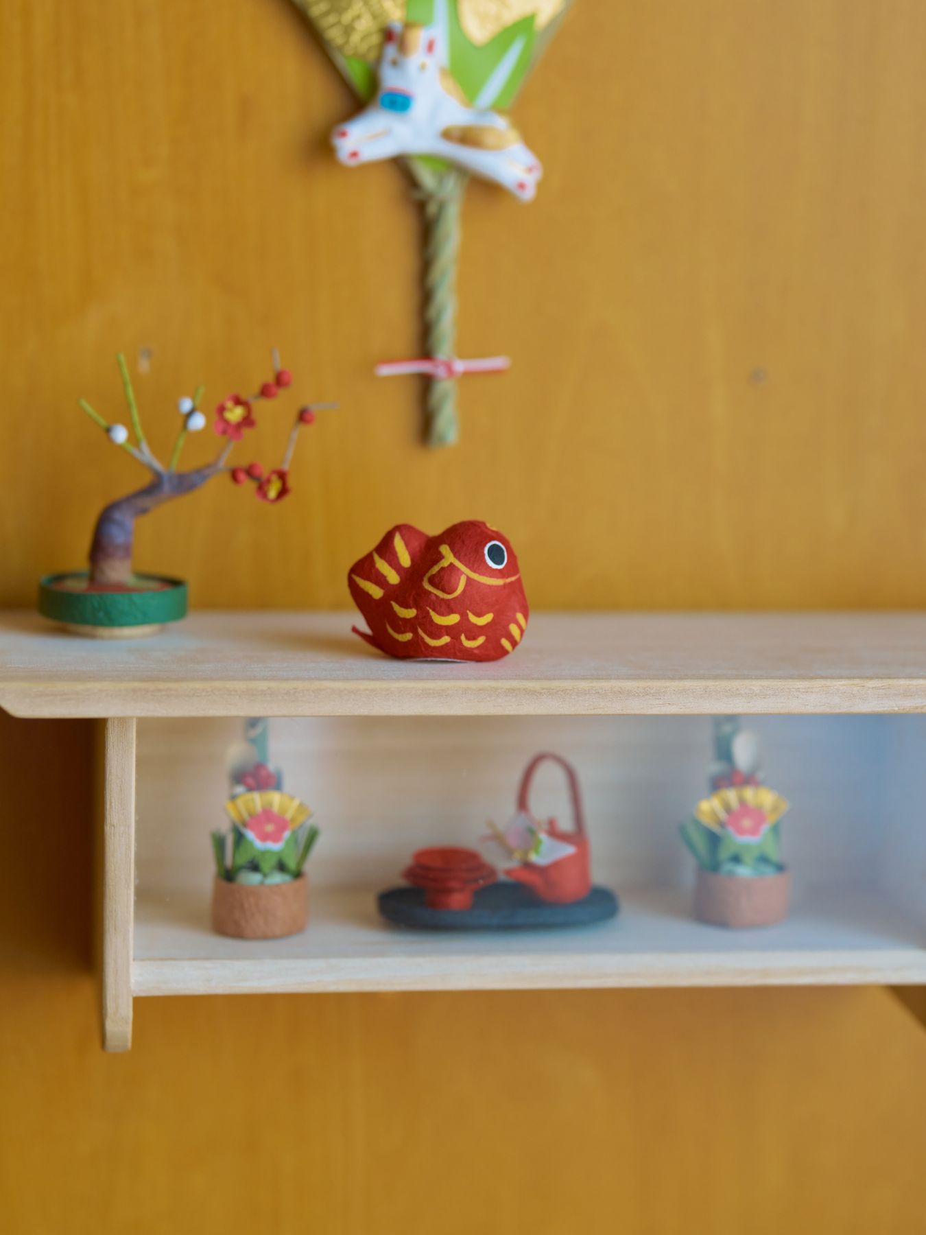 ウォールシェルフとして、季節の飾りを並べても絵になります。