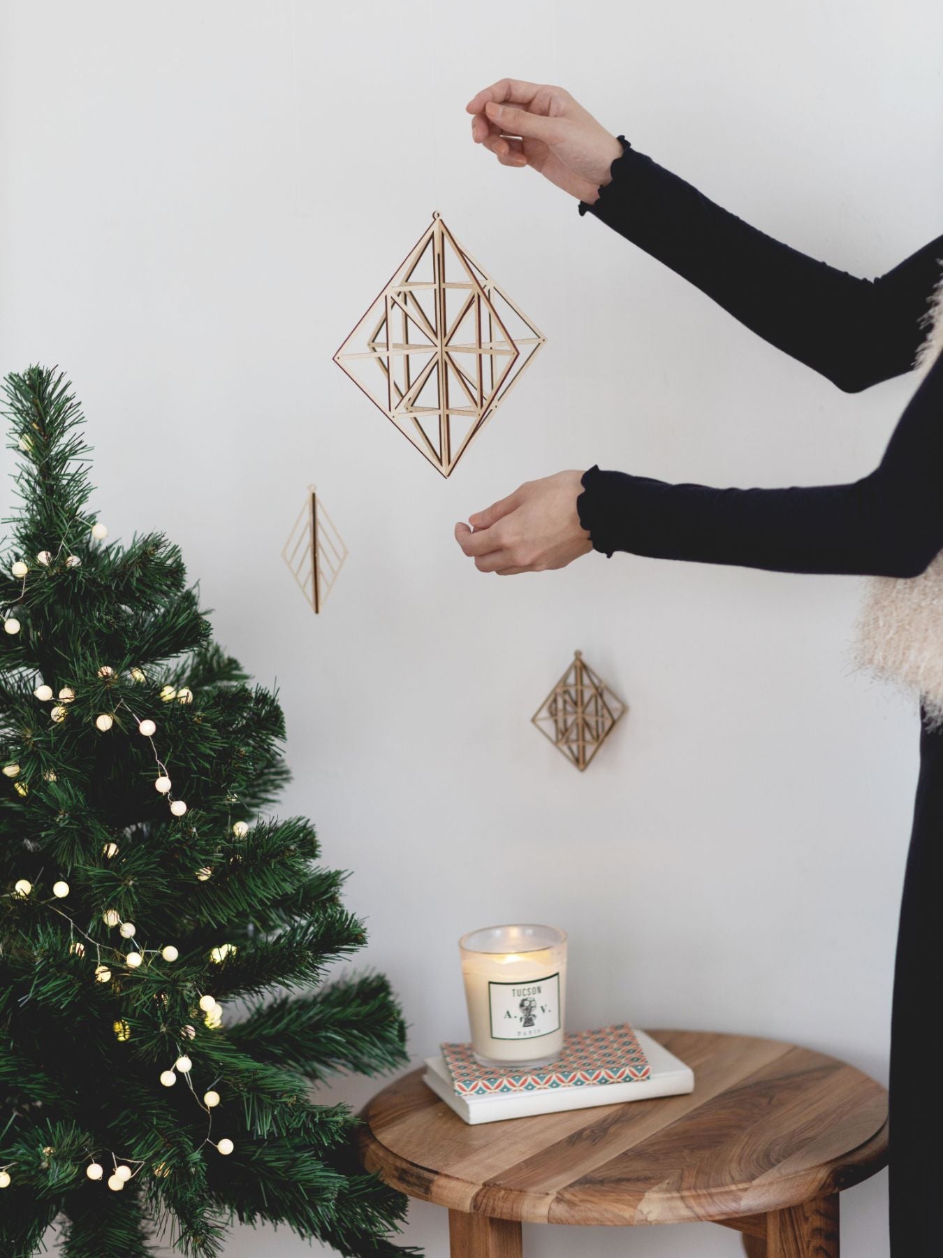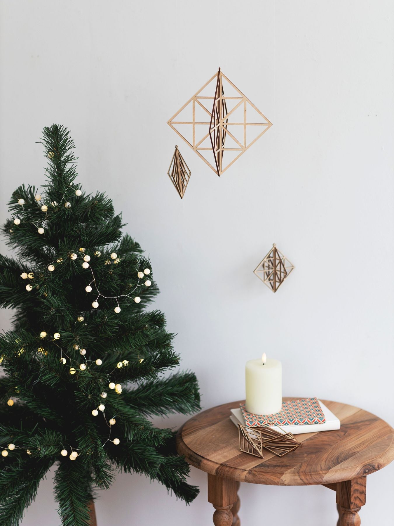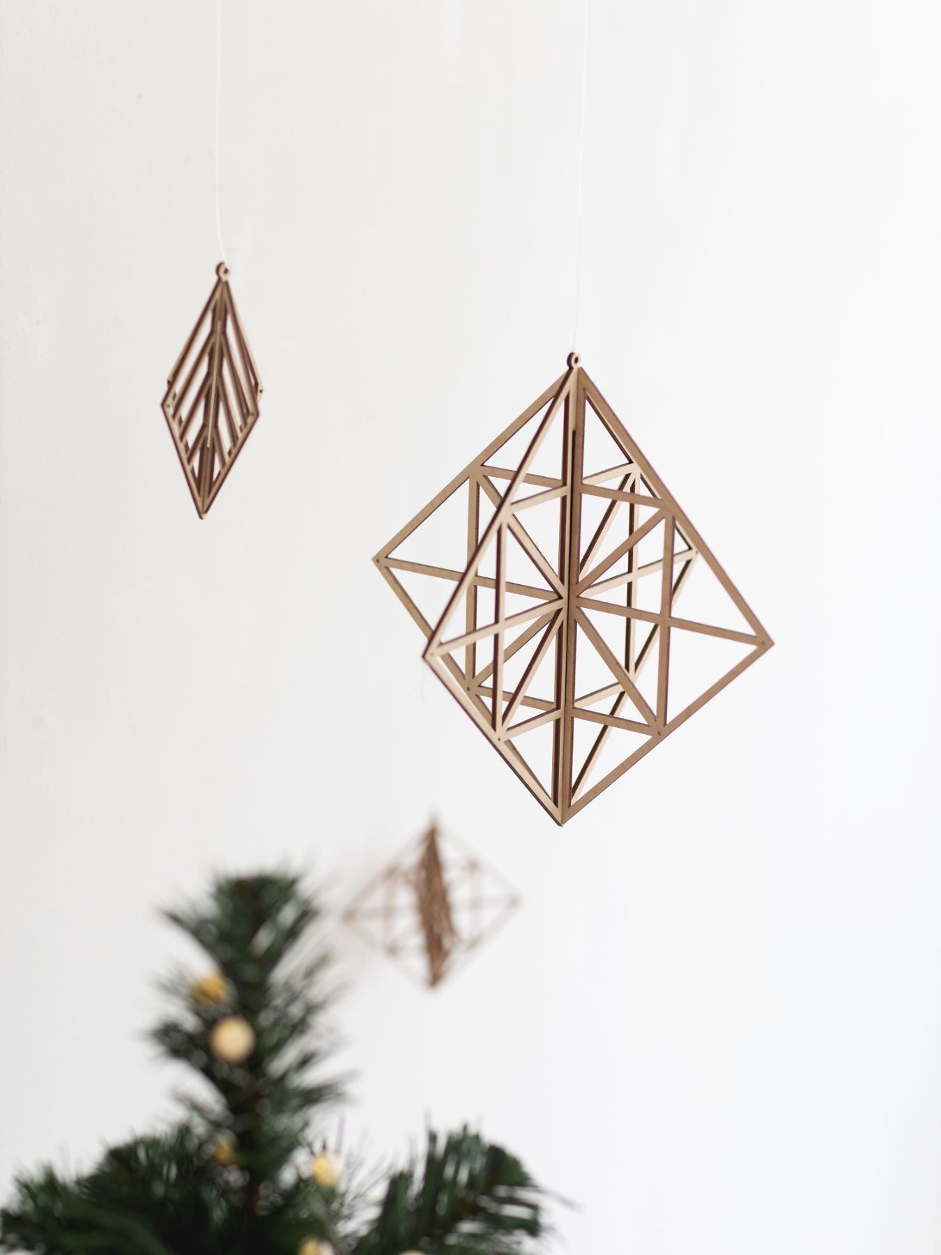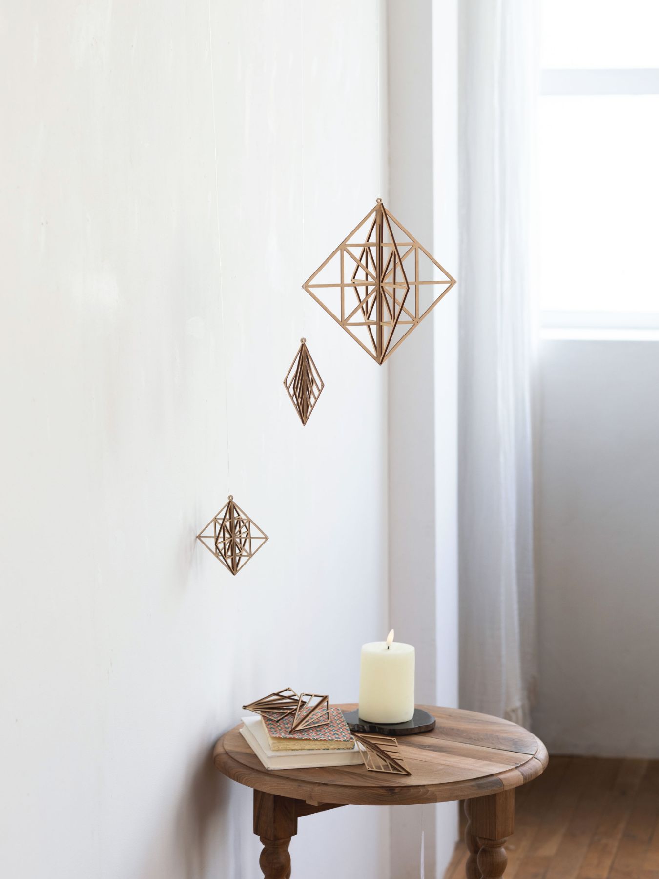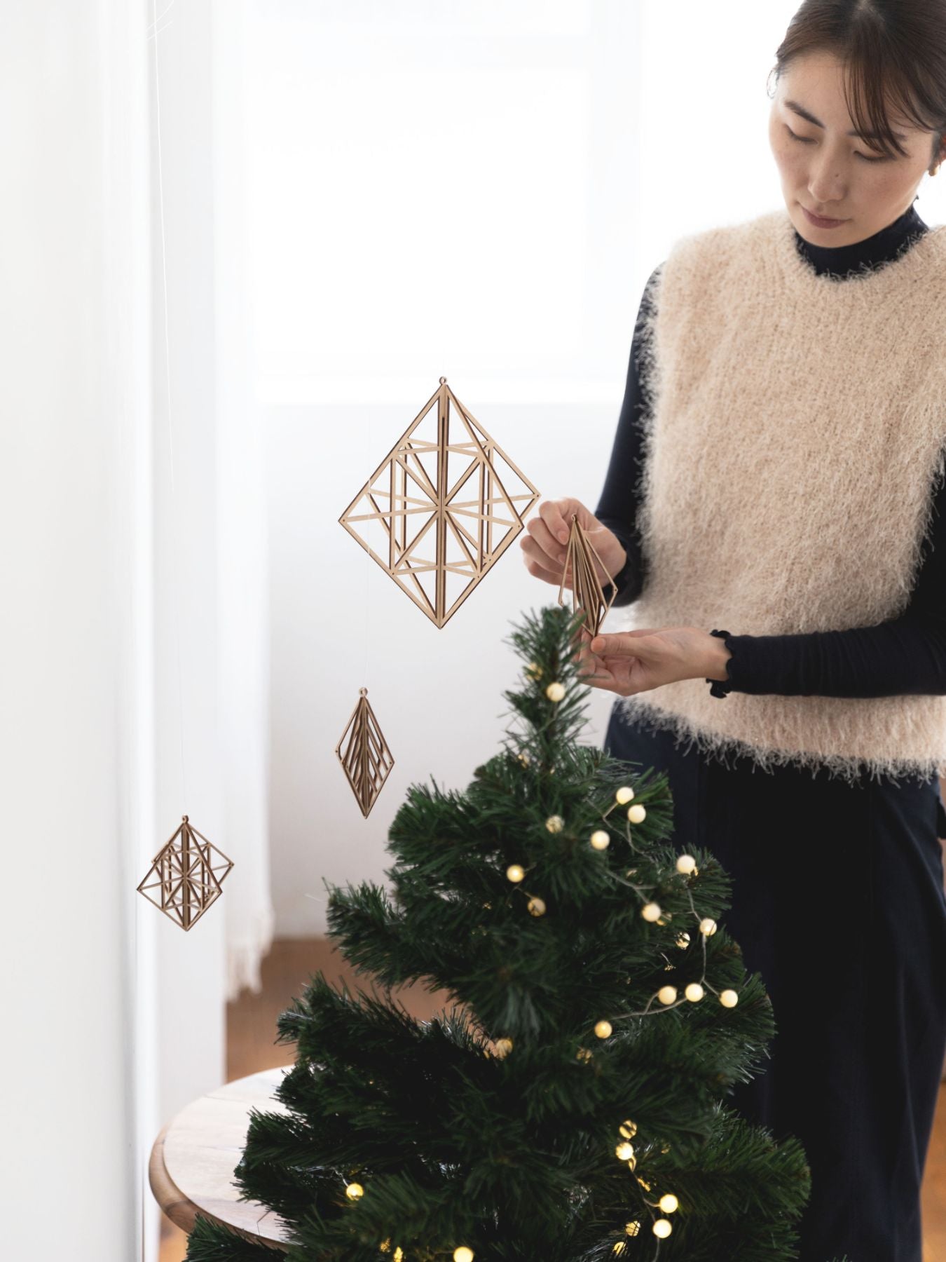 組み立て式のパーツは、吊るすだけでなくこんなふうに置いて飾ることもできます。