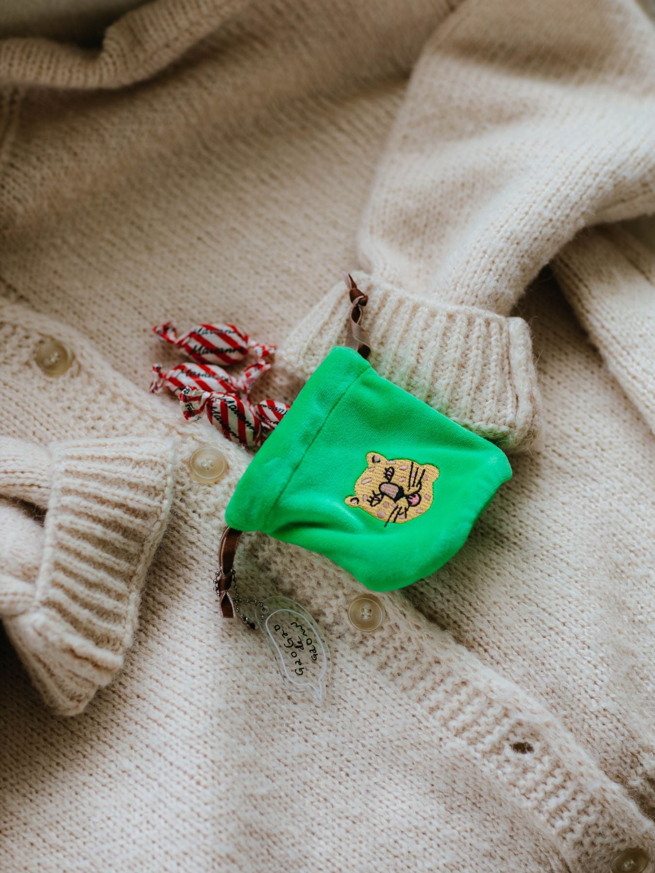 ふかふかの起毛生地でクッション性があるので、イヤホンケースにぴったり。ポーチの両面には、歌っているみたいにルンルンなヒョウが。つられてこちらもゴキゲンに。