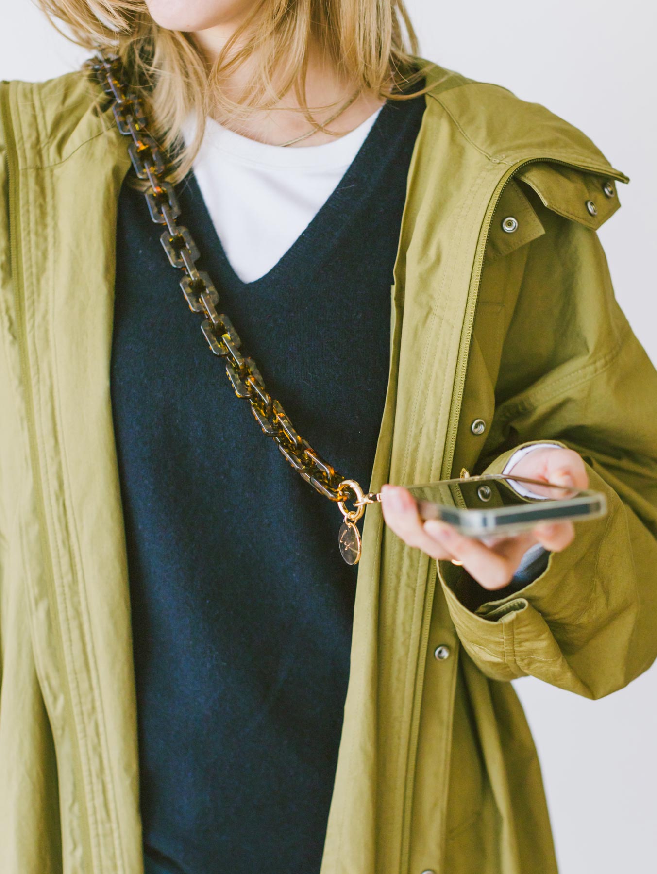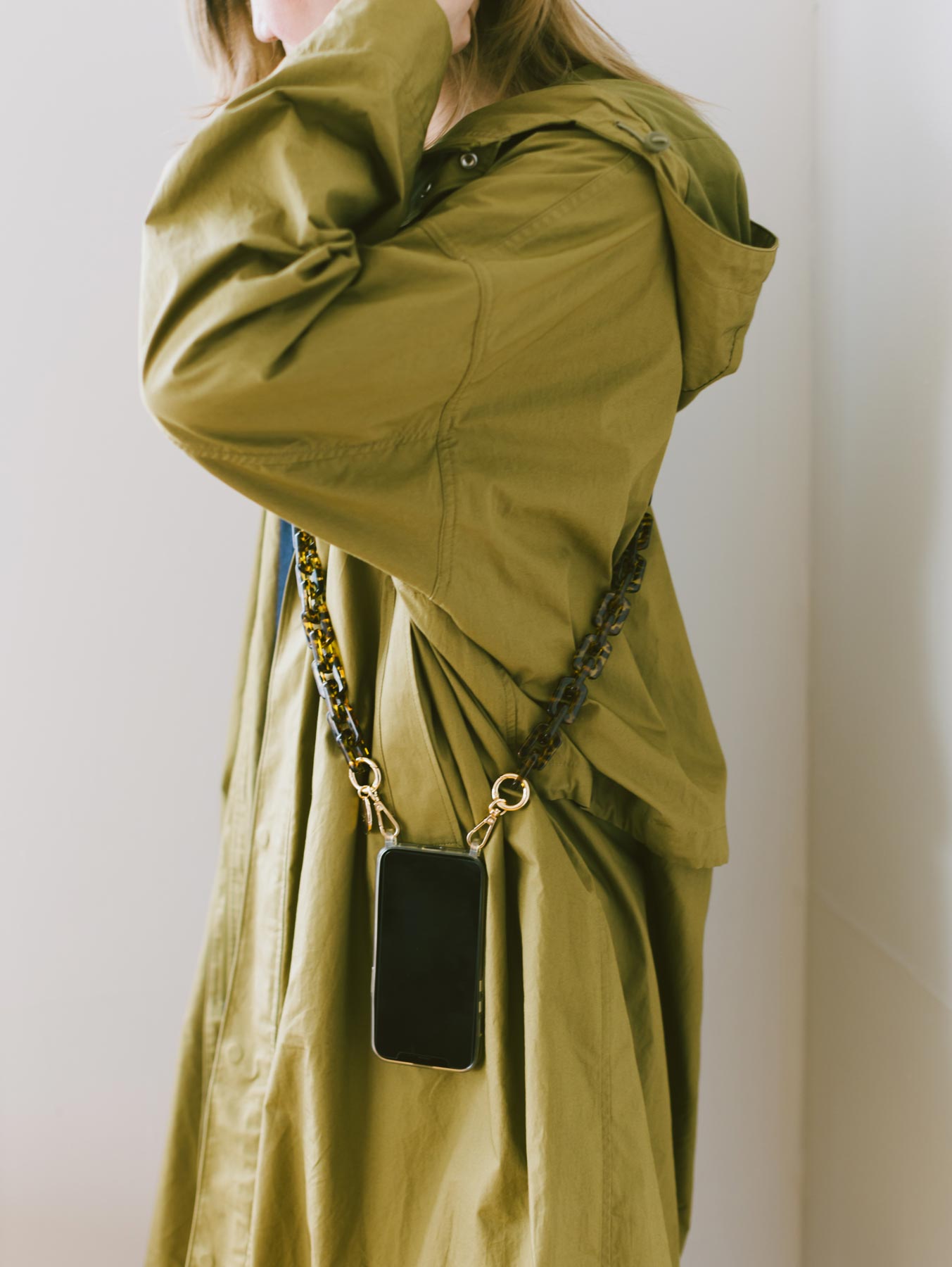 スマホケースに装飾を盛るトレンドは以前からありますが、どこか子供っぽくなりがち。La Coque Françaiseのチェーンはフランスらしいエスプリが効いていて、大胆な遊び心と洗練が同時に感じられます。