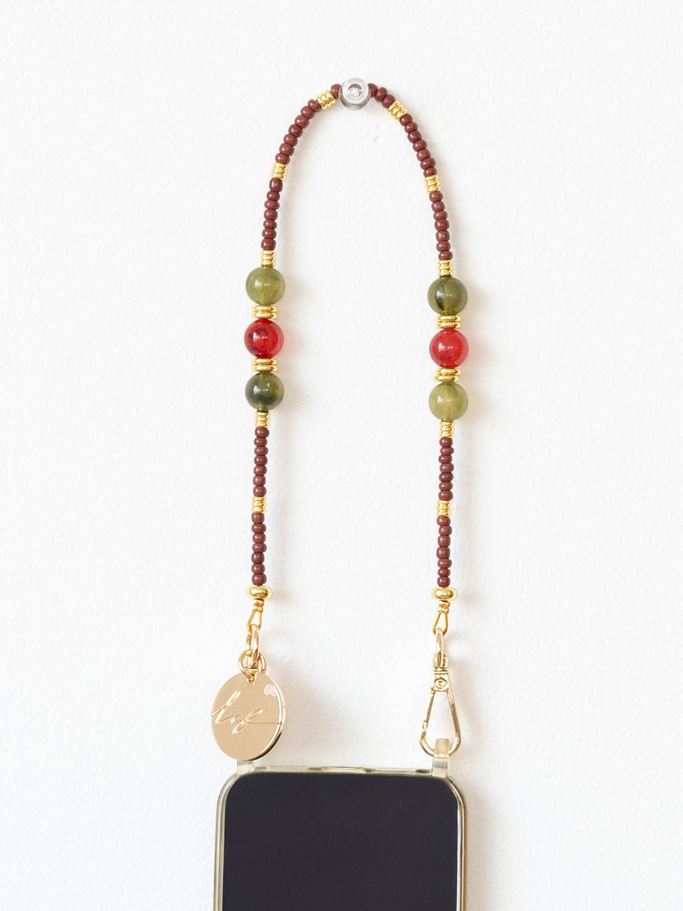 フックの仕様が合えば、マホケースだけでなく、バッグのストラップに付け替えることもできますよ。単体でネックレスやブレスレットとして使ってみても素敵です。