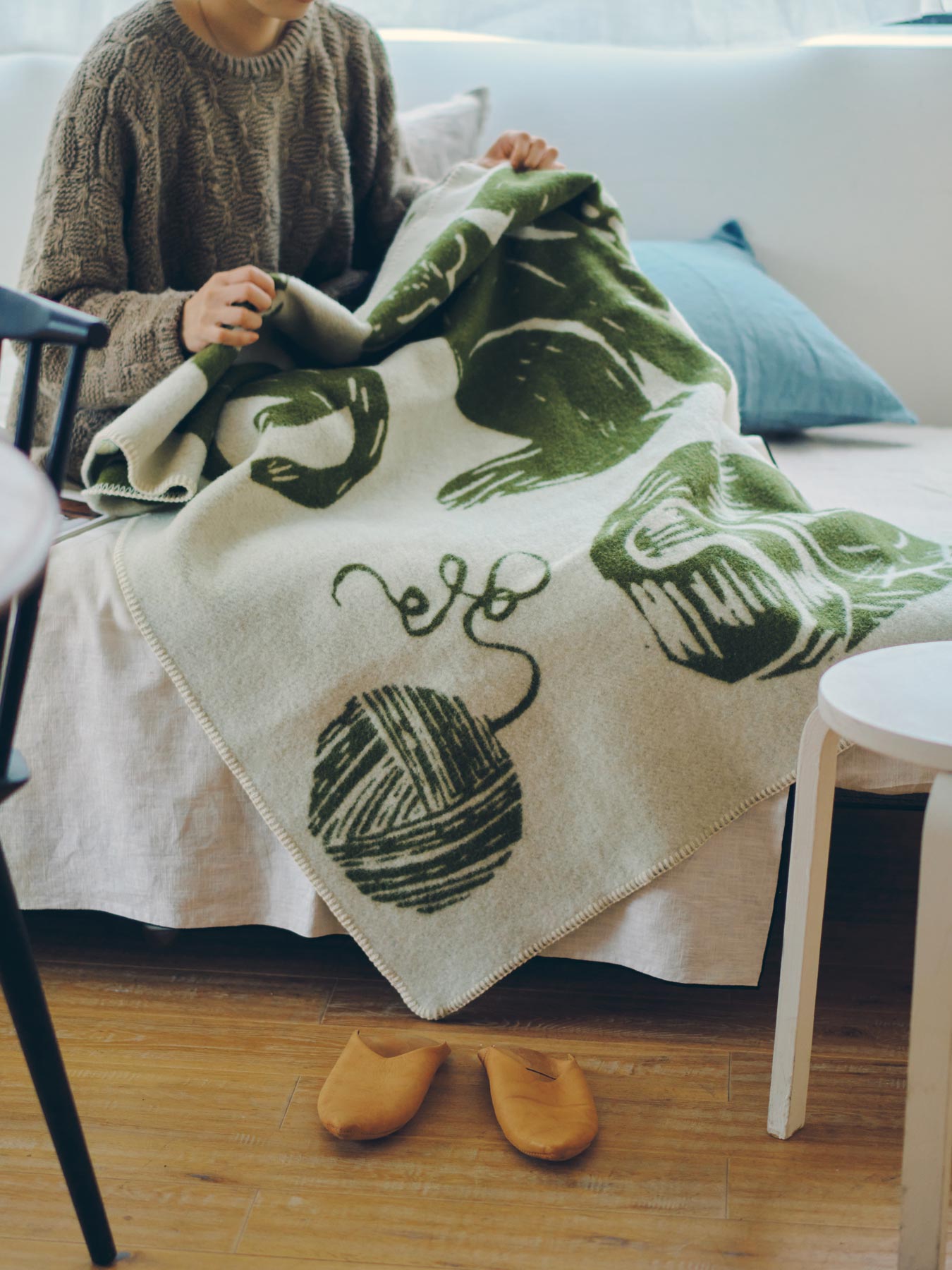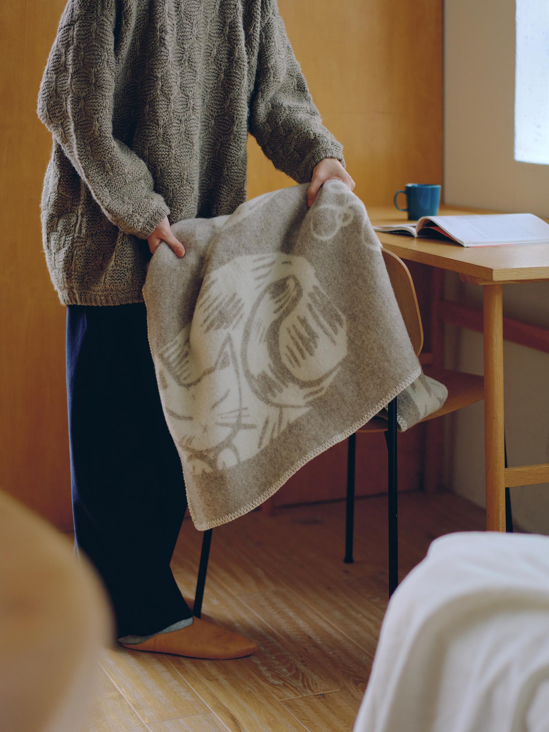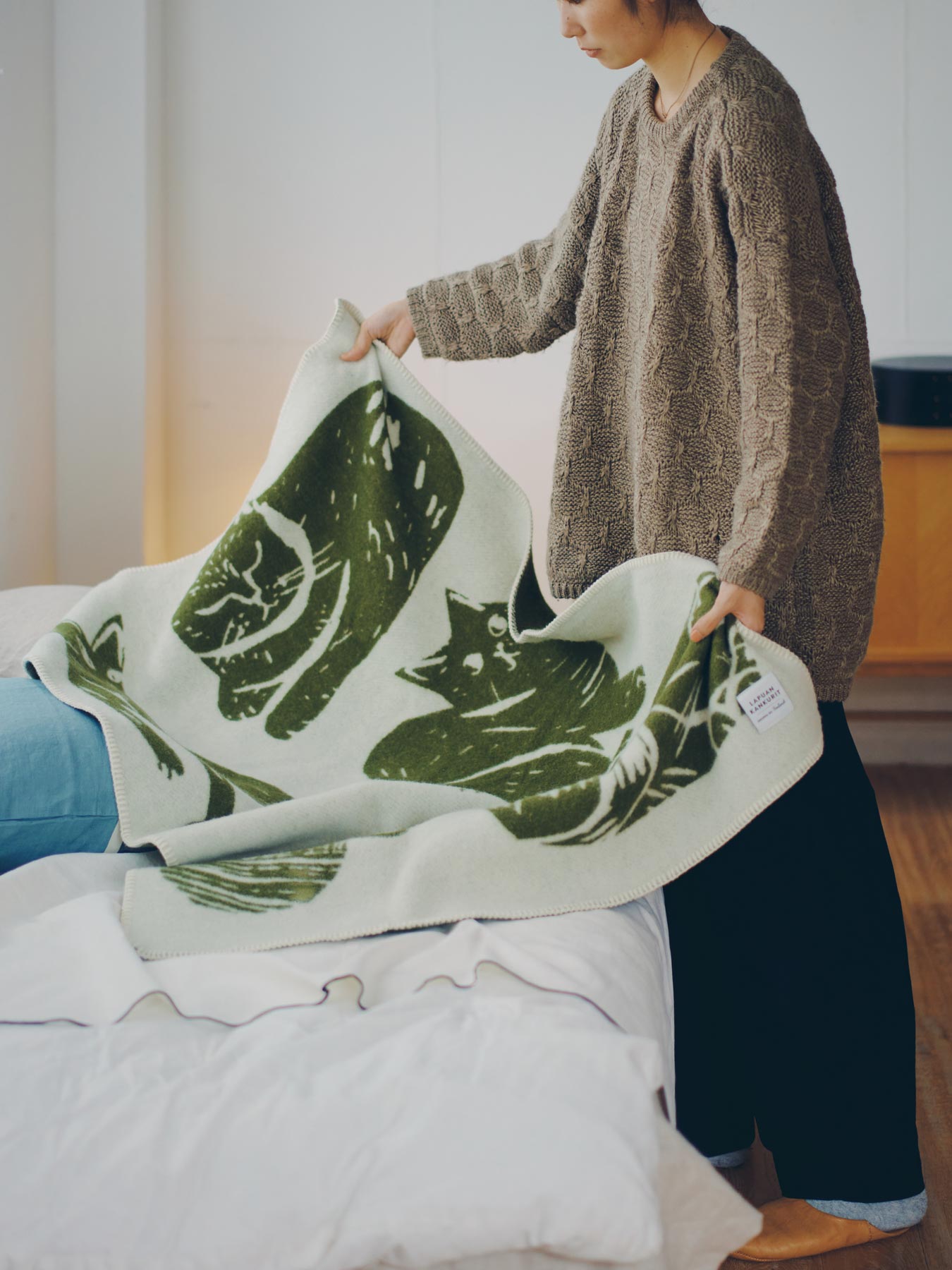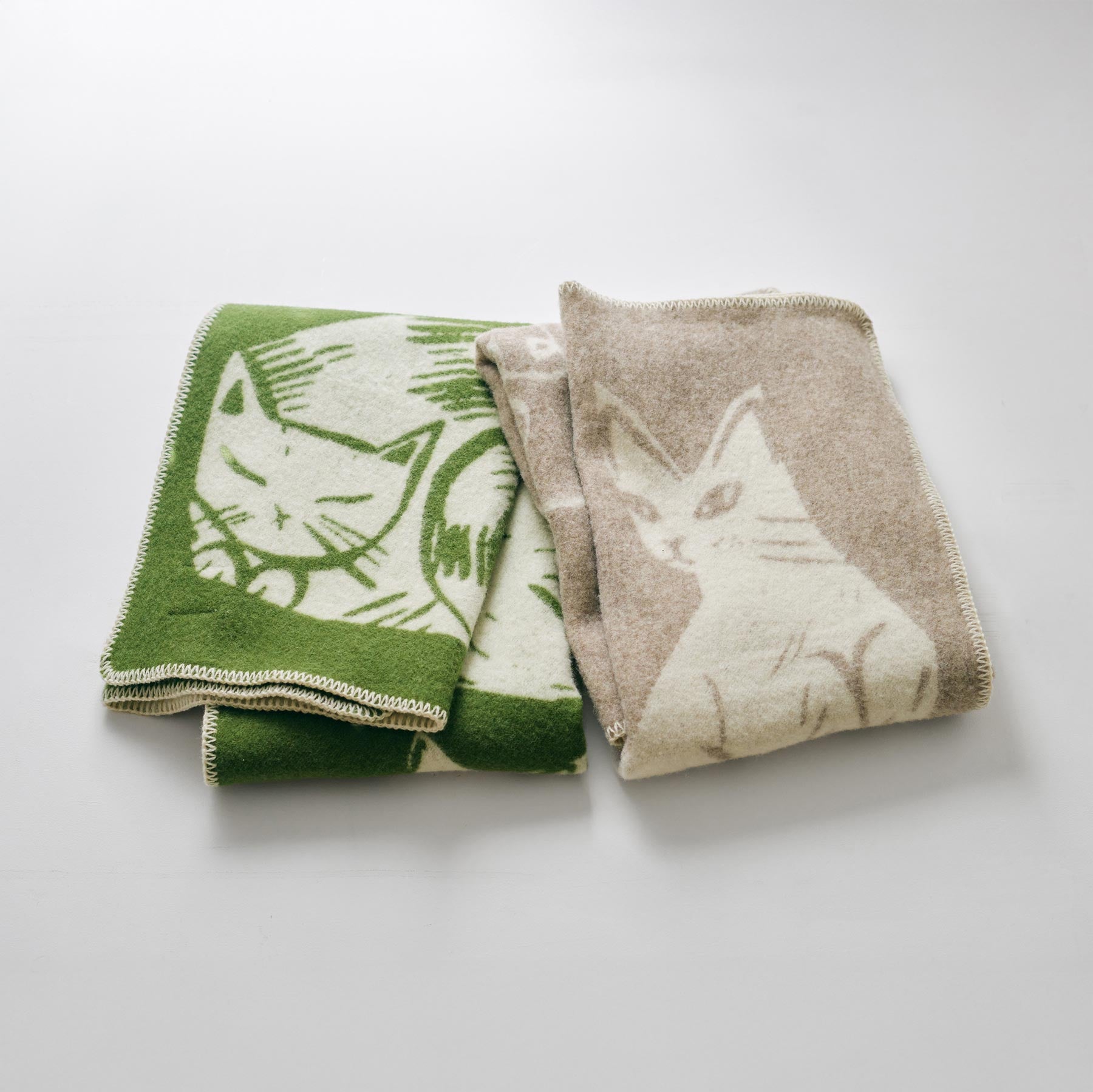 フィンランドのテキスタイルメーカー、LAPUAN KANKURIT(ラプアン・カンクリ)による、猫をモチーフにしたウールブランケット。厳選された100%ピュアニューウールで織られていて、厚みがありながら軽くてとても柔らかです。