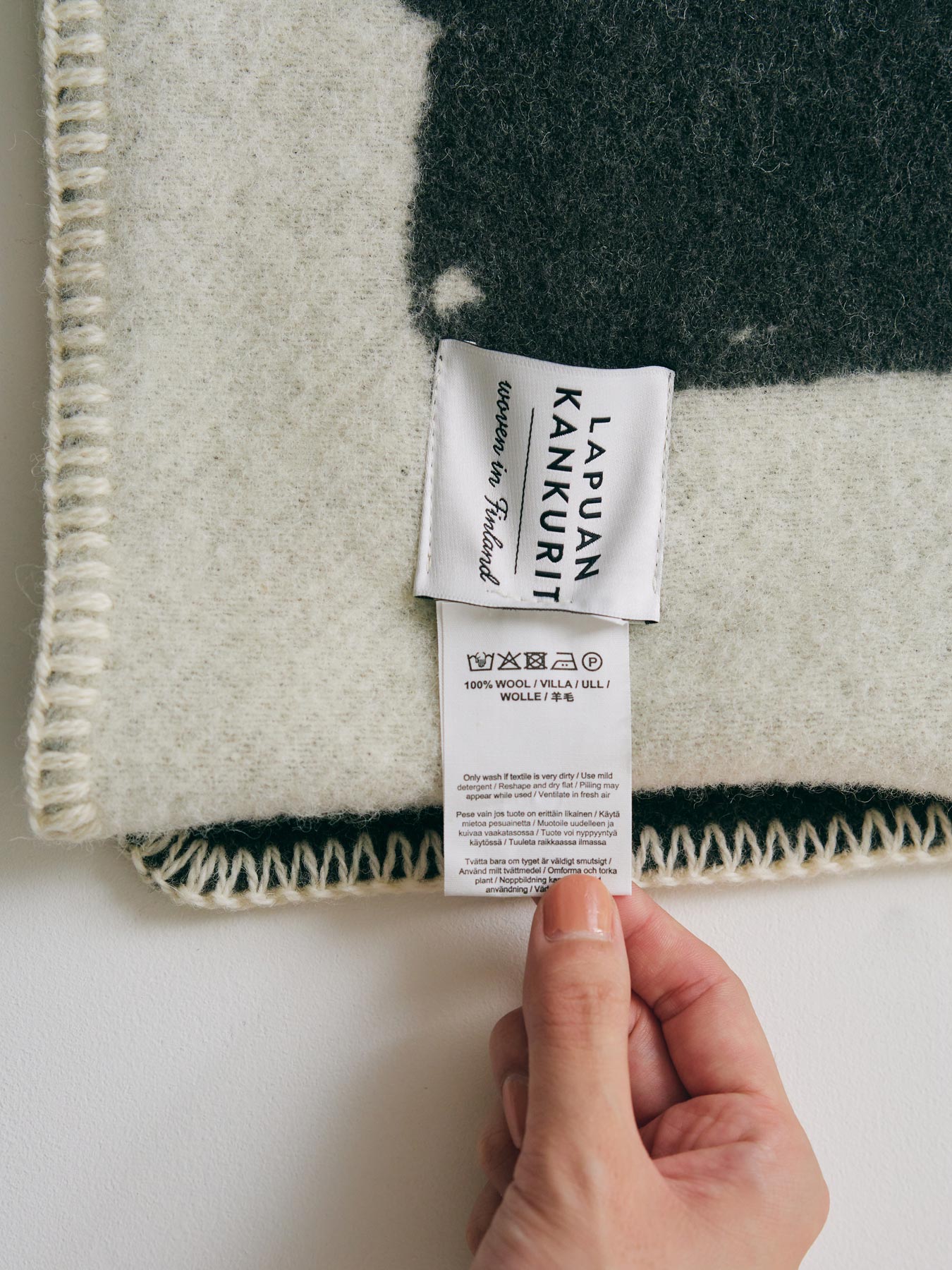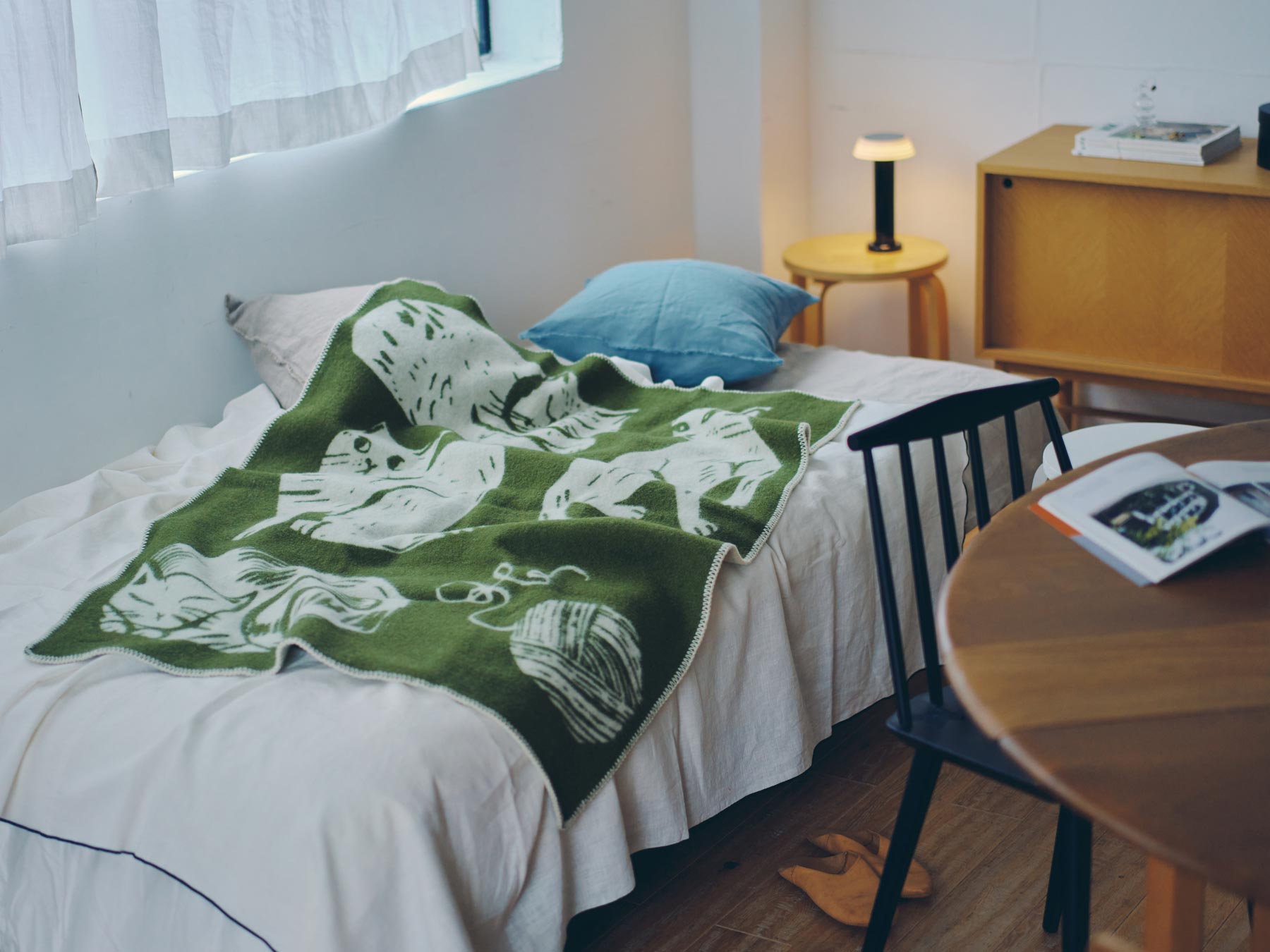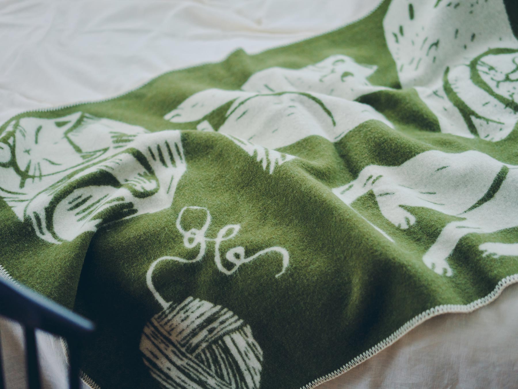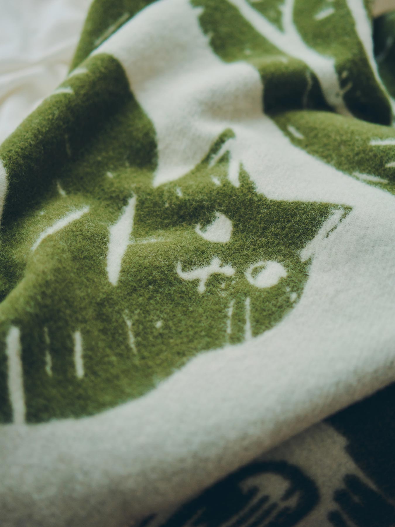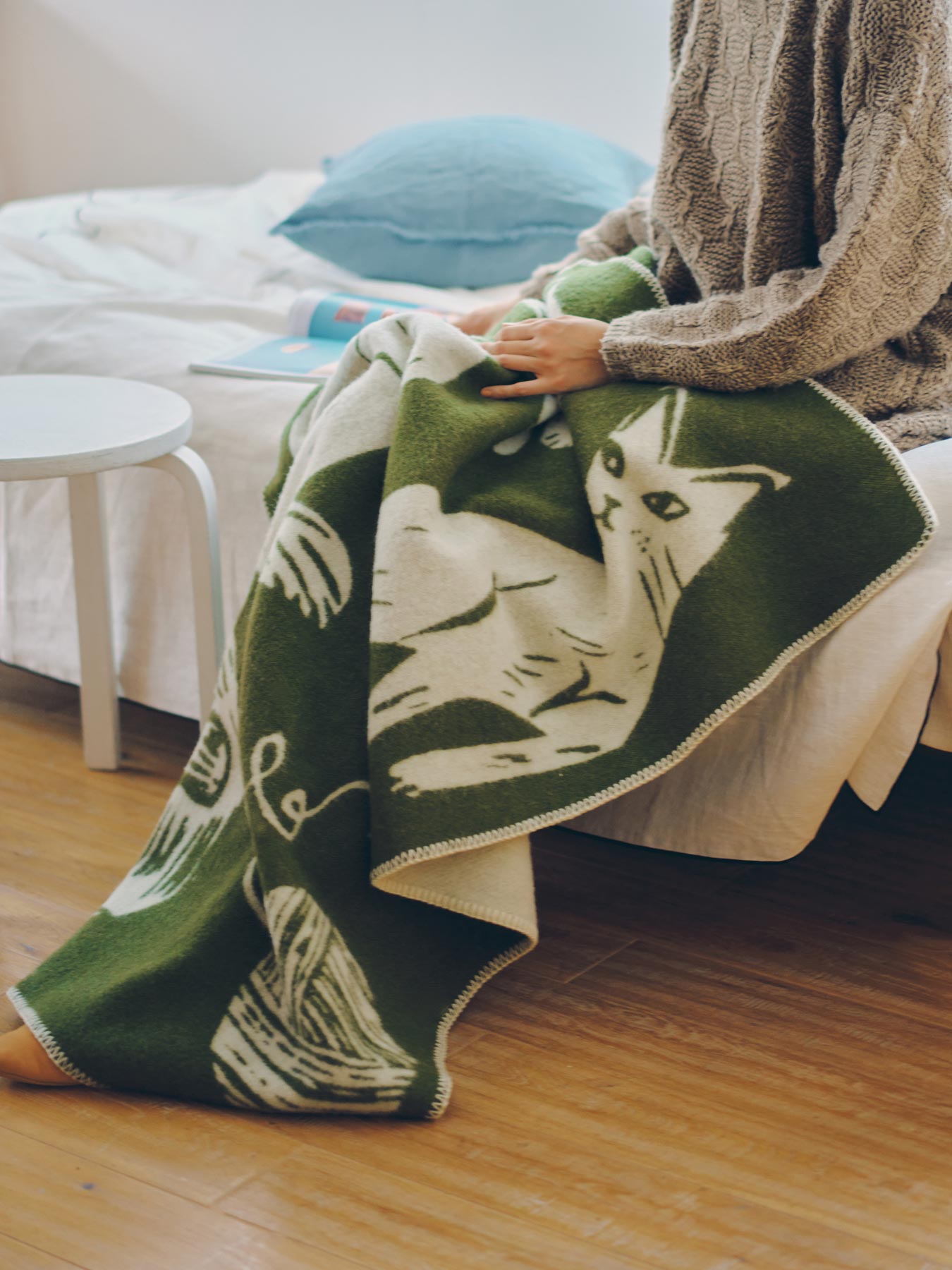 フィンランドのテキスタイルメーカー、LAPUAN KANKURIT(ラプアン・カンクリ)による、猫をモチーフにしたウールブランケット。厳選された100%ピュアニューウールで織られていて、厚みがありながら軽くてとても柔らかです。