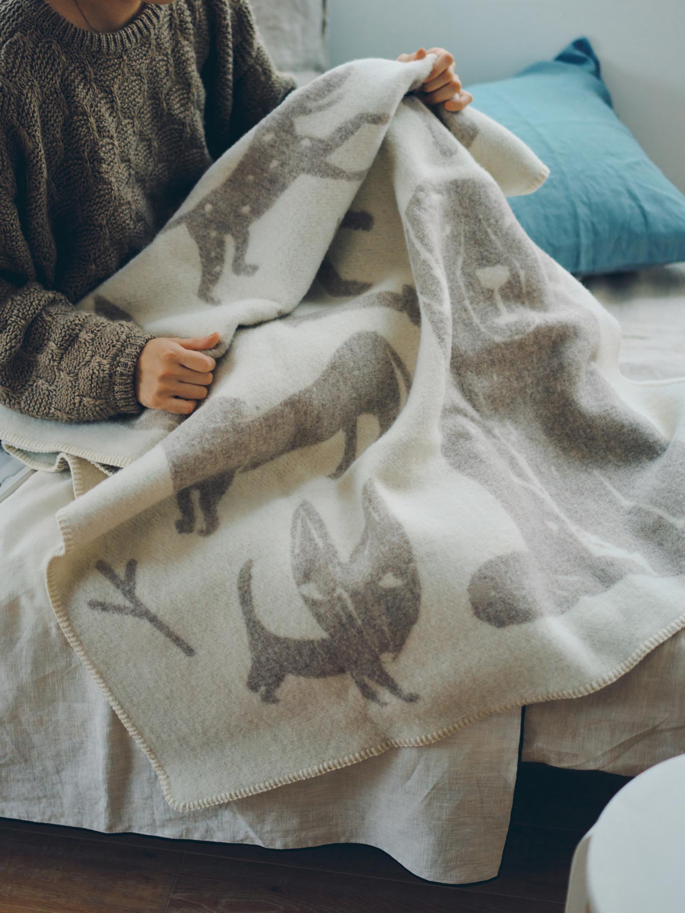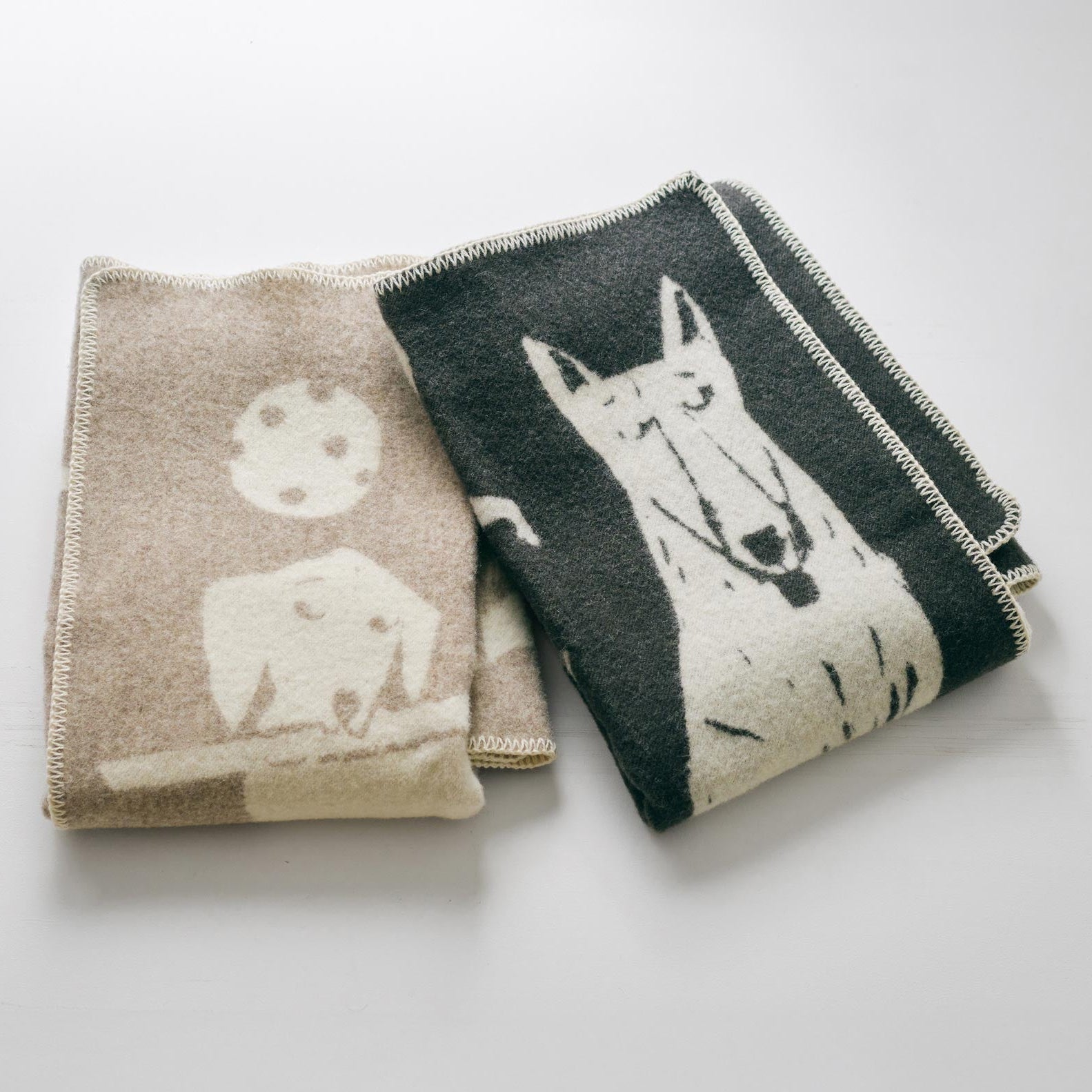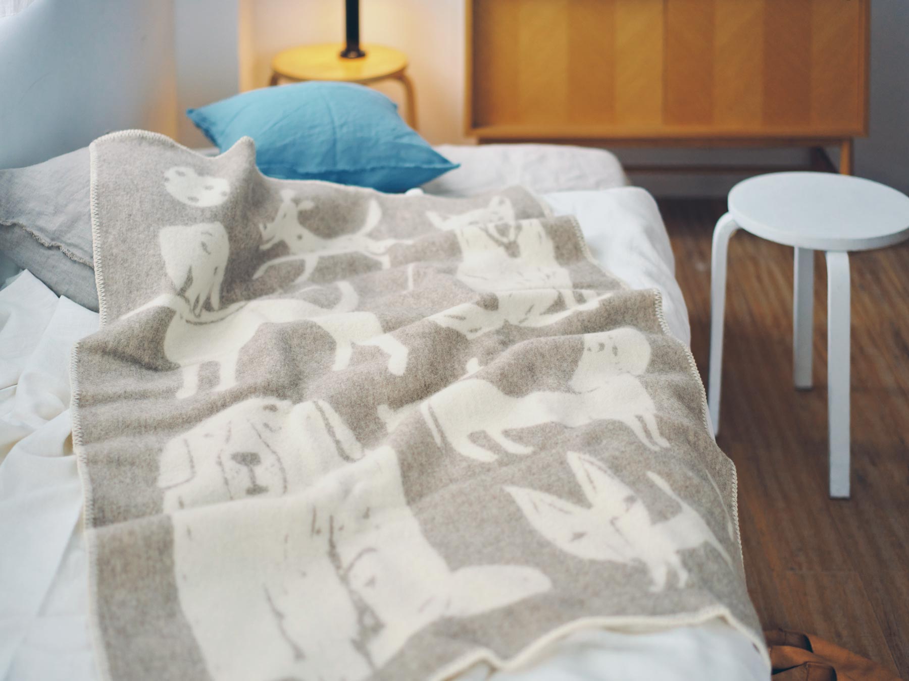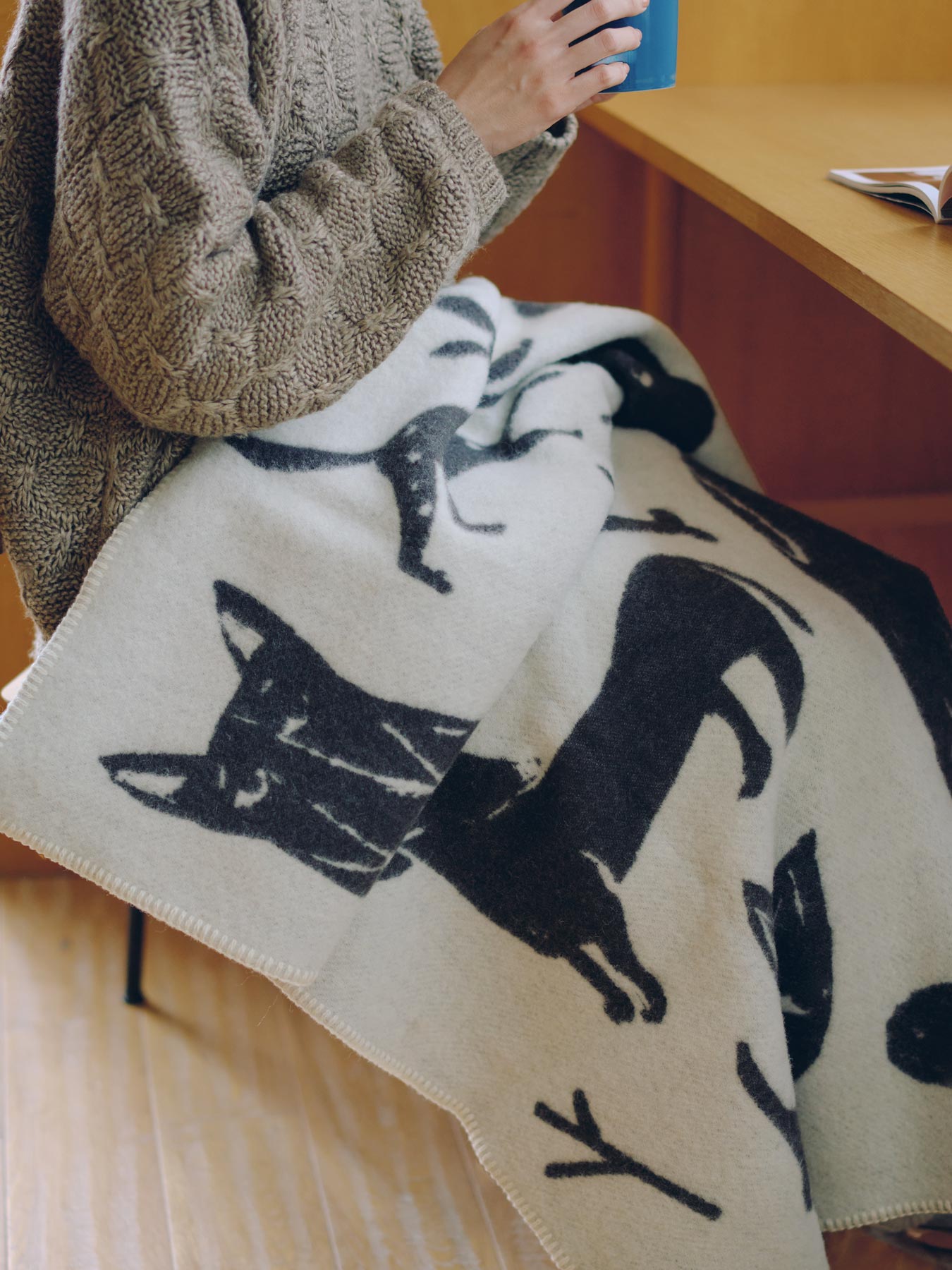 フィンランドのテキスタイルメーカー、LAPUAN KANKURIT(ラプアン・カンクリ)による、犬をモチーフにしたウールブランケット。厳選された100%ピュアニューウールで織られていて、厚みがありながら軽くてとても柔らかです。