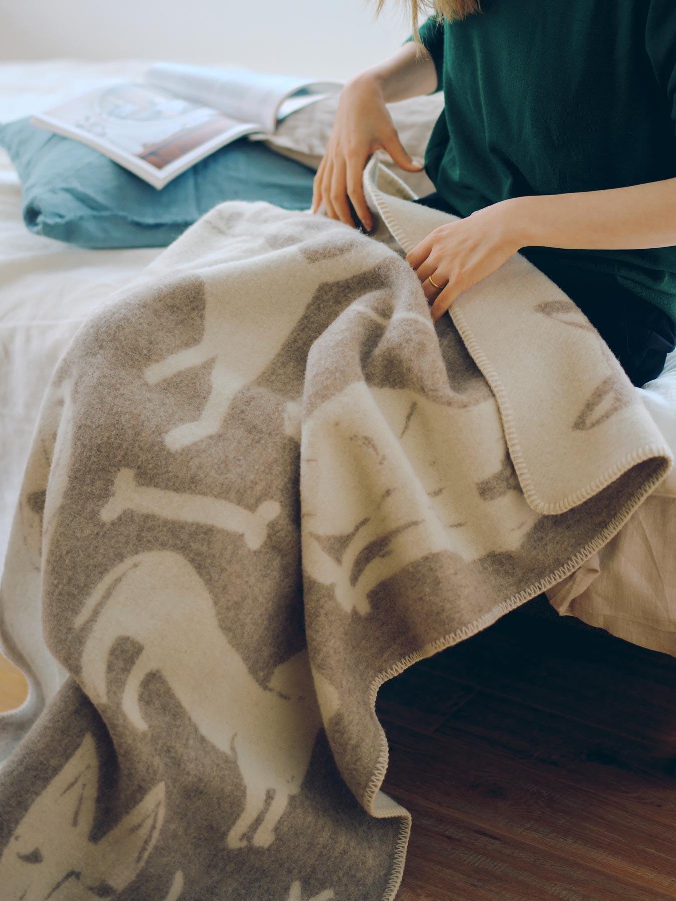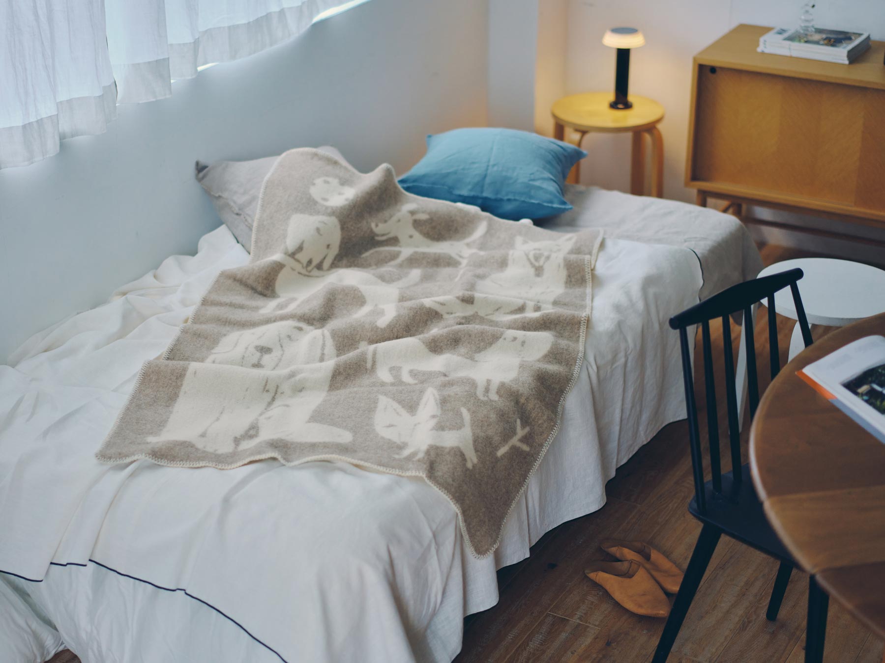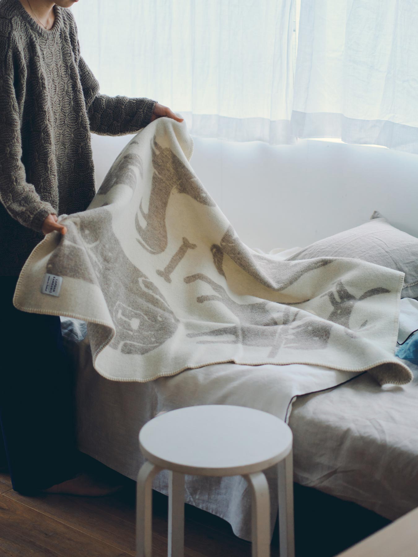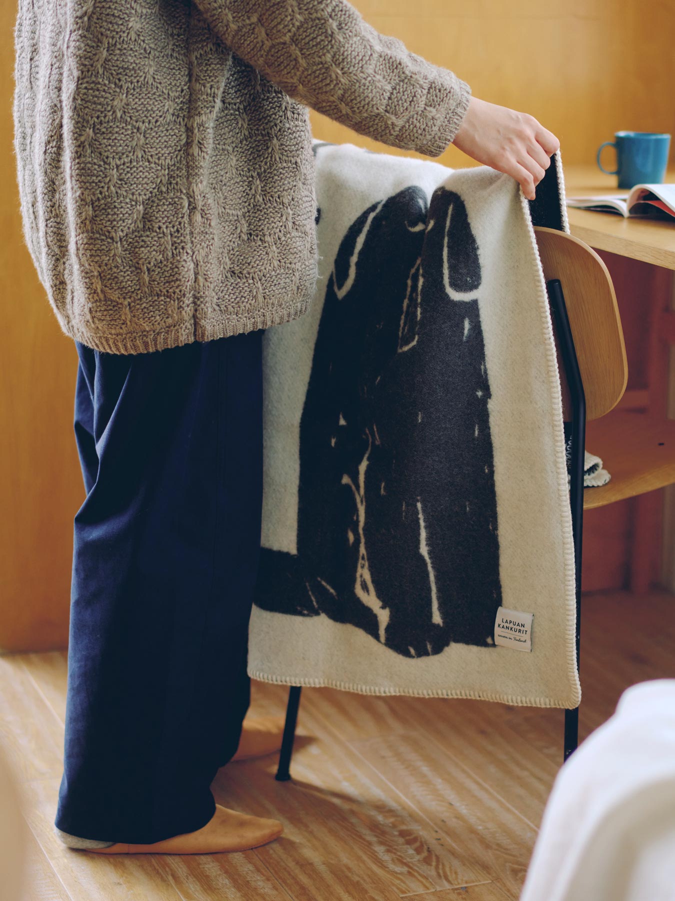 フィンランドのテキスタイルメーカー、LAPUAN KANKURIT(ラプアン・カンクリ)による、犬をモチーフにしたウールブランケット。厳選された100%ピュアニューウールで織られていて、厚みがありながら軽くてとても柔らかです。