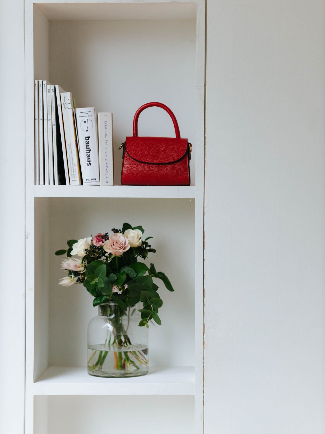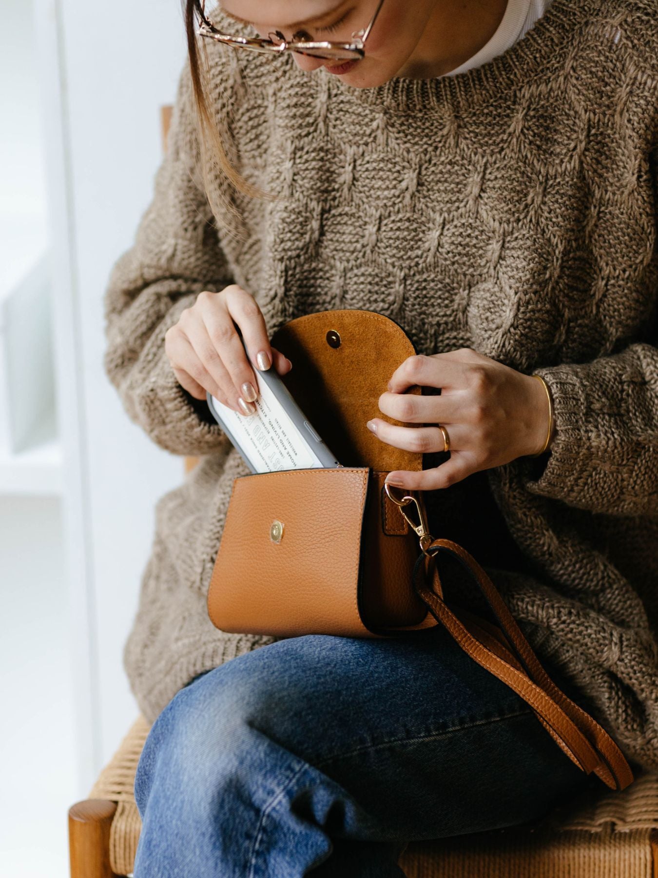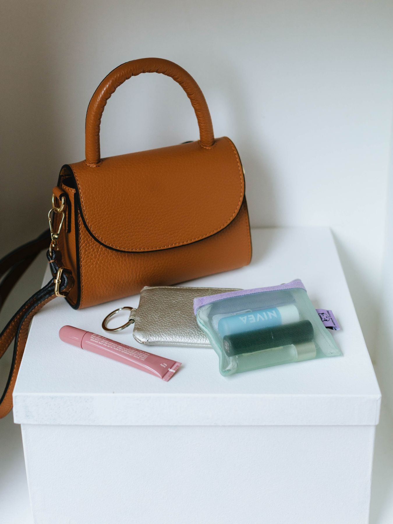 小ぶりでも形がしっかりしているため、手にしたときの収まりも良いです。スマートフォンやコスメなど、お出かけの必需品がコンパクトにまとまります。