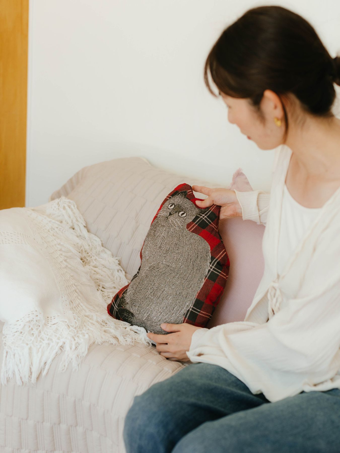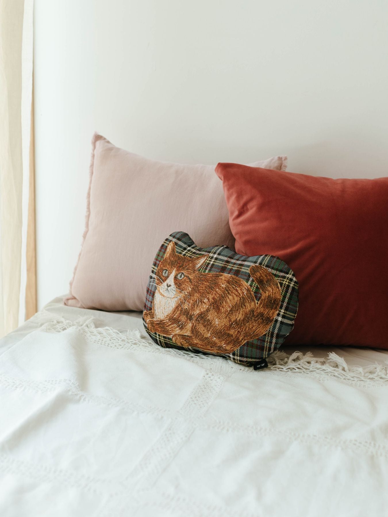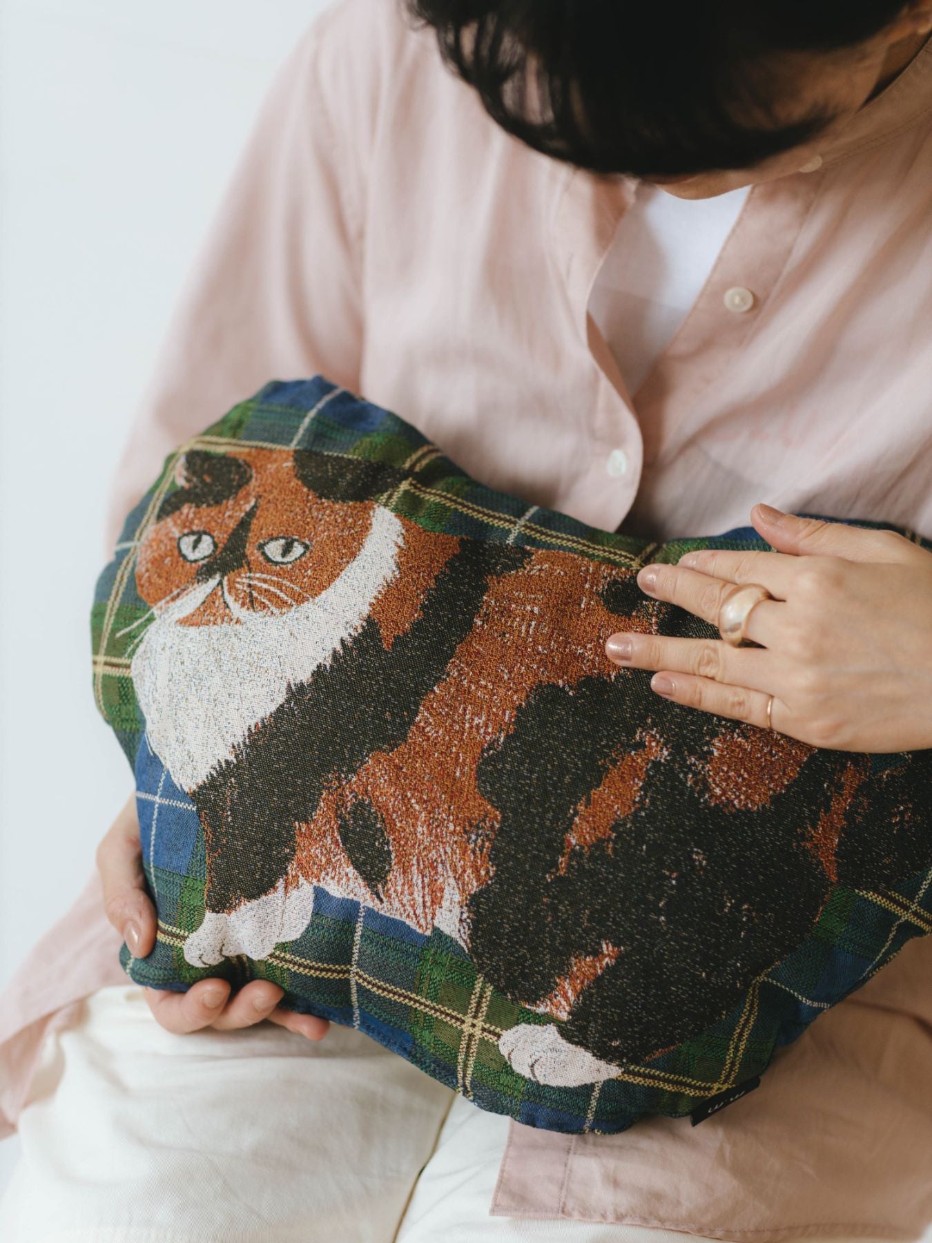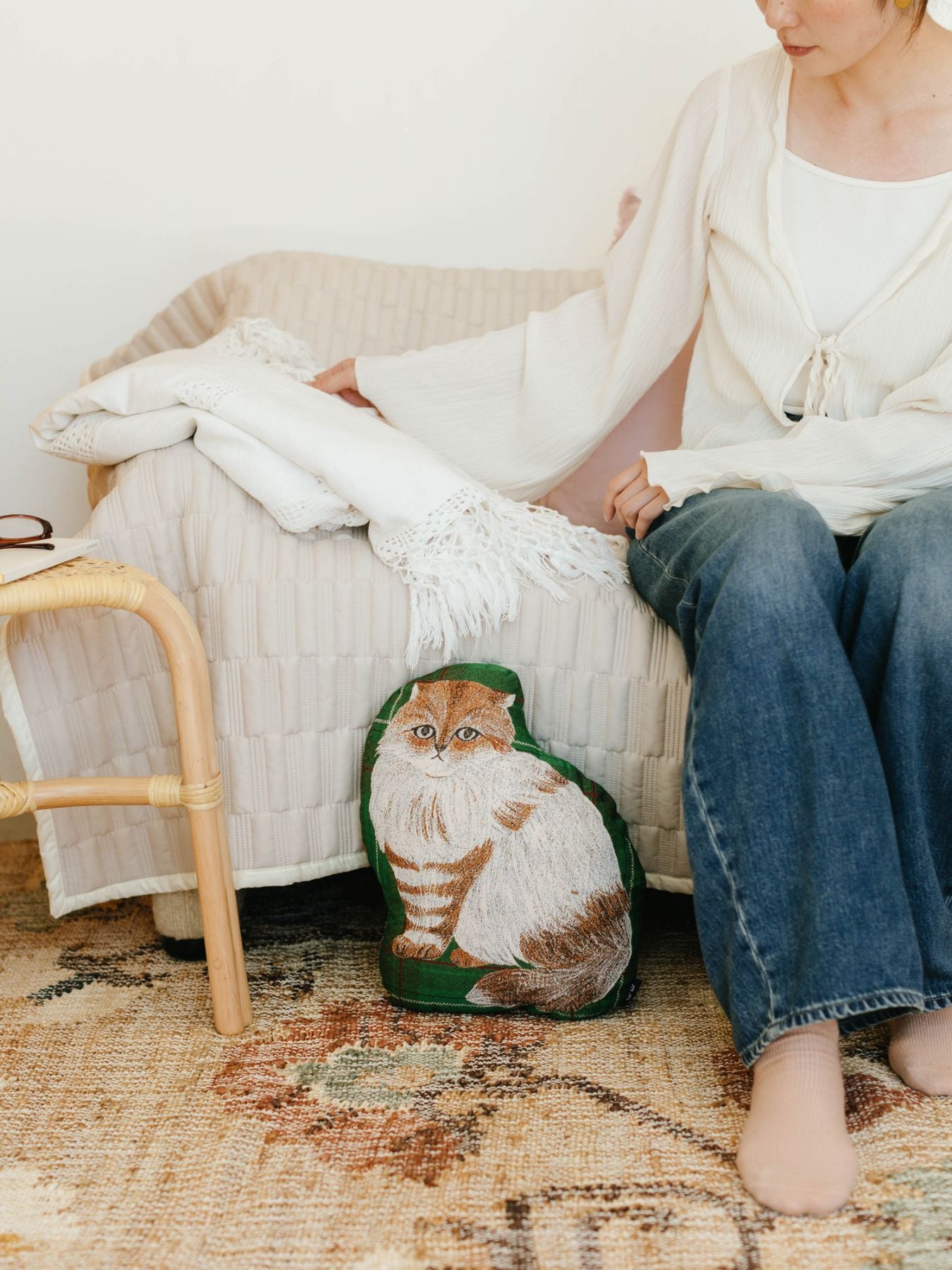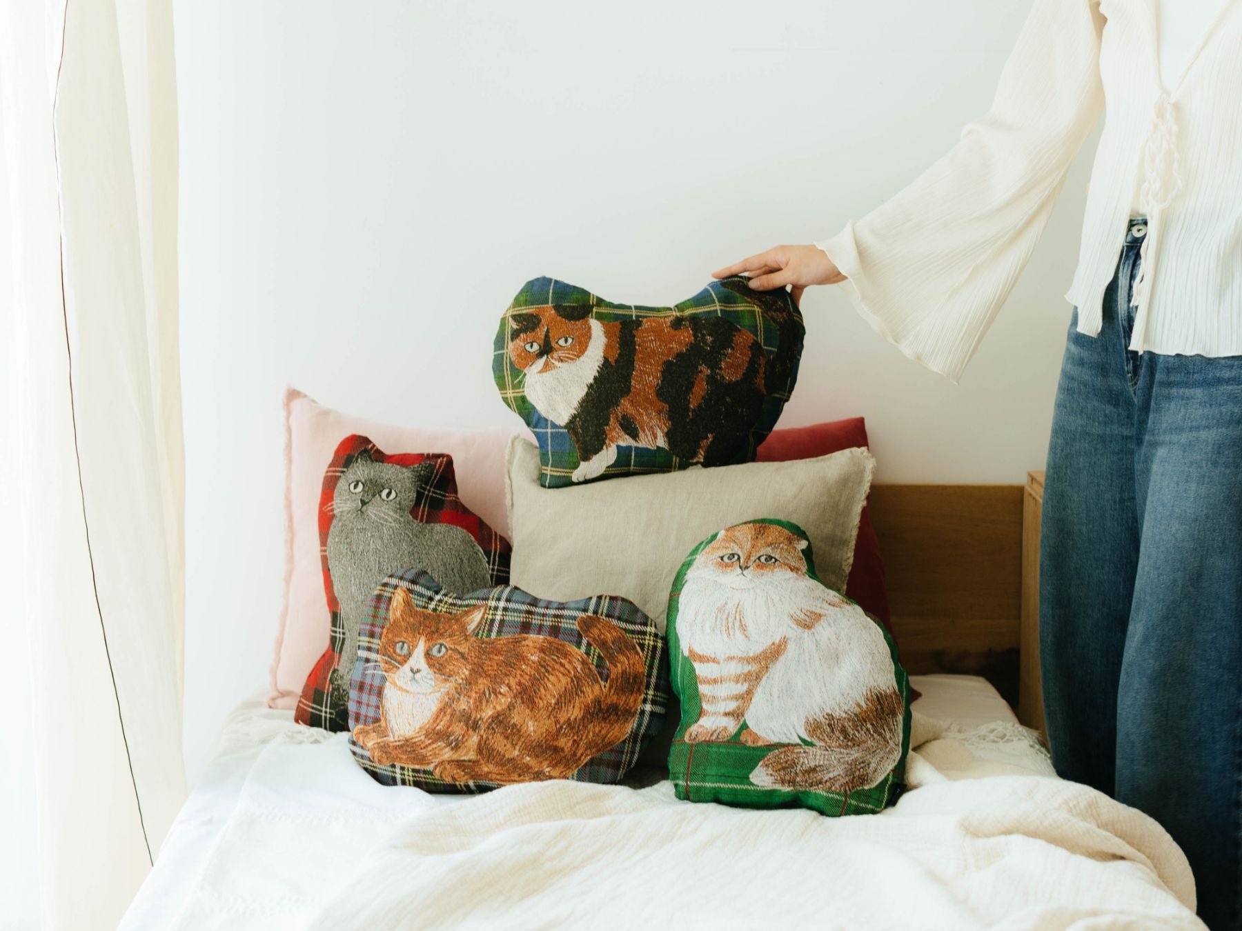 松尾ミユキさんの描くキュートな猫が、クッションになって登場です。