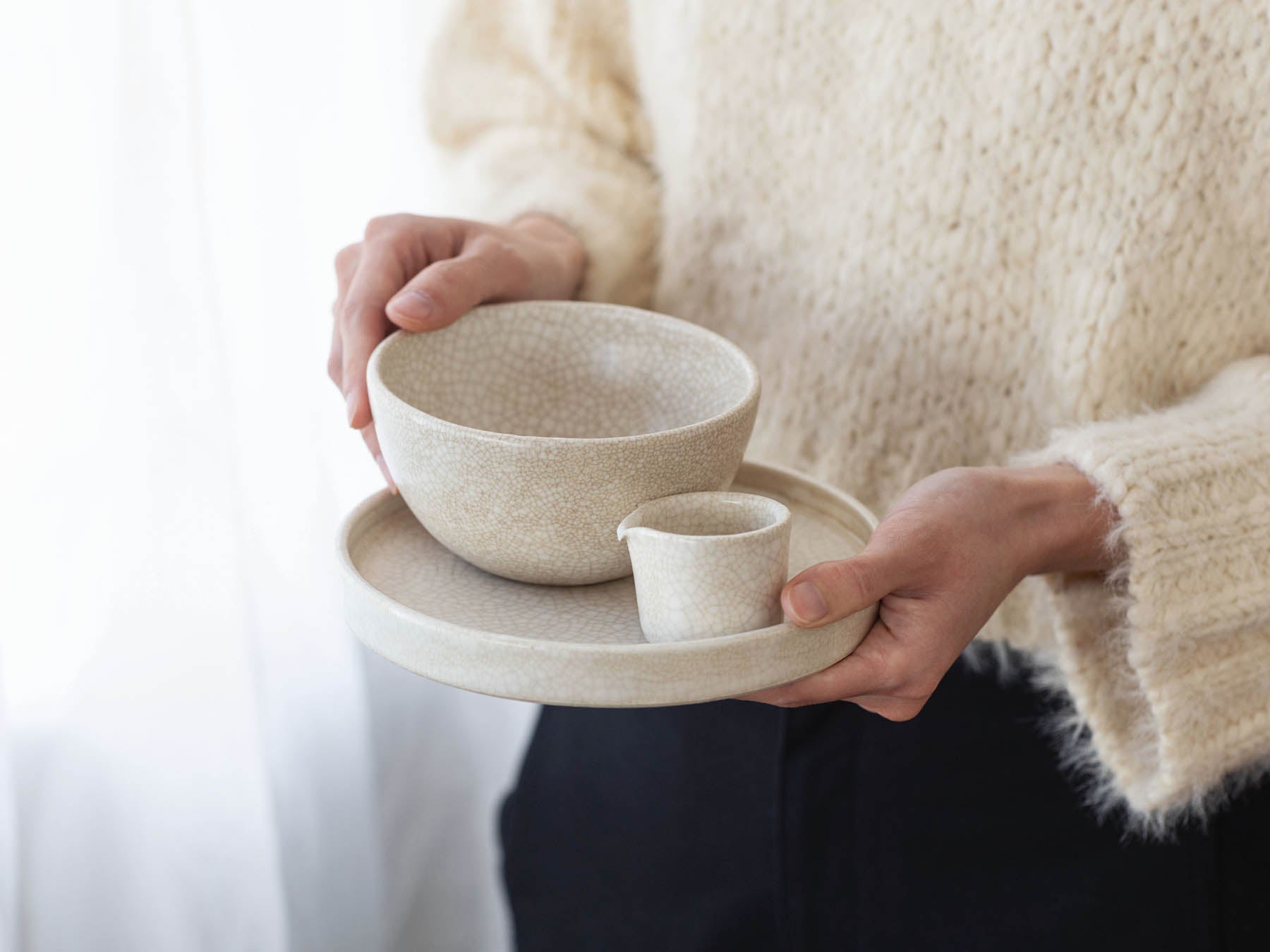 繊細な貫入の模様が印象的な「お盆(トレイ)」をご紹介します。