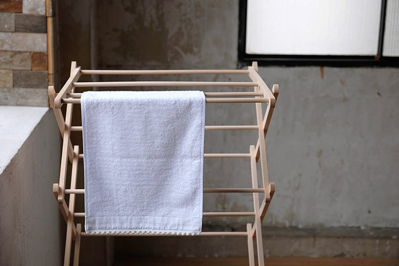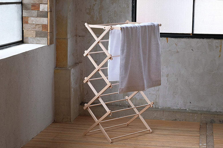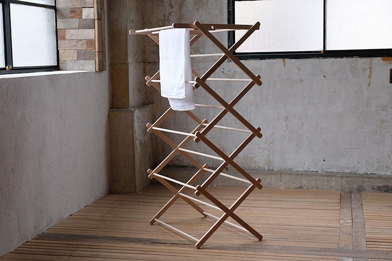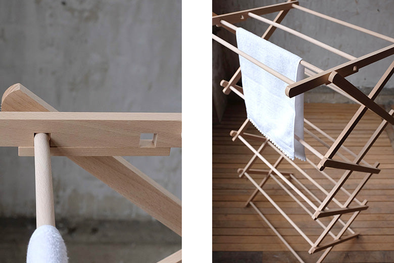 ビーチウッドを使用したナチュラルな印象のハンガーは、美しい立ち姿で、干している様子も何だか絵になります。