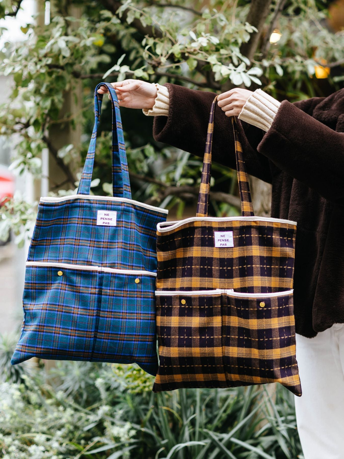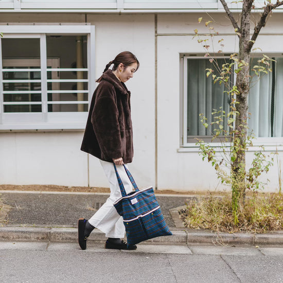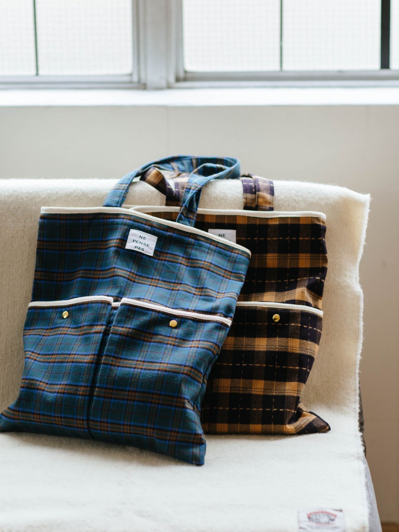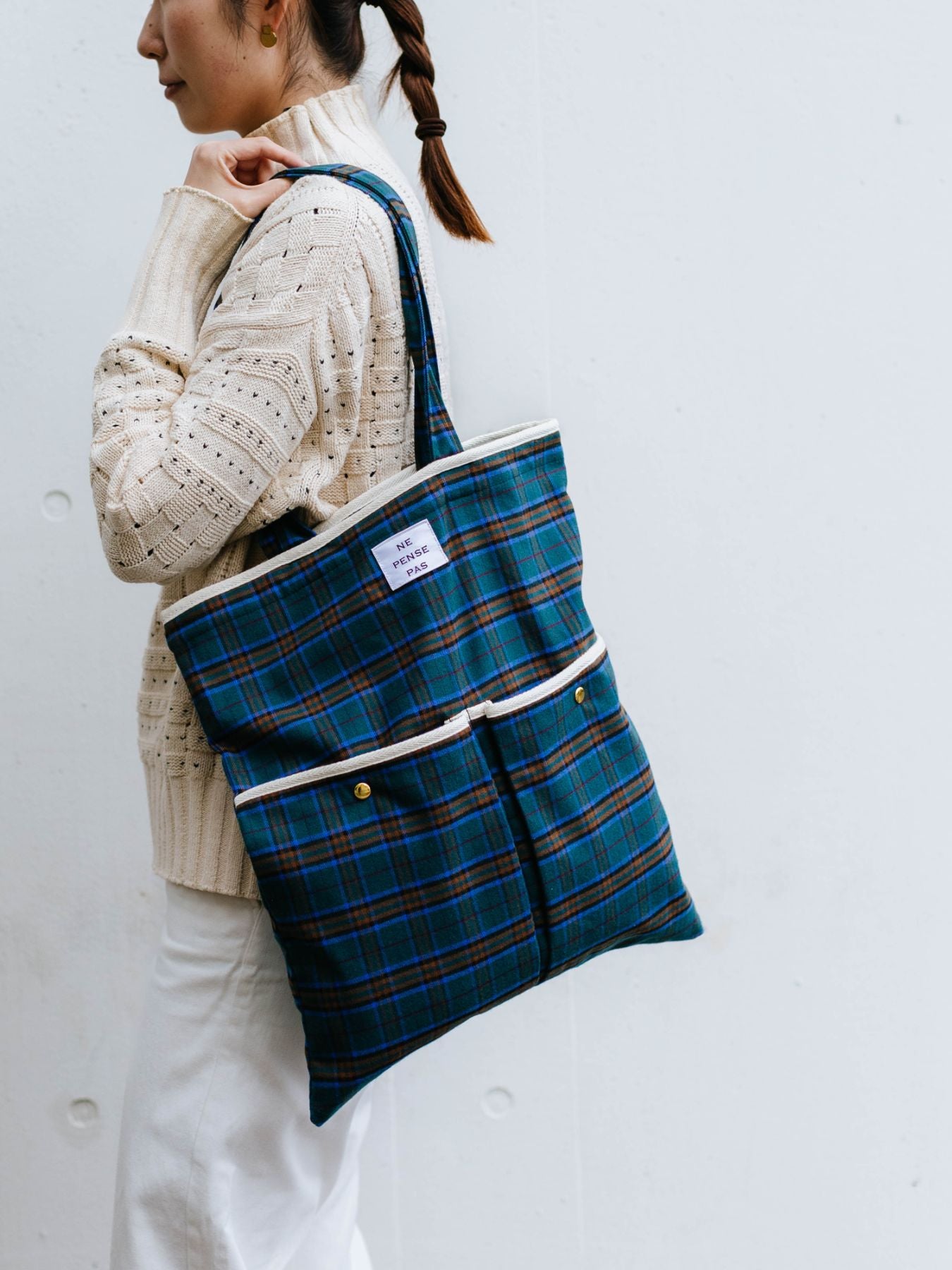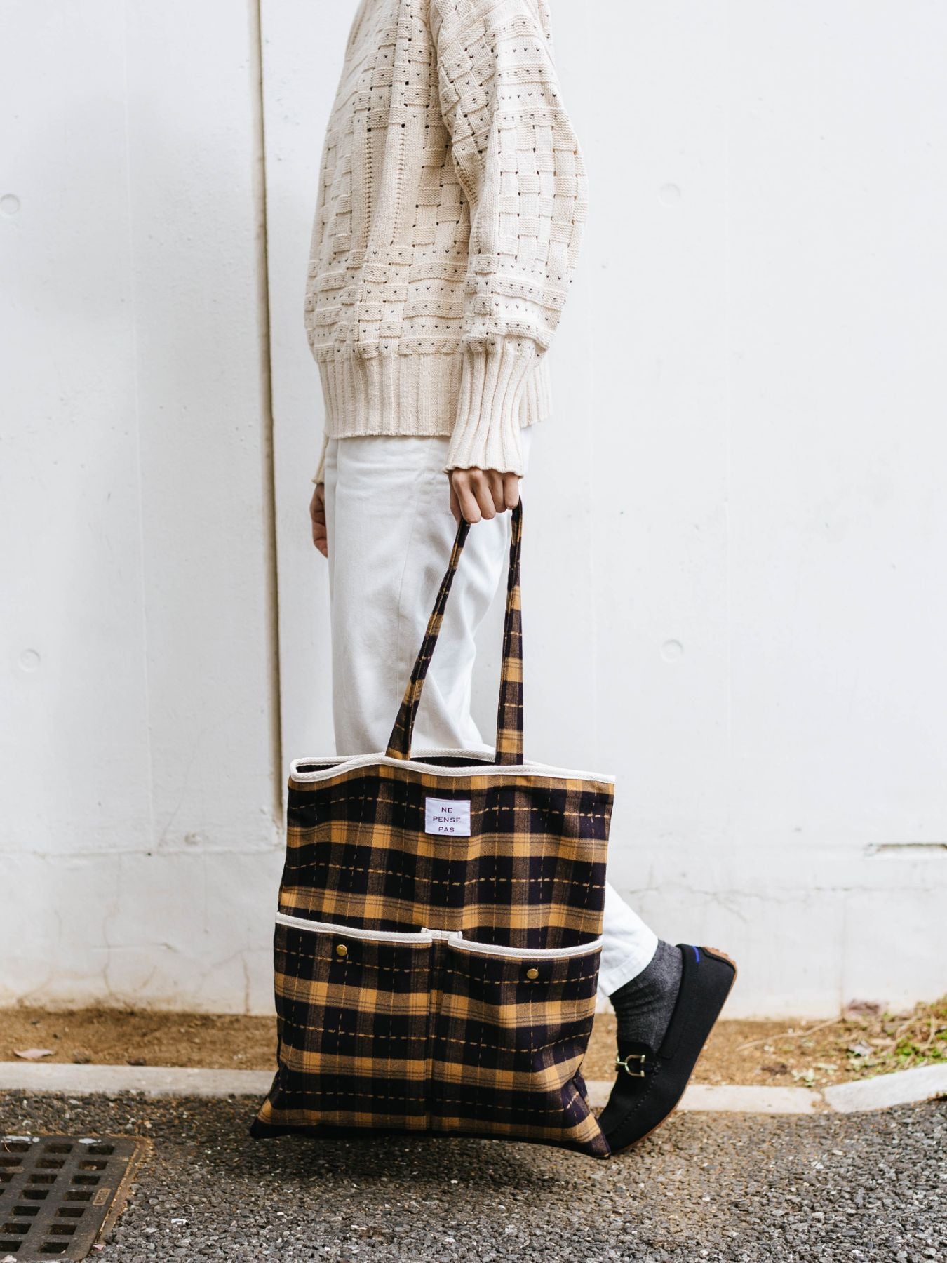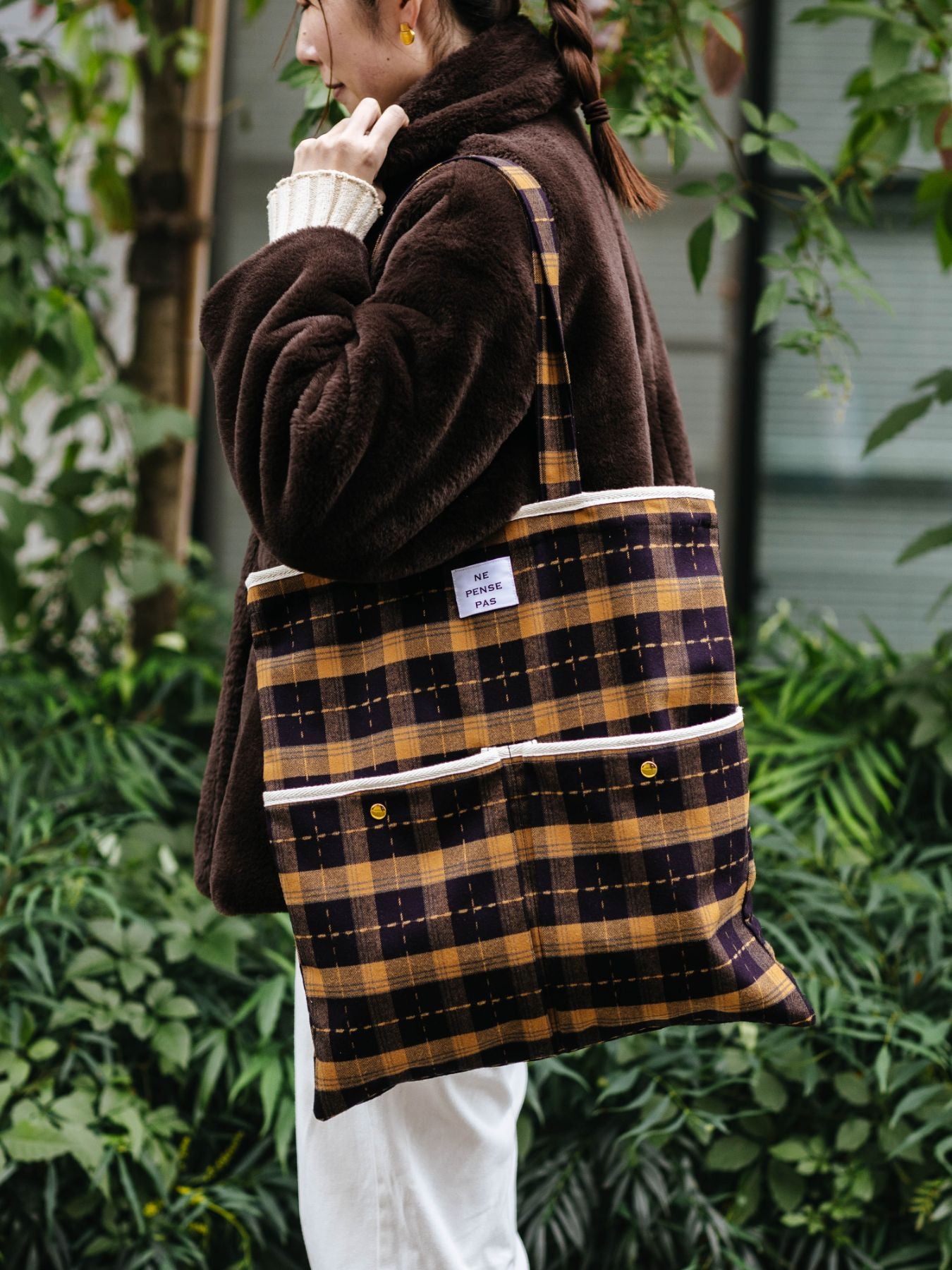 クラシックで永く愛されるチェック生地を使い、日々のコーデにもすっと馴染むトートバッグに仕立てました。