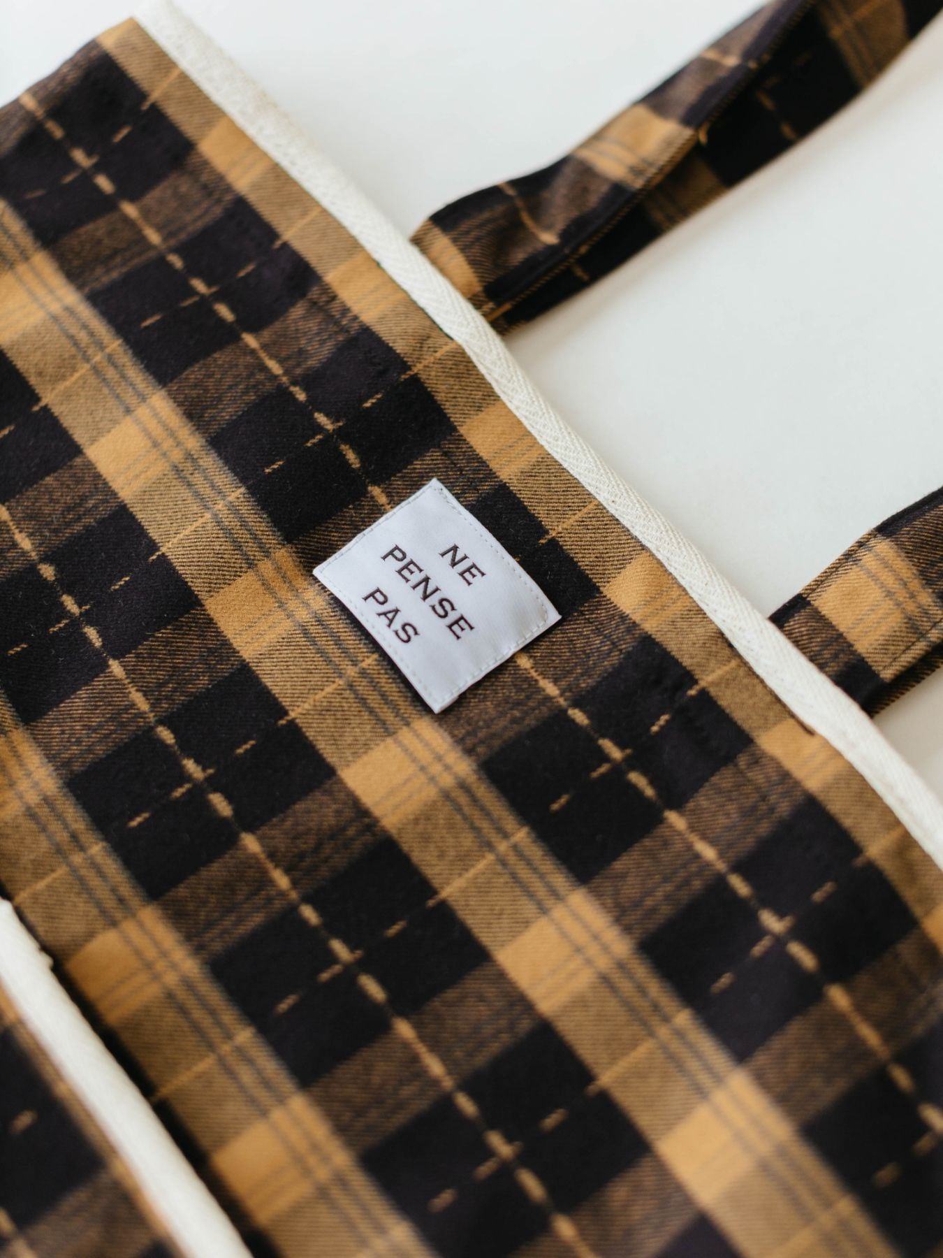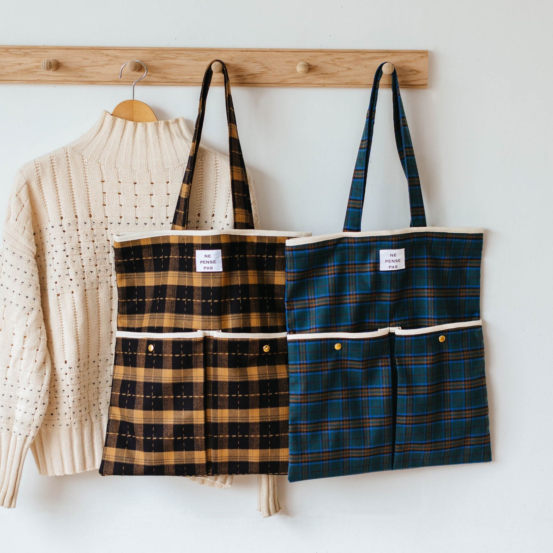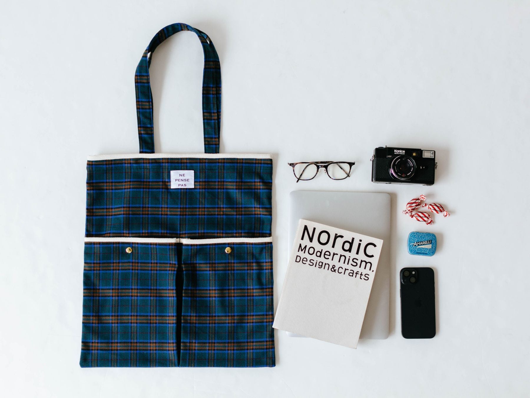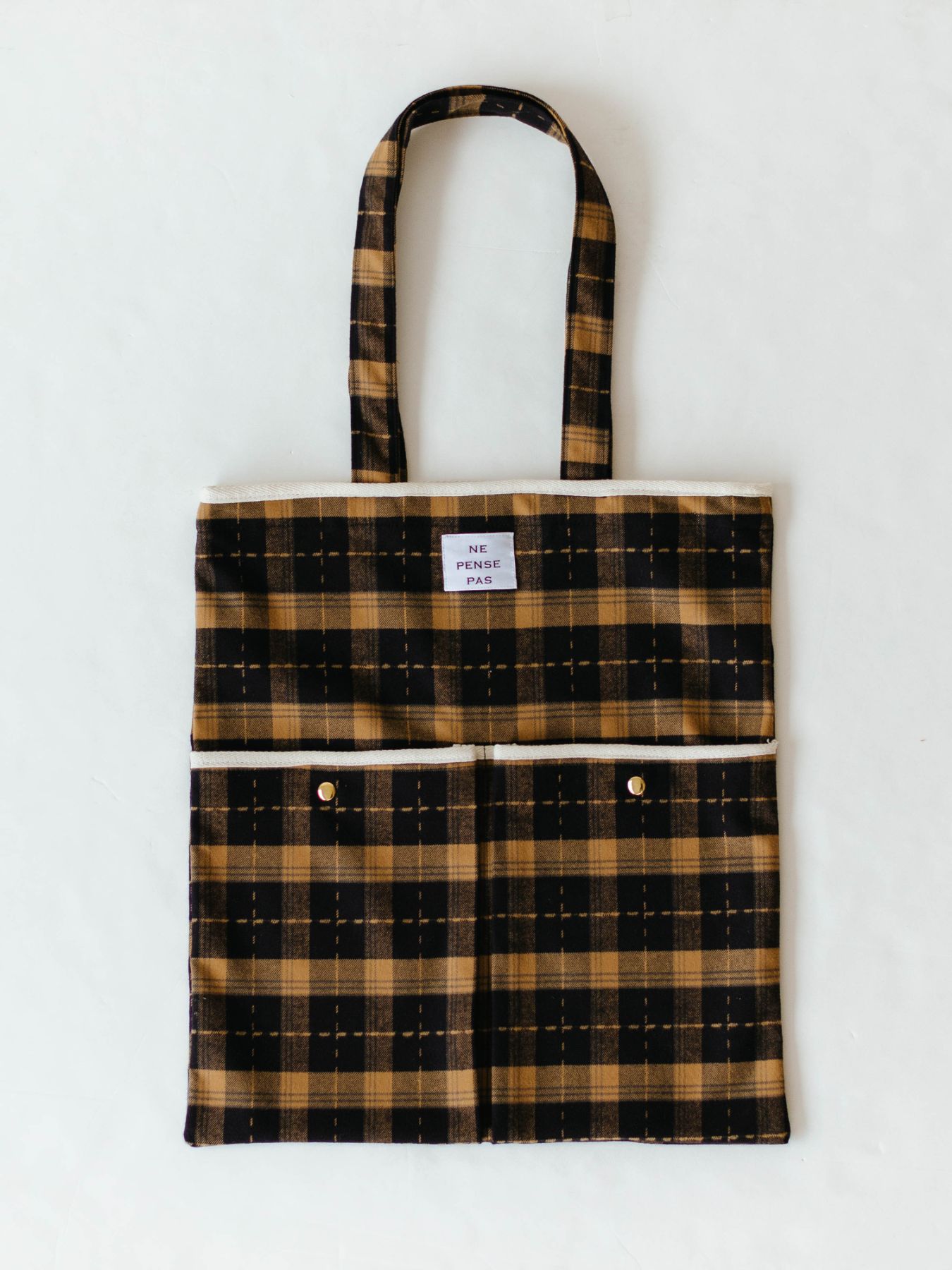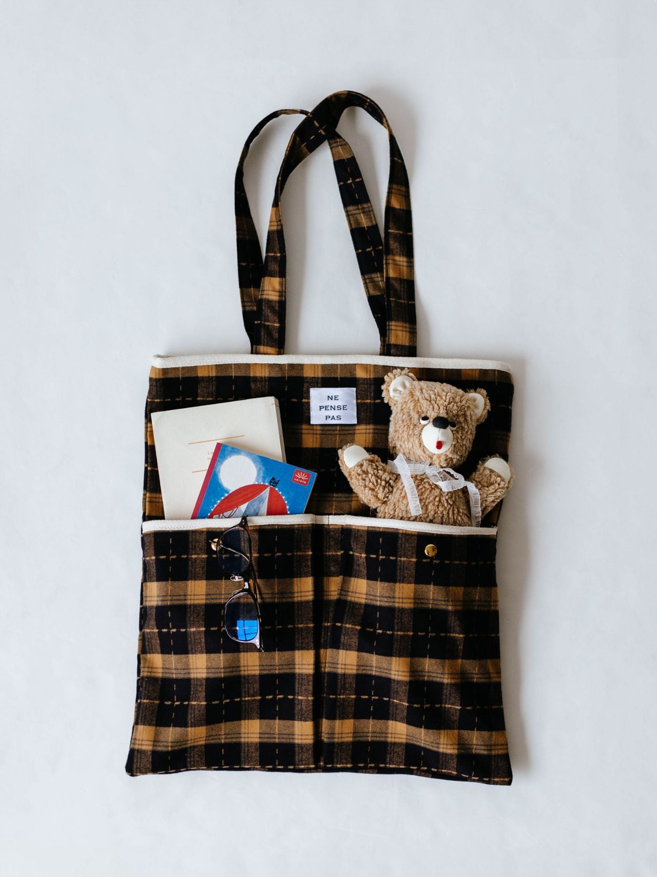 クラシックで永く愛されるチェック生地を使い、日々のコーデにもすっと馴染むトートバッグに仕立てました。