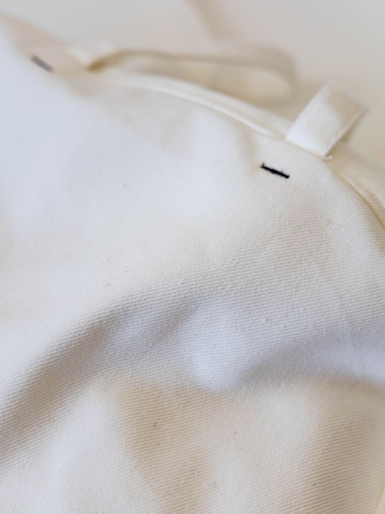 開口部分の仕様。ファスナーがなく布が重なる構造です。