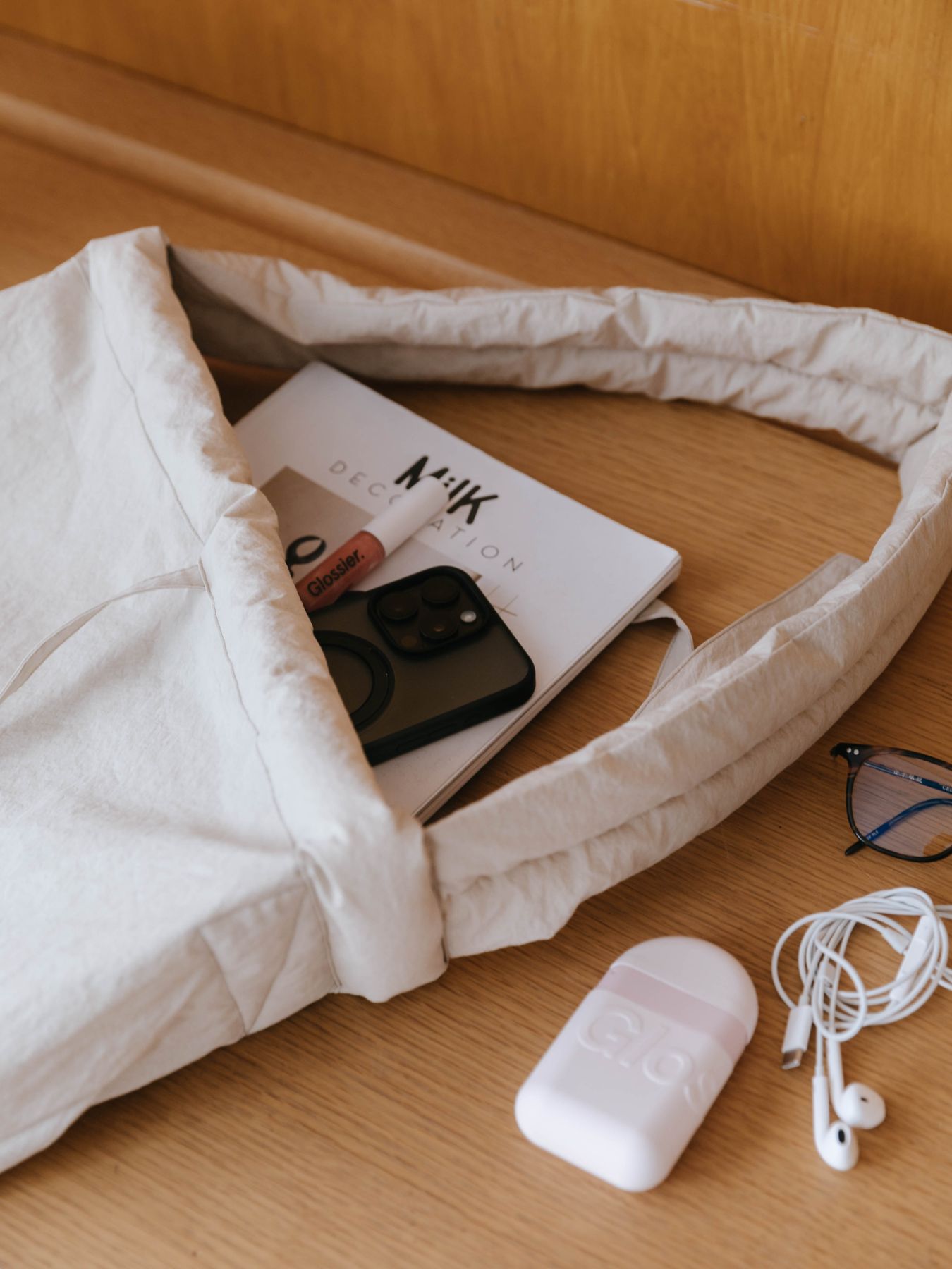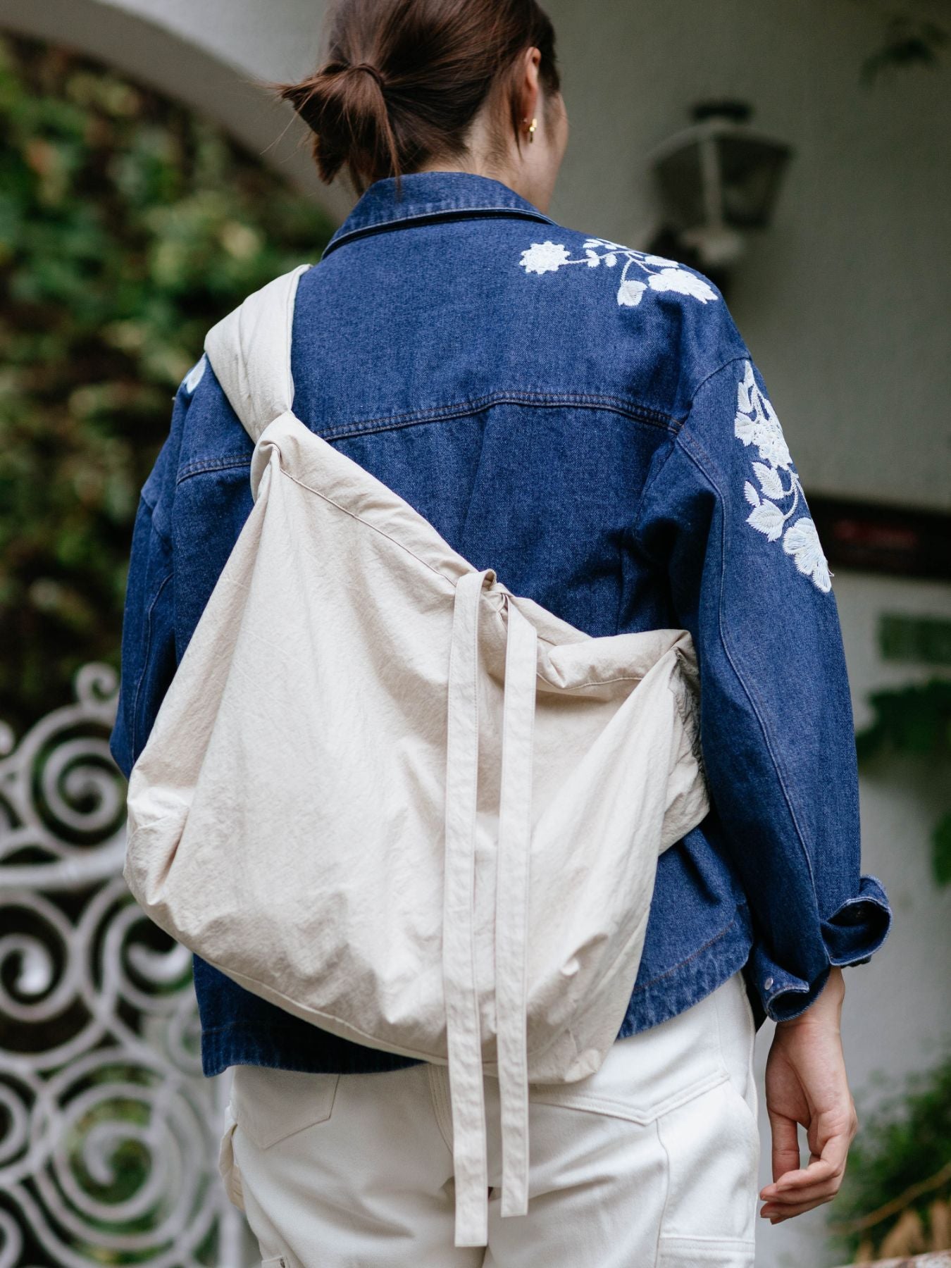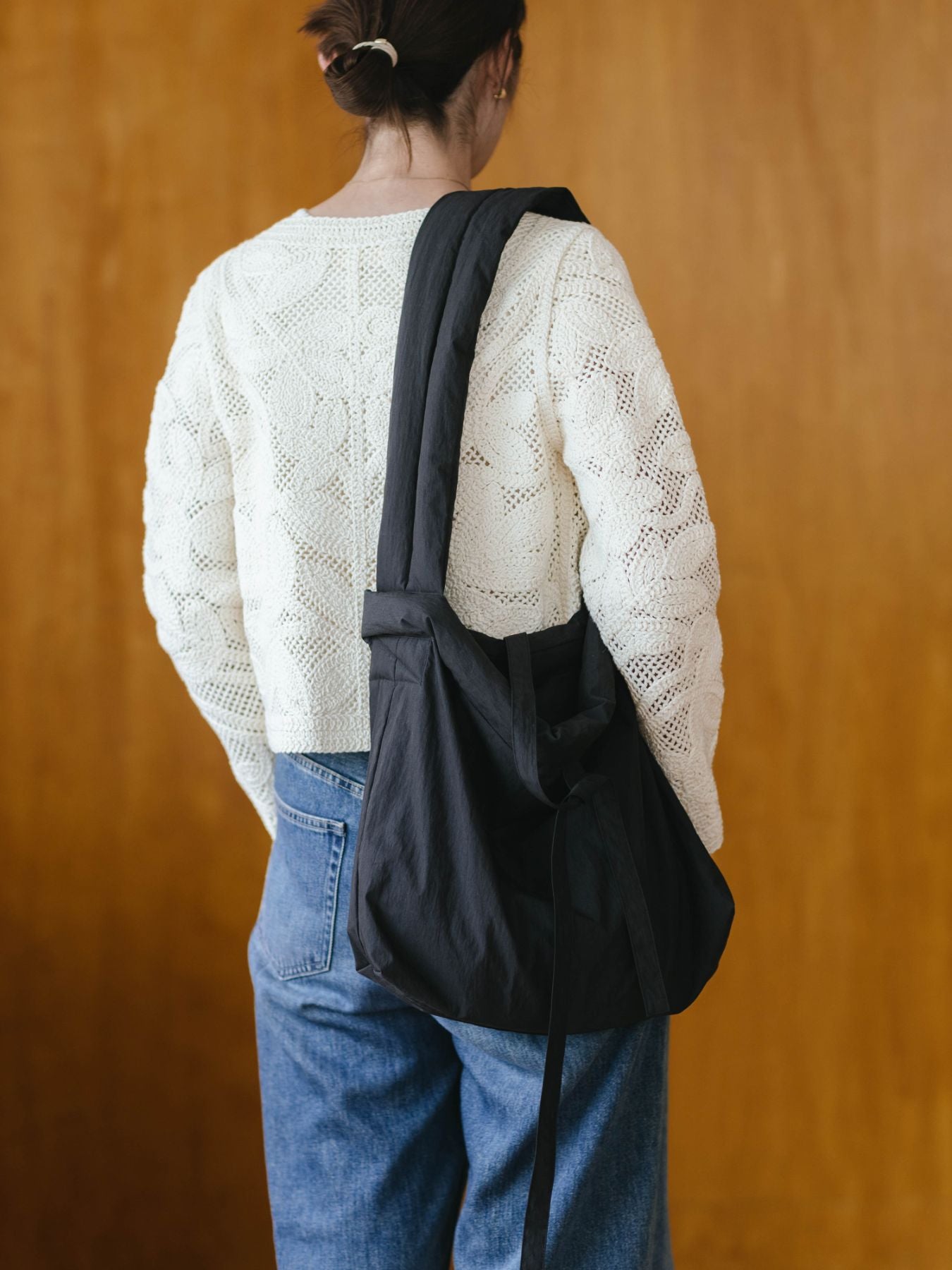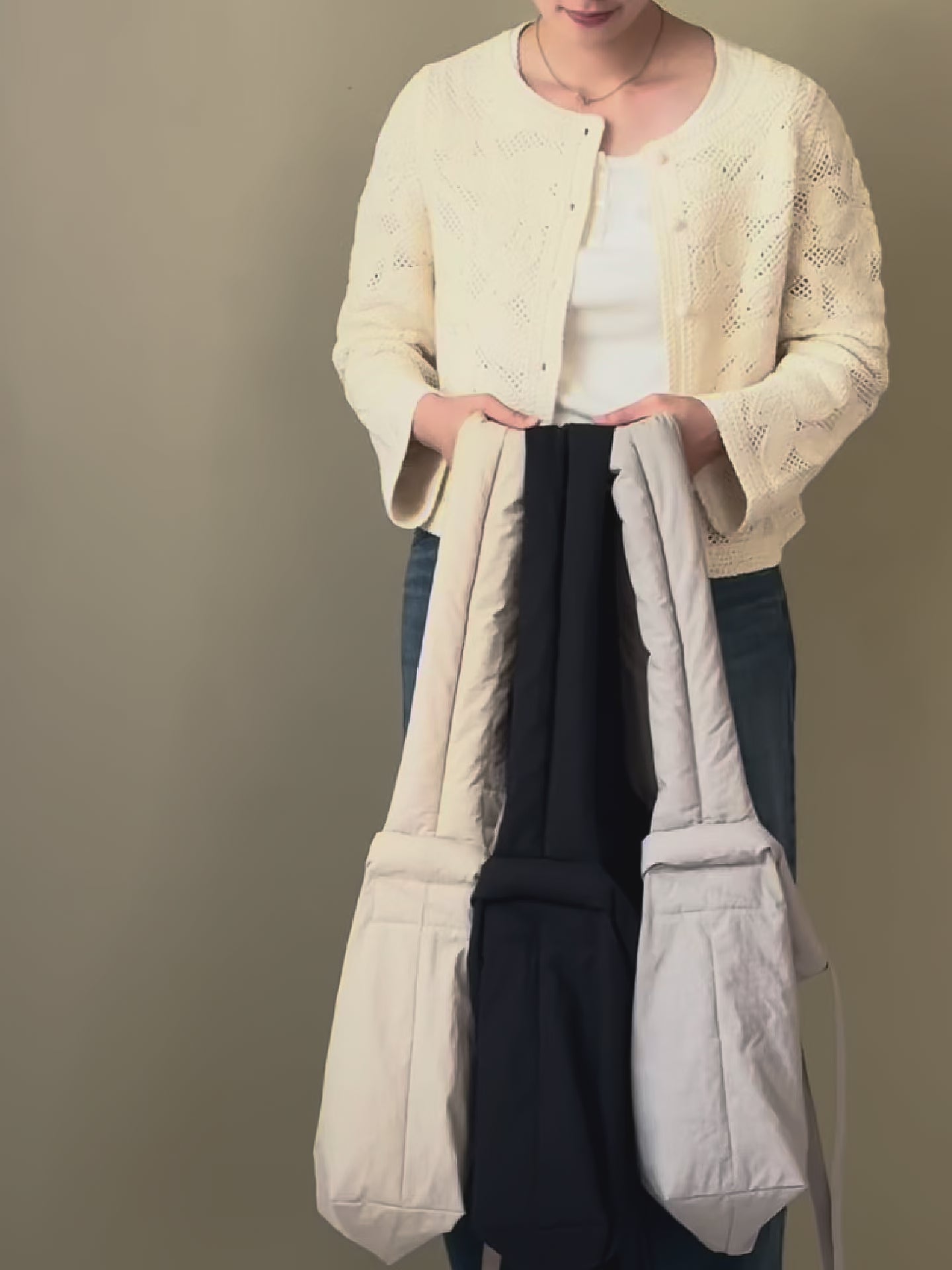 バッグ全体ではなく部分的に中綿を入れることで、見た目はすっきり。