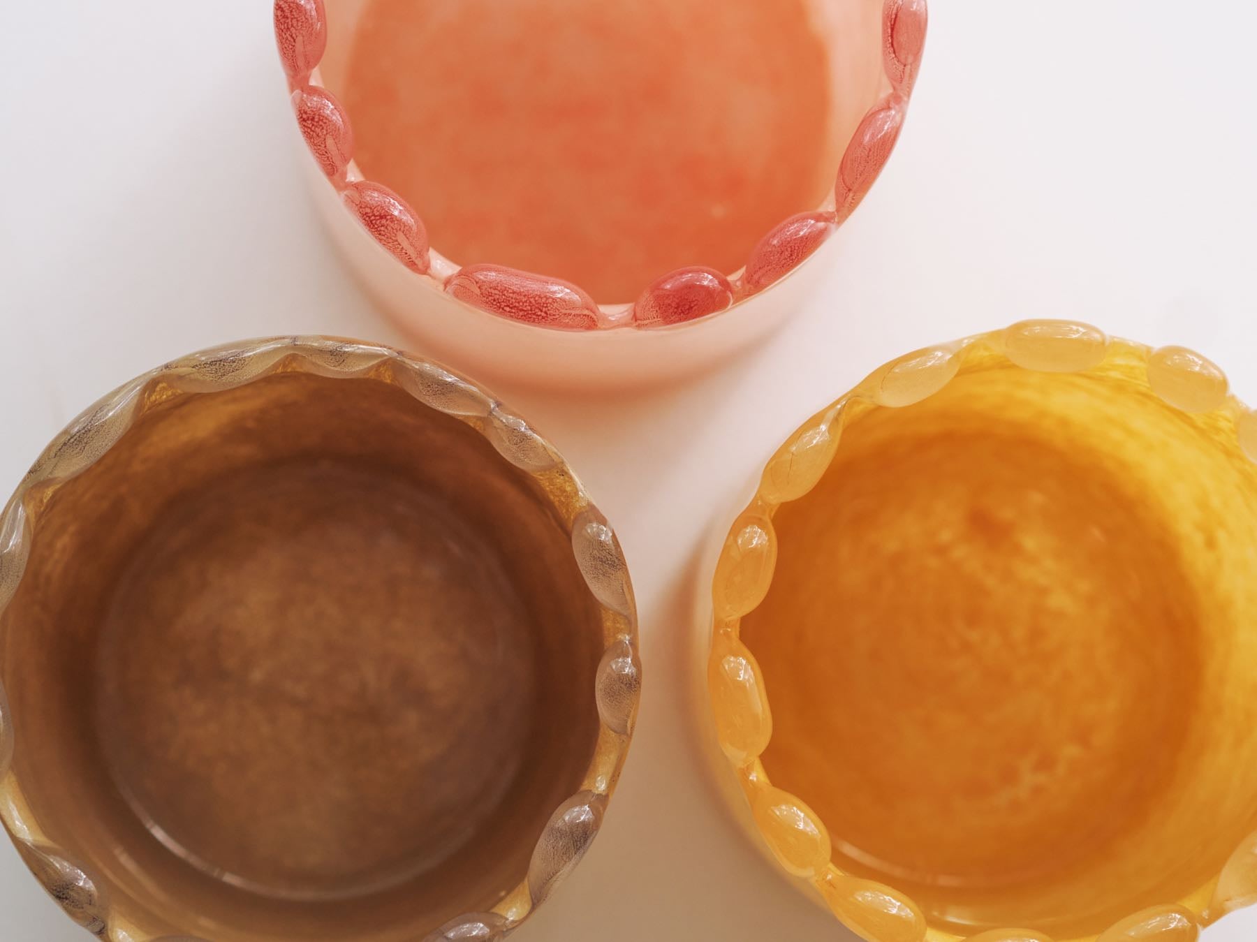 ポコポコと立体的な縁が愛らしいDiana。 ピンク、カーキ、オレンジの3色をご用意しました。