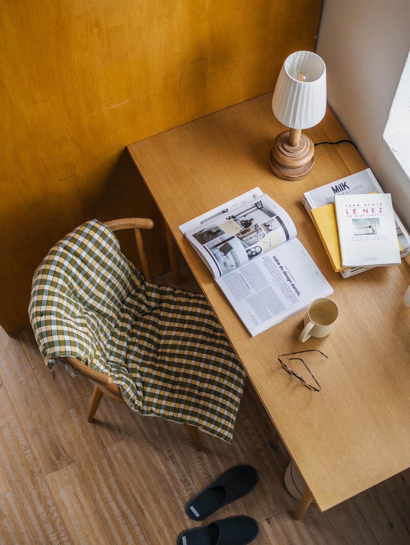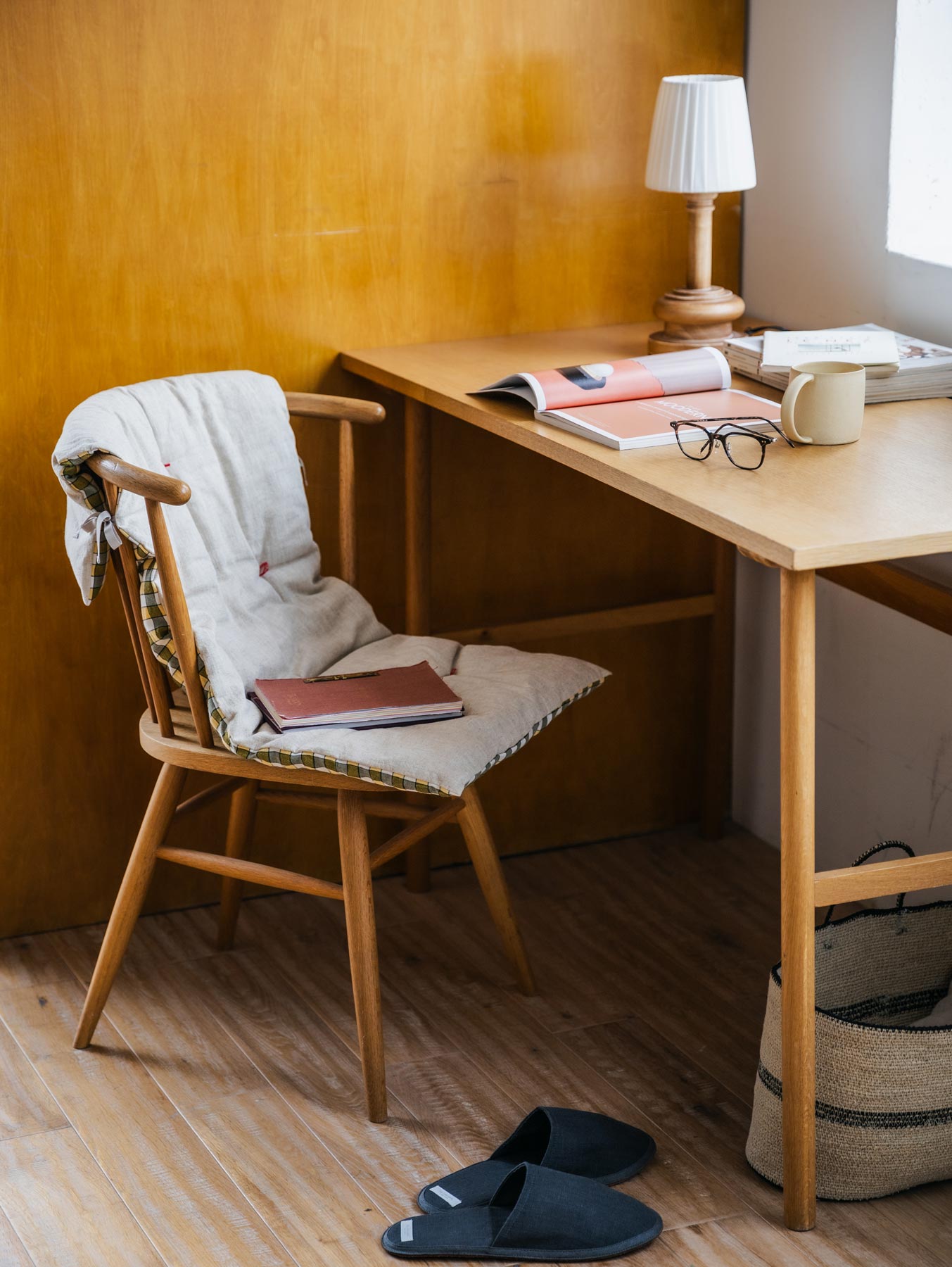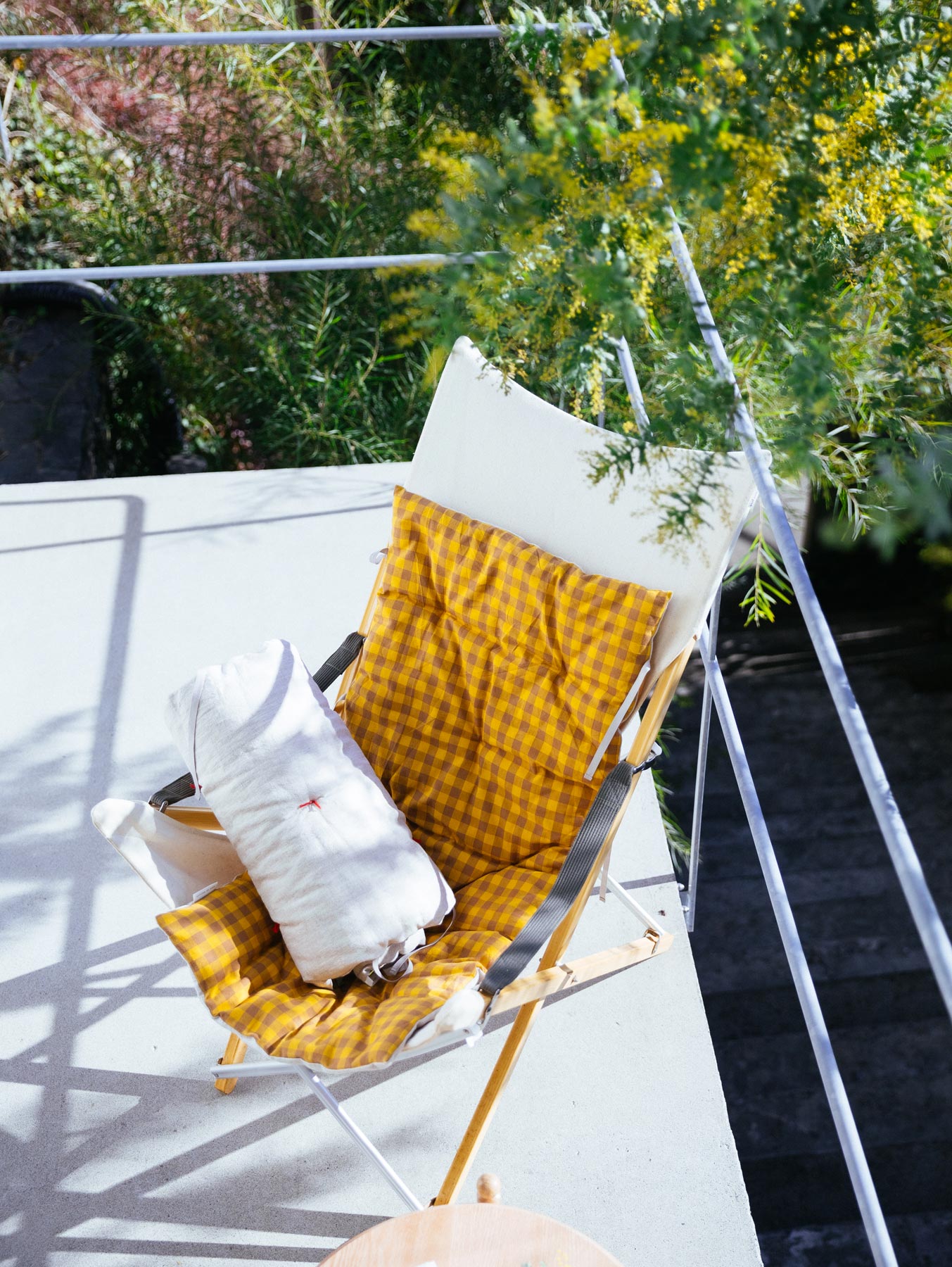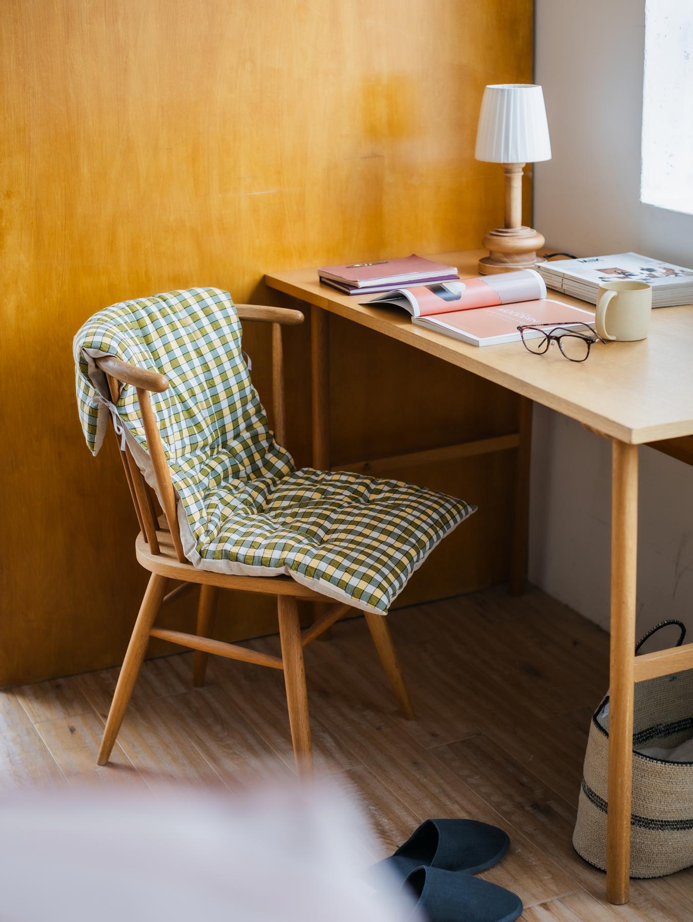 マルチに使えるシートクッションは当店で人気のアイテムですが、今回は小ぶりなサイズに仕立てたのでチェア用にぴったり。座面から背もたれまで覆えるので、いつもの椅子がもっと快適になります。