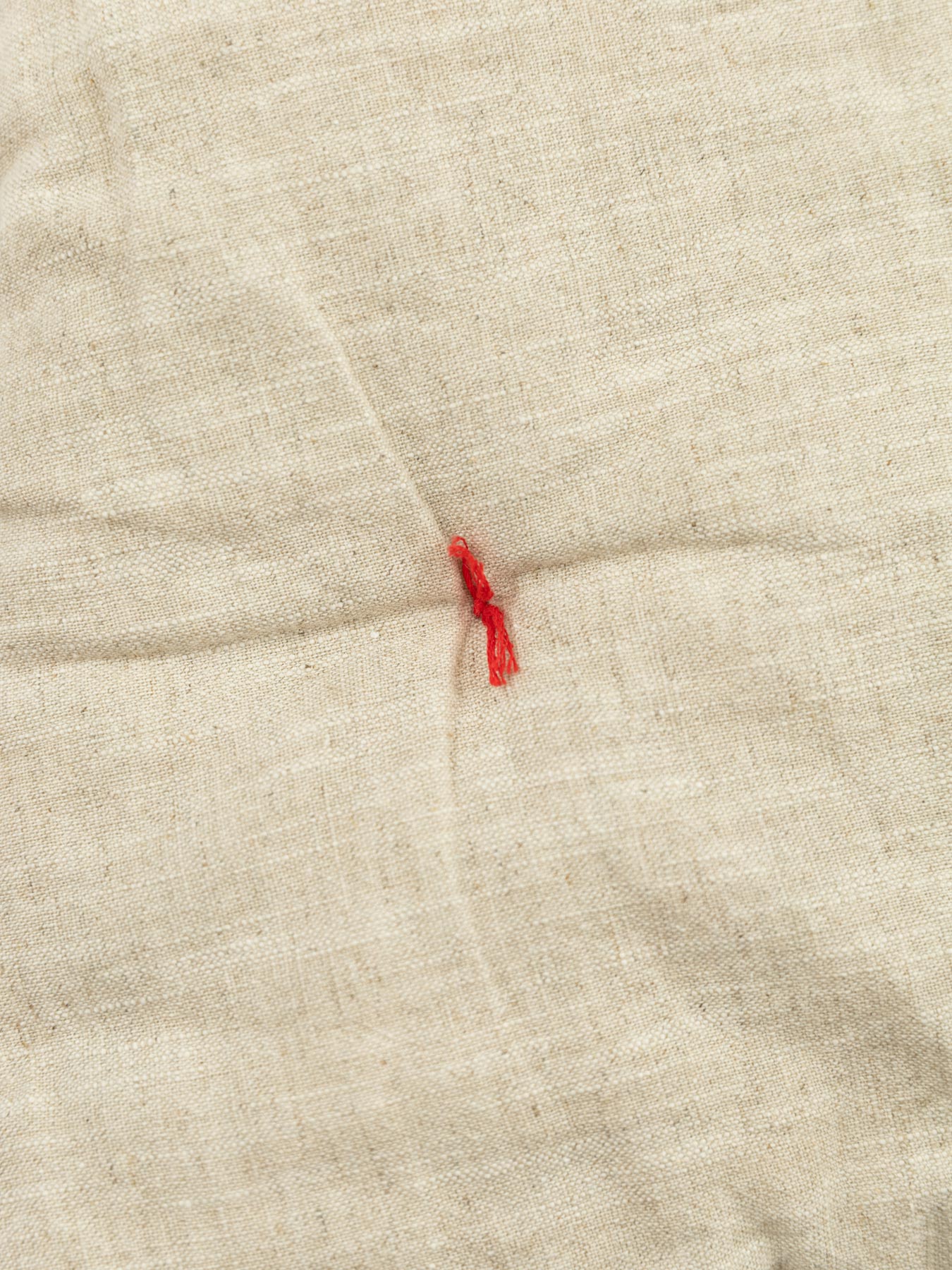 赤い糸で中綿が留められています。(表側からも留め糸が見えます)