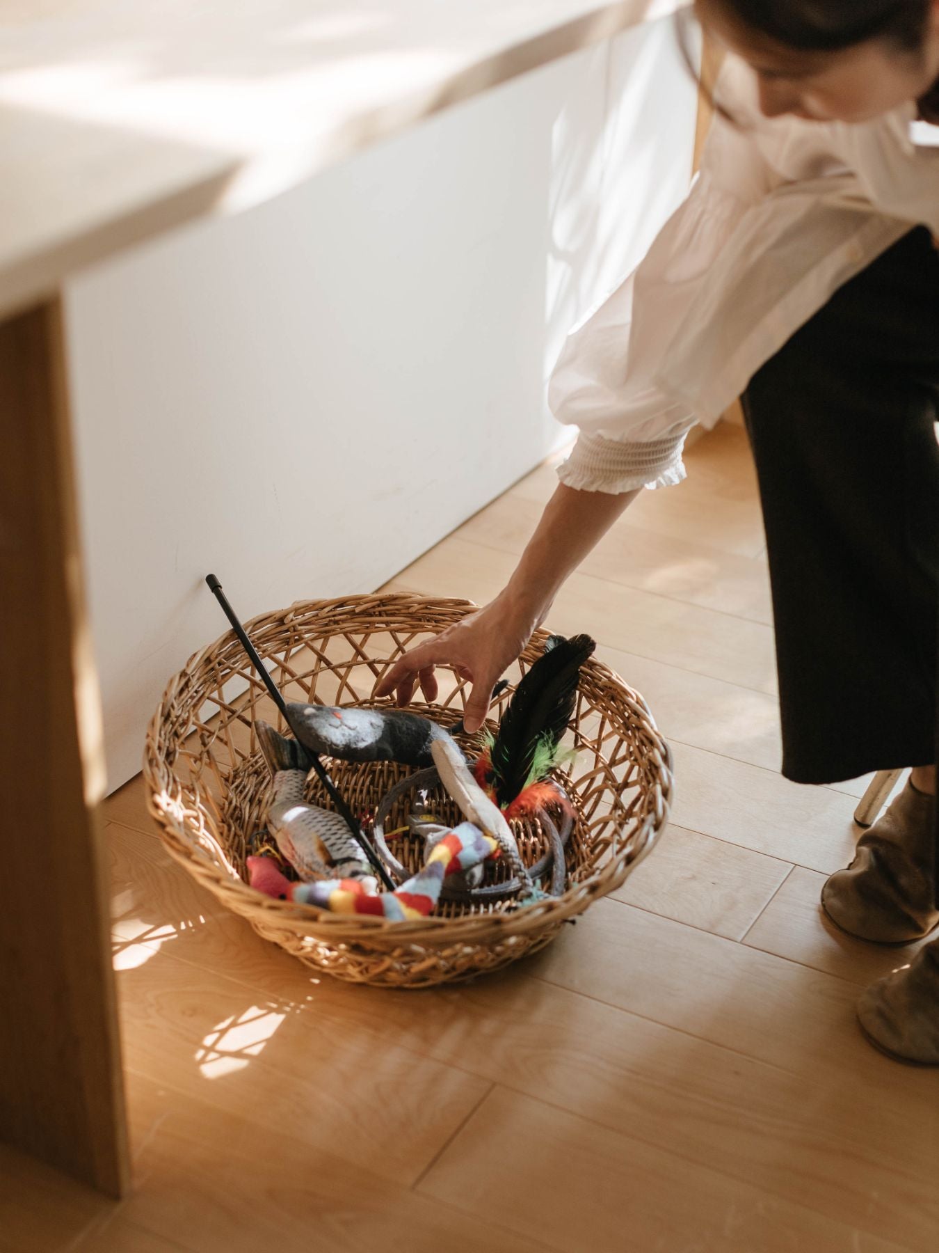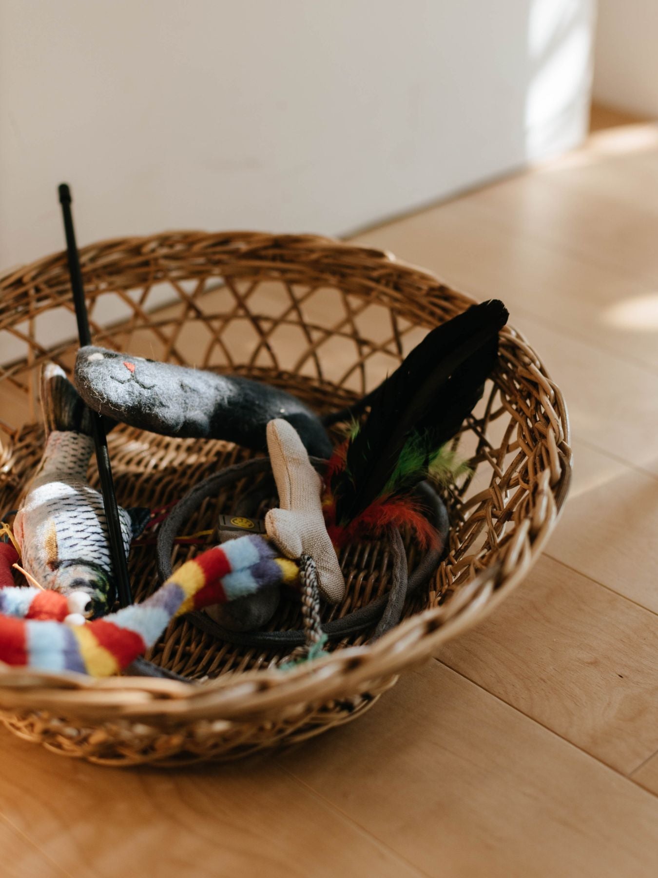 バスケットは猫ちゃんのベッドとしてだけでなく、おもちゃやブランケットなどの収納場所としても活躍します。