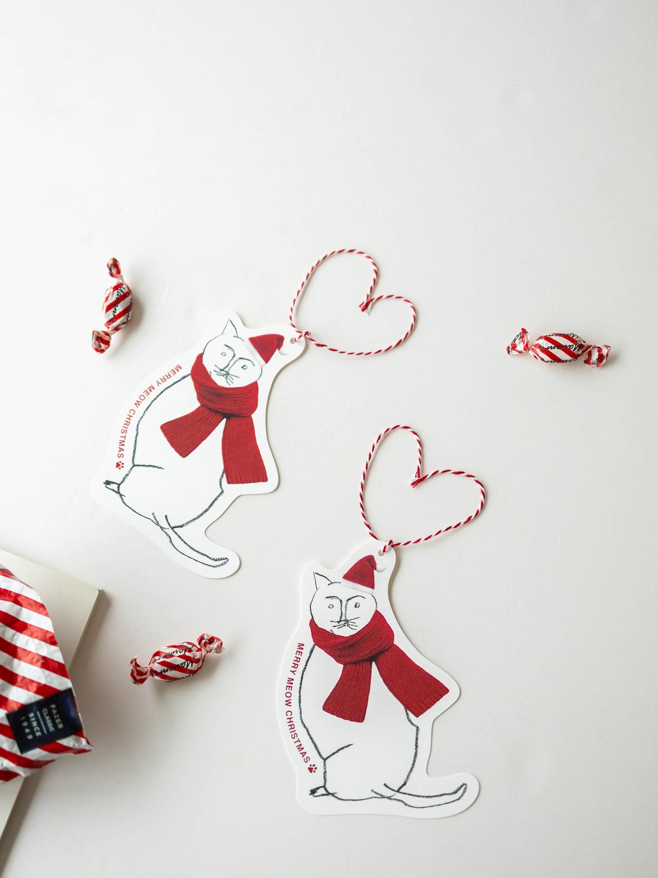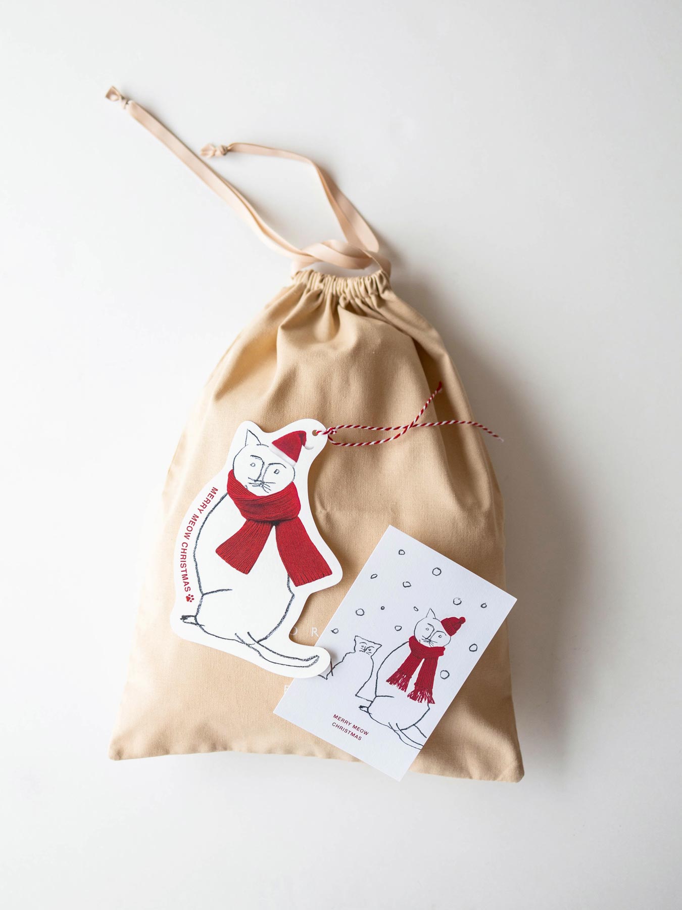 英語のメッセージは「MERRY MEOW CHRISTMAS」と肉球マーク。