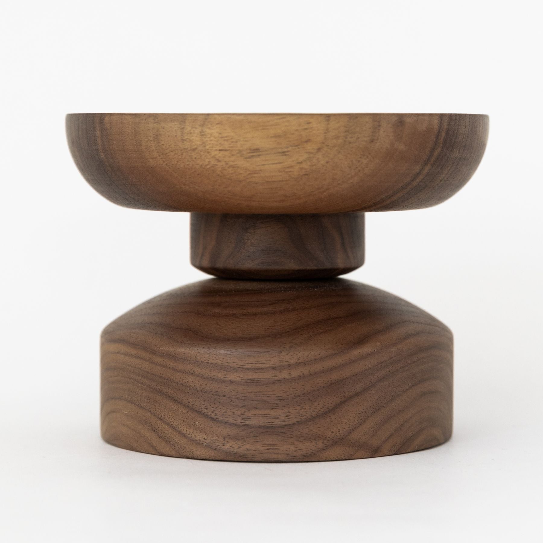 無垢材を削り出して仕上げた、整ったフォルム。重厚感と抜け感をあわせ持ち、まるで木工家具のような佇まいのスタンドです。