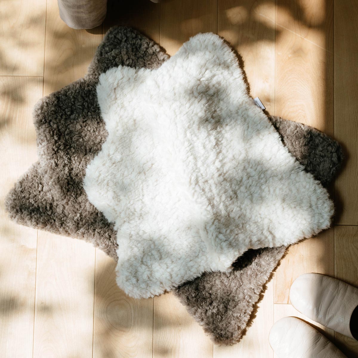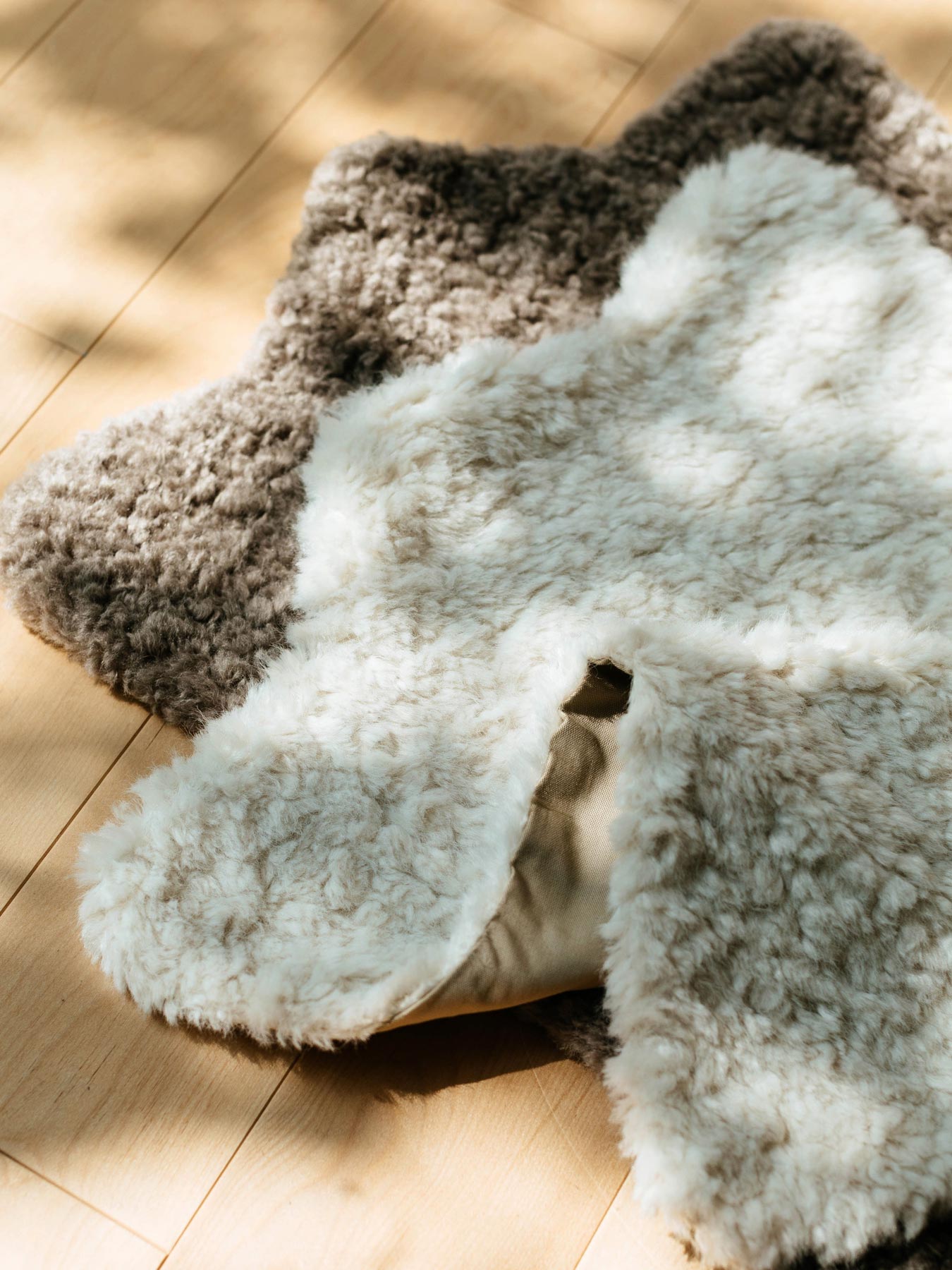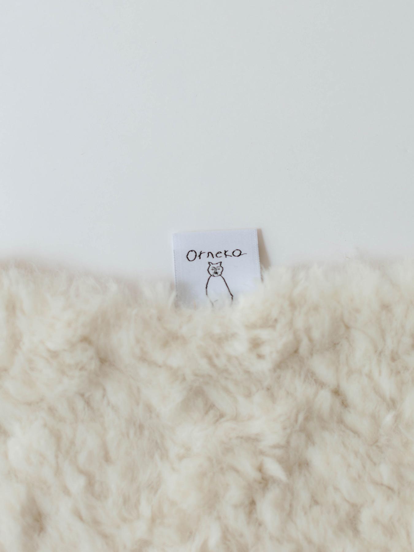 「ネコにも人間と同じデザインを!」のオルネコ精神で、ムートンの敷物をミニサイズにしたようなファーラグを作りました。