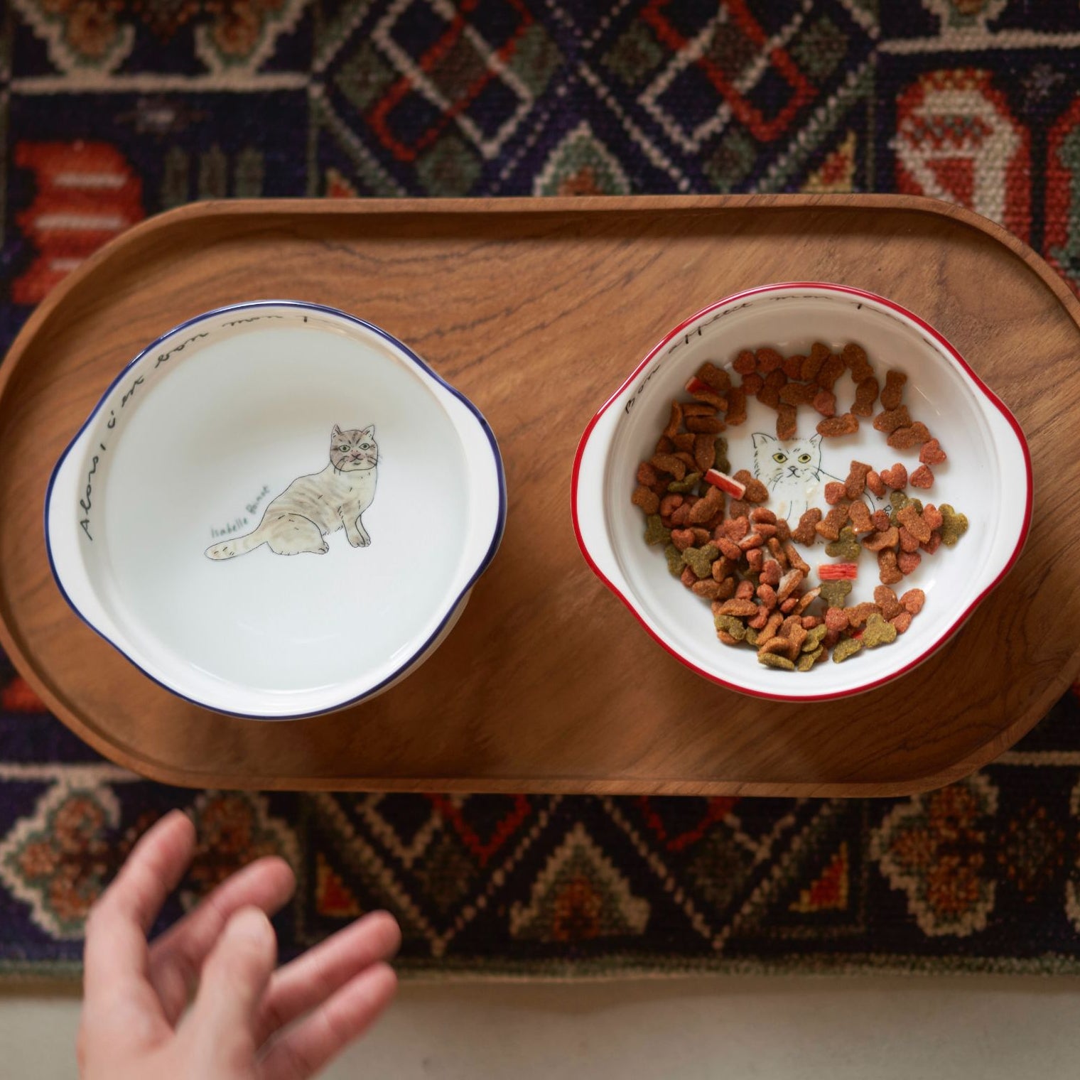 2匹のネコちゃんのイラストが可愛らしい、オリジナルのフードボウルができました。