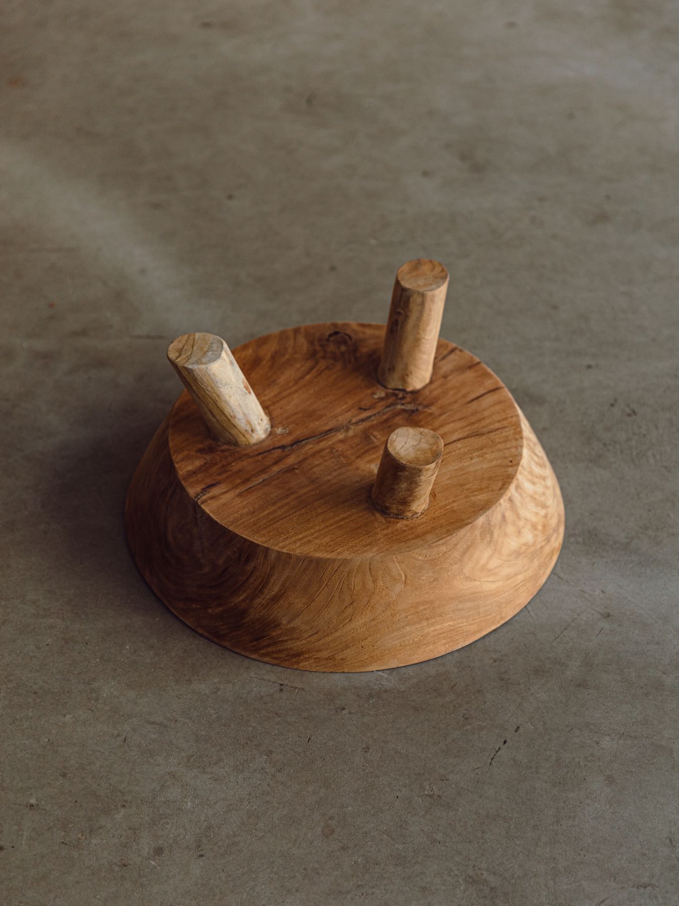 重厚感のある木の質感に、ちょこんと付いた3本脚。その絶妙なバランスにはヴィンテージ家具のような品格が漂います。