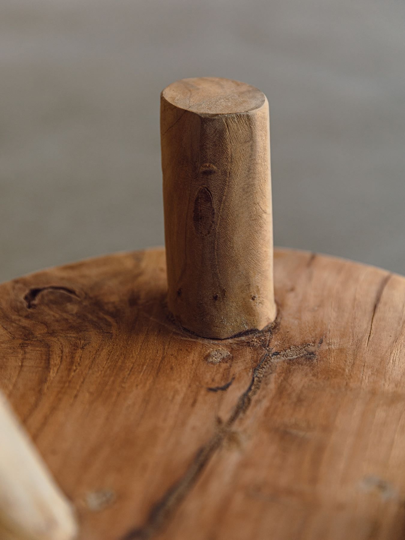 職人が一つひとつ時間をかけて削り出した、やわらかなカーブ。天然木ならではの力強い木目や節、欠けなどの表情。