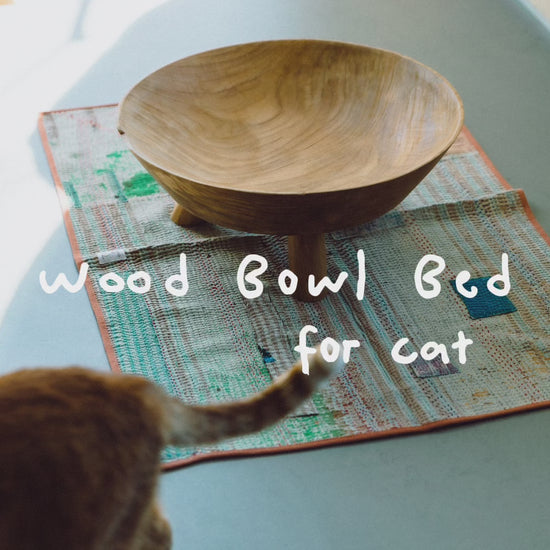ナチュラルな木の風合いのウッドボウル。その味わいある趣をそのまま、猫のためのベッドにしました。