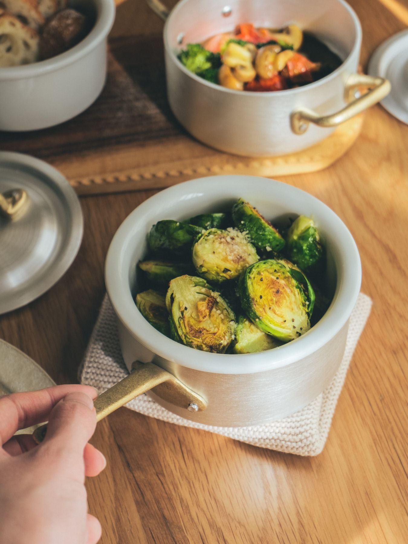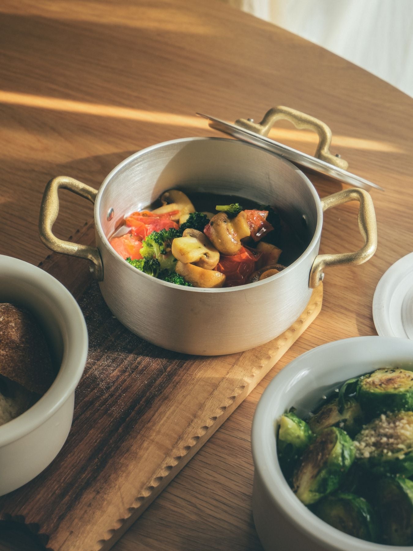 キッチンでも食卓でも映えるデザインで、調理からサーブまでをスマートにつないでくれます。