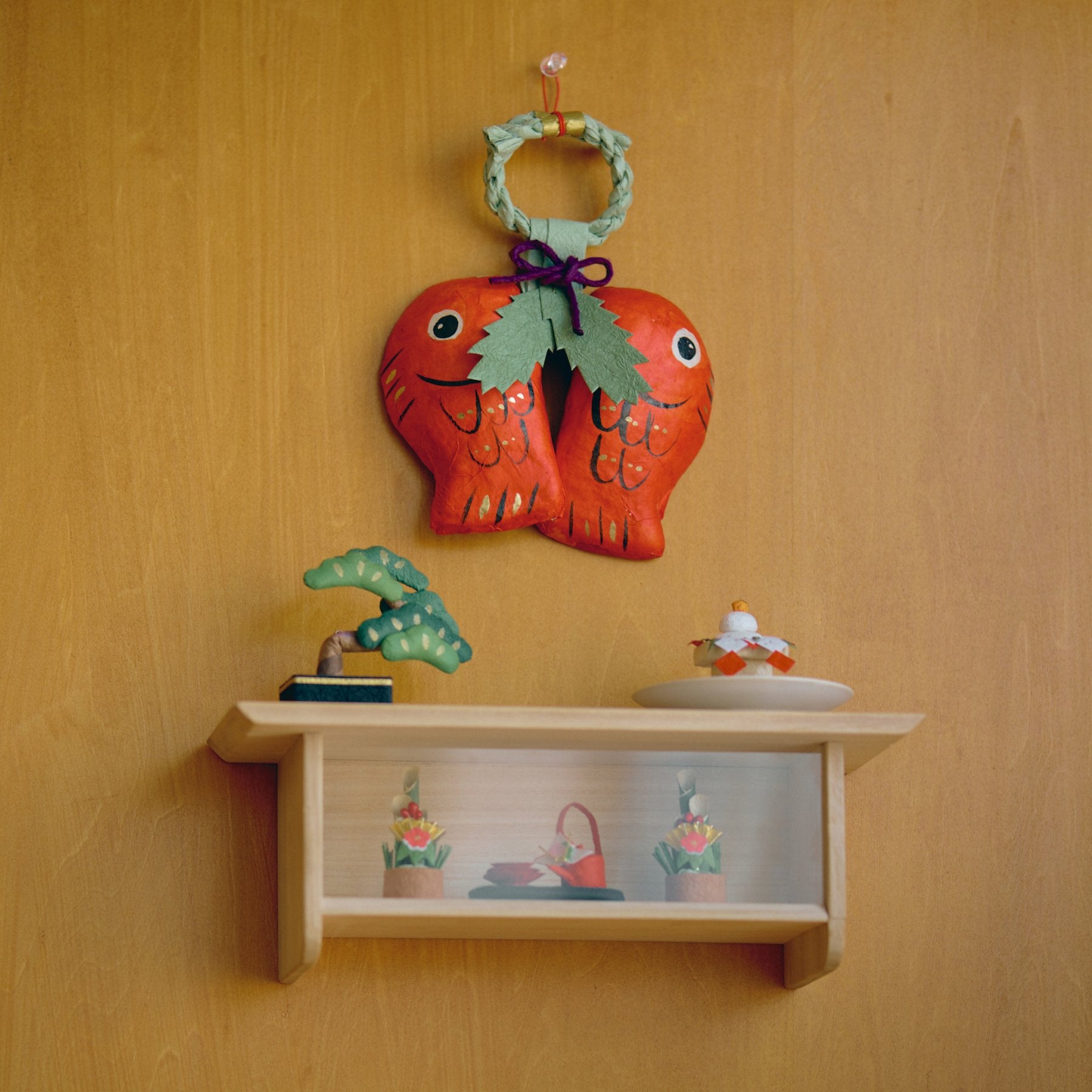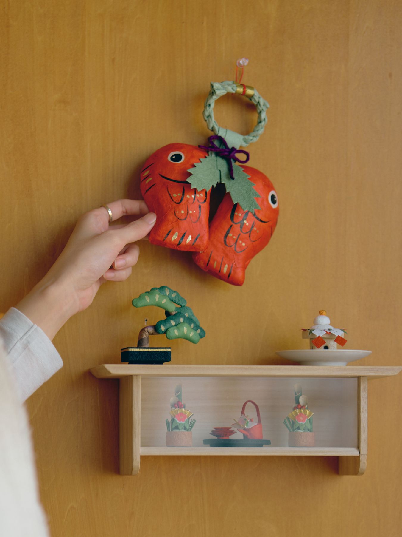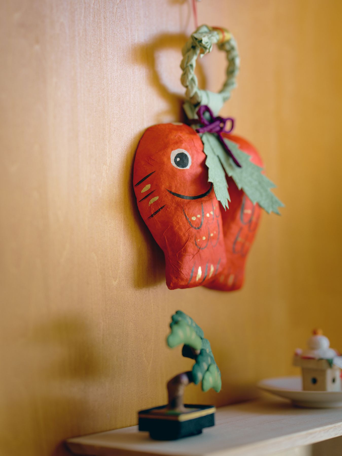 張り子の和紙飾りは、場所を選ばない軽さも魅力です。
