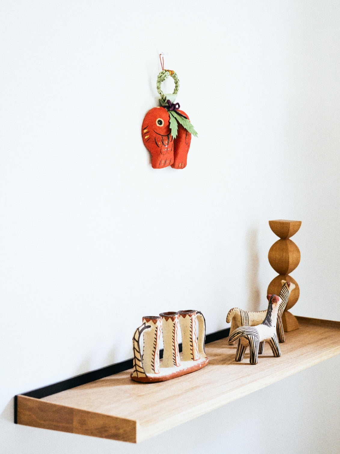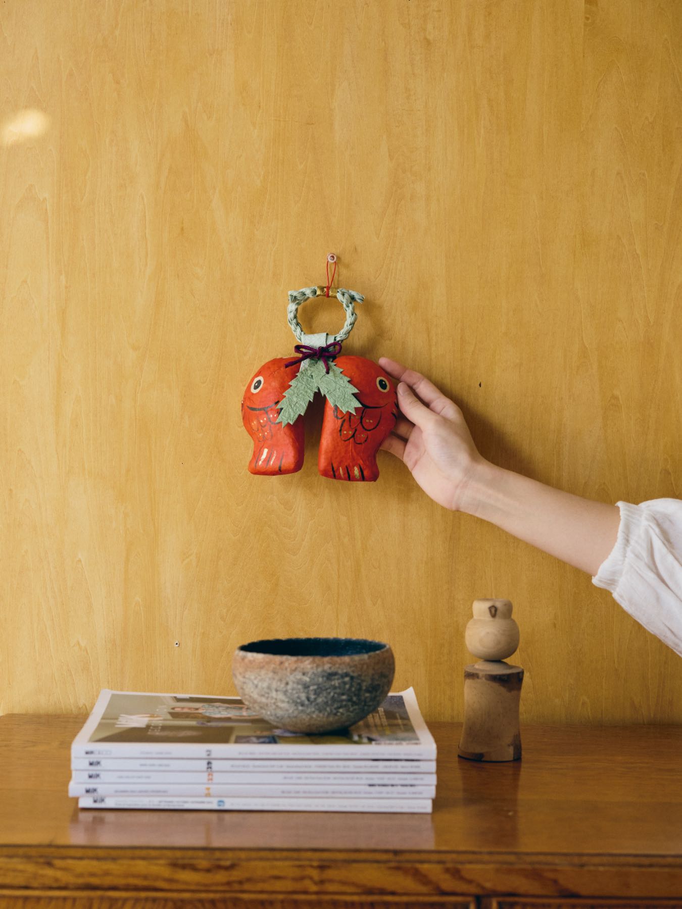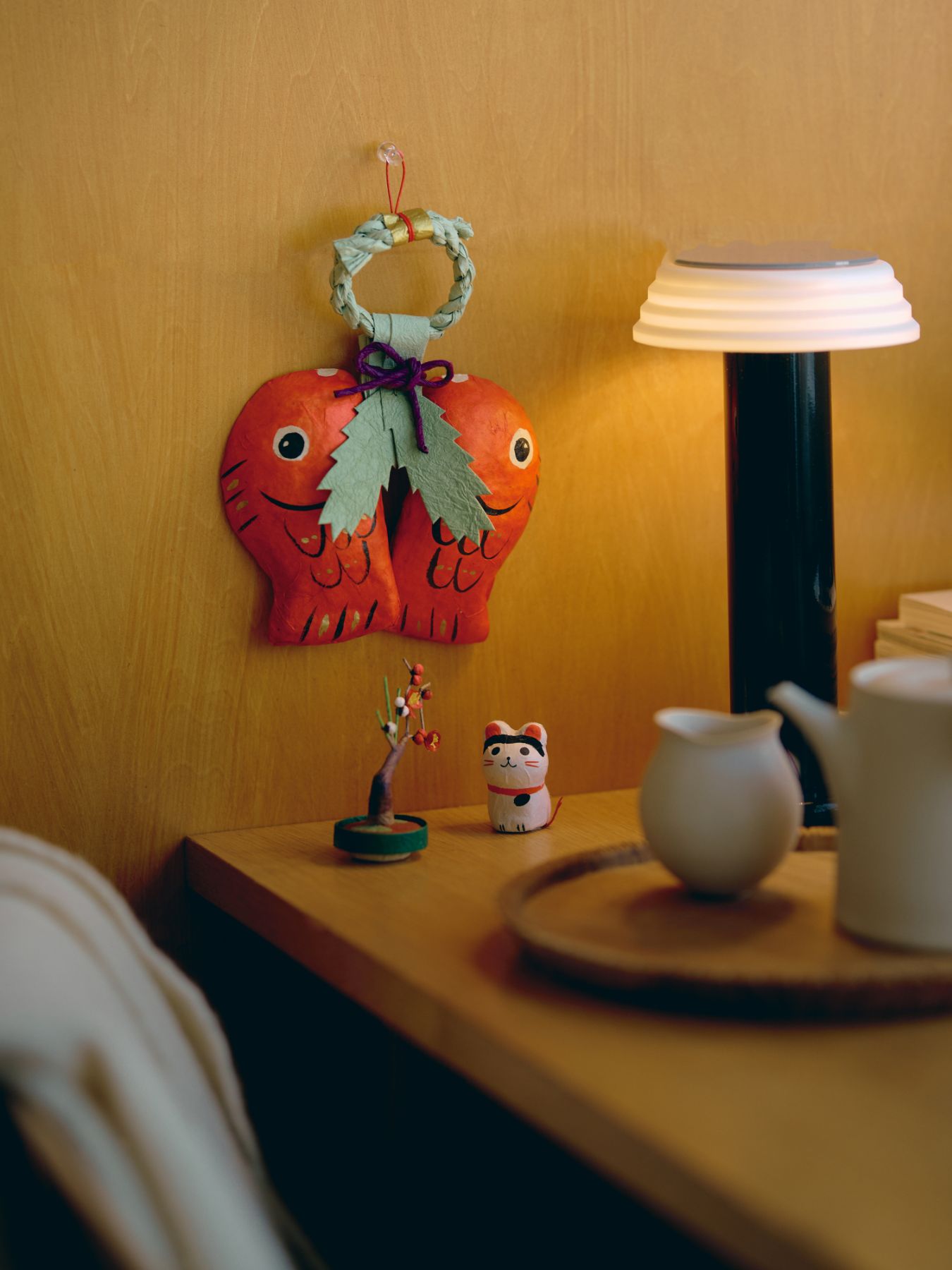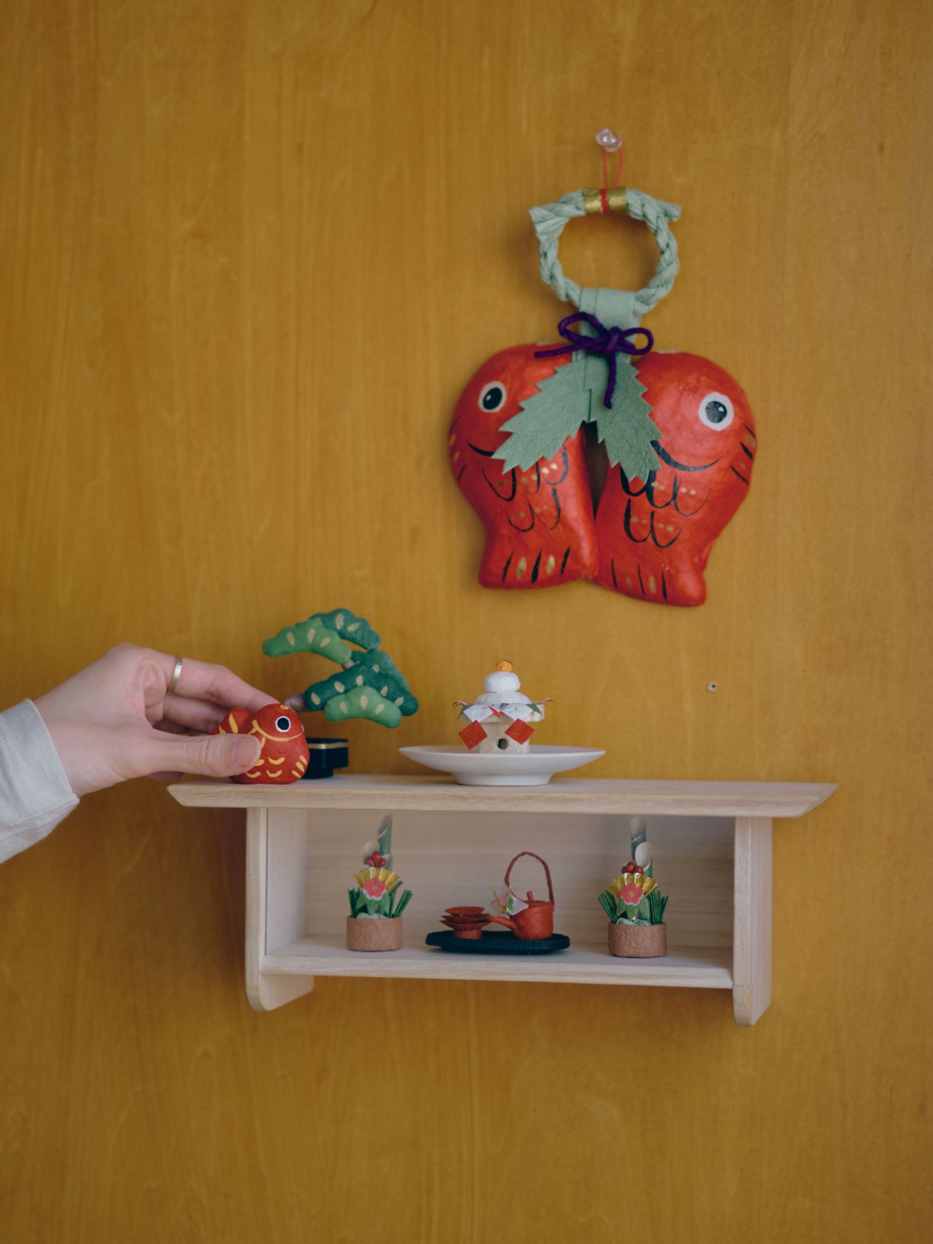 張り子の和紙飾りは、場所を選ばない軽さも魅力です。