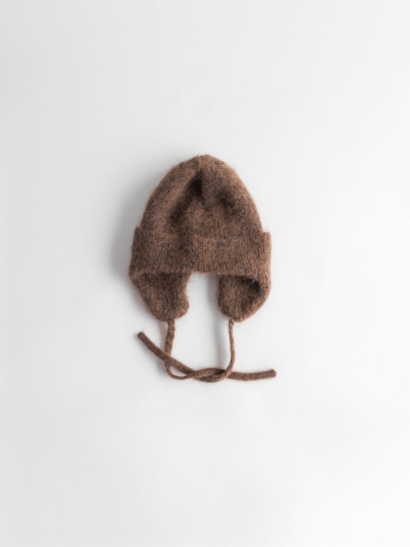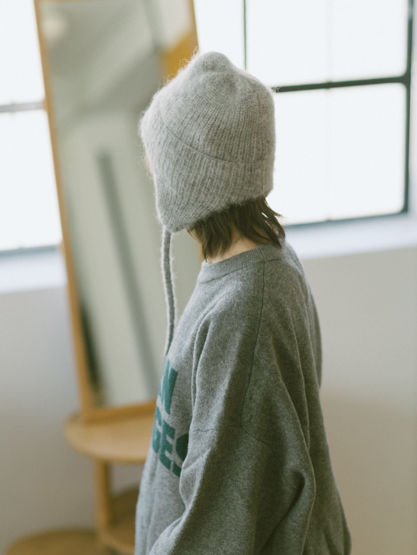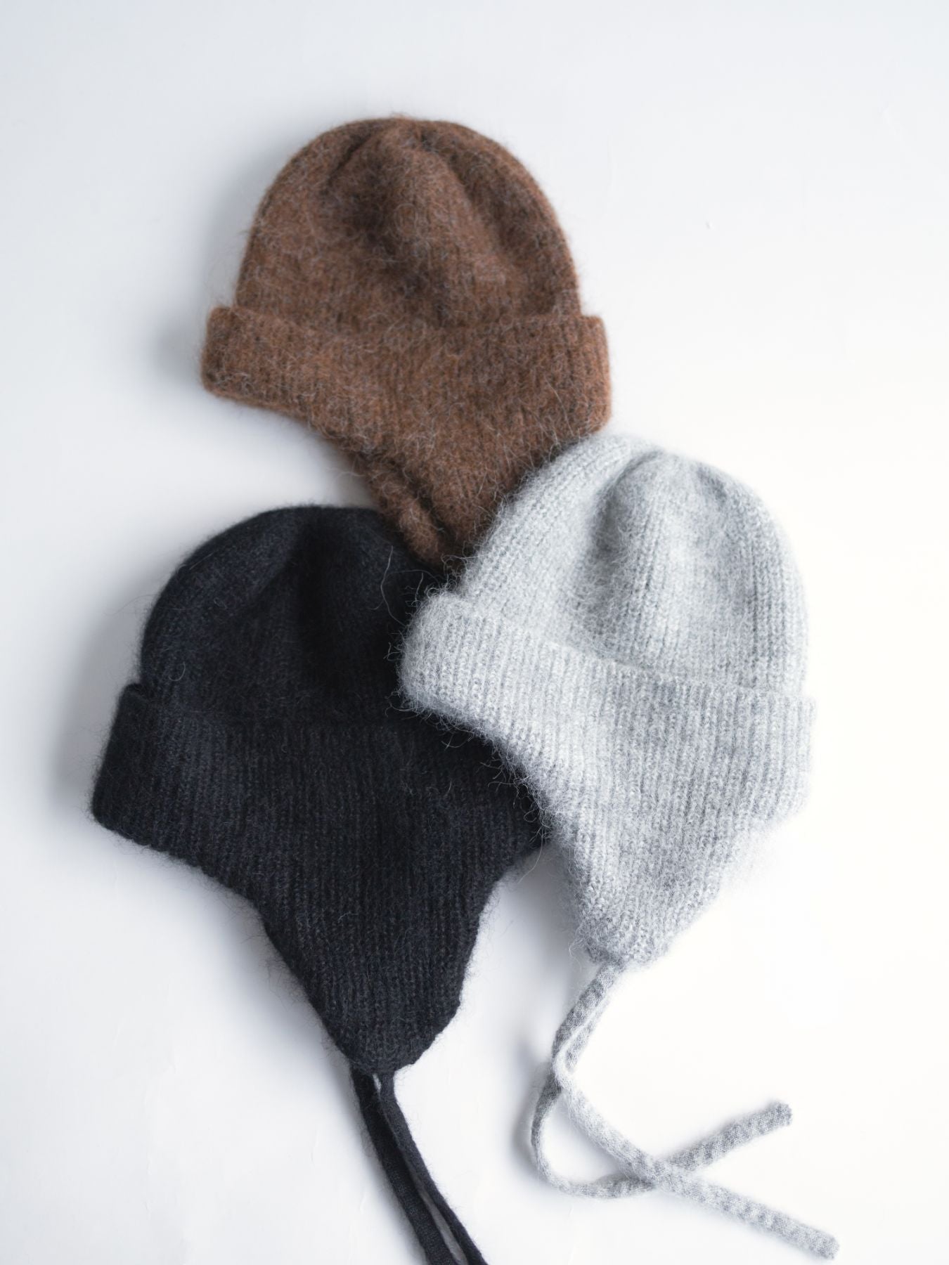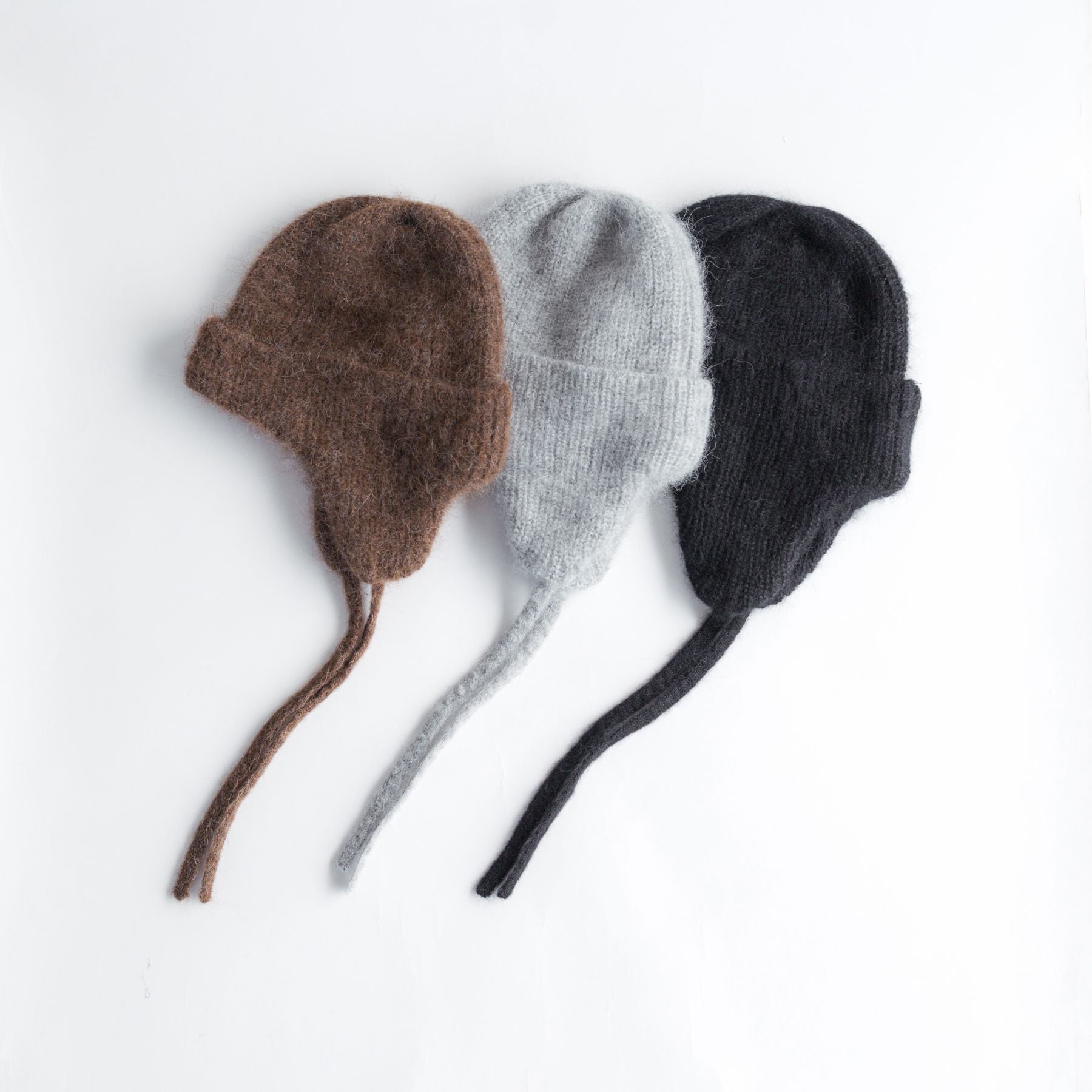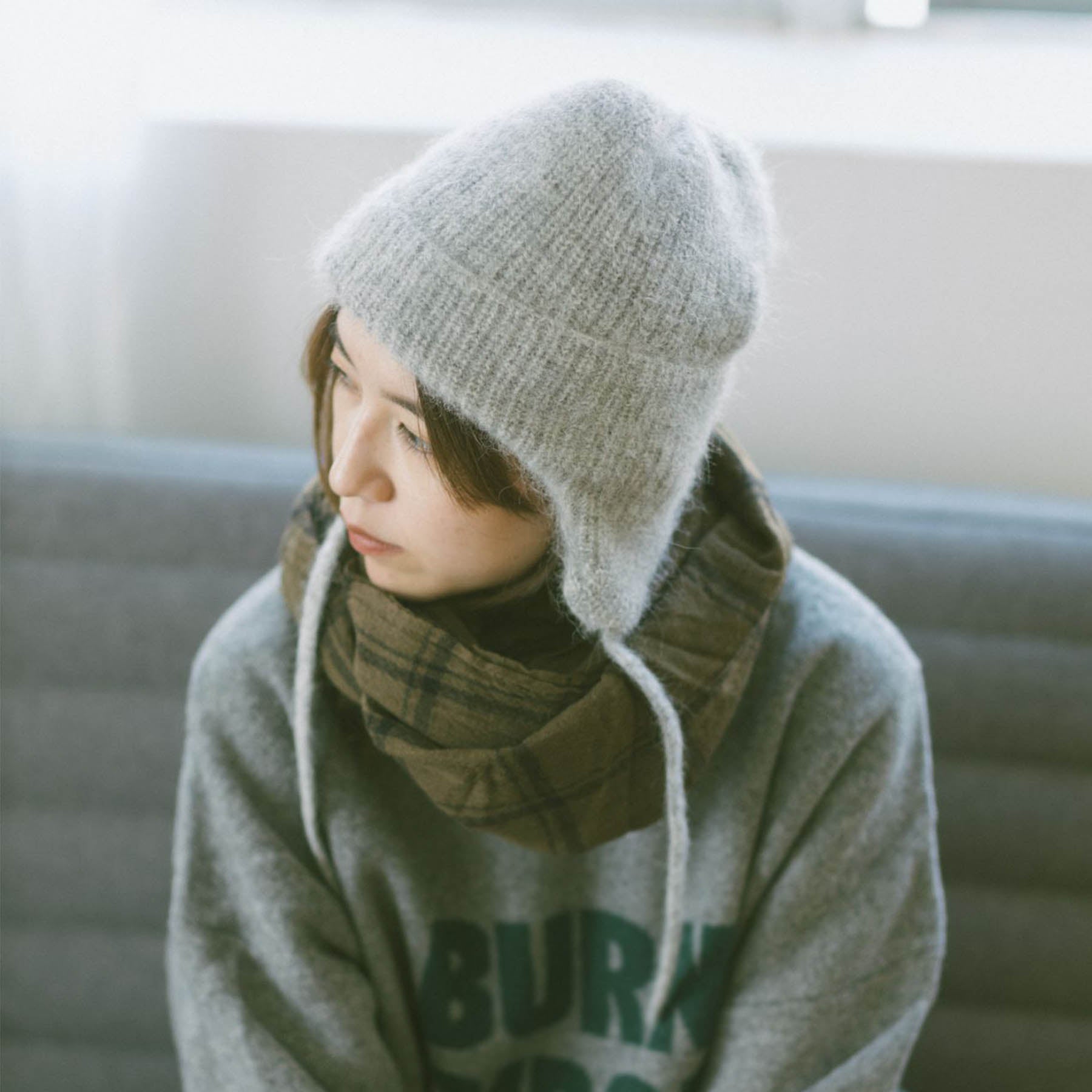 耳当て付きのデザインは、寒い季節の風から守ってくれ、まるで包まれるようなかぶり心地。冬の装いをやさしく彩ってくれますよ。