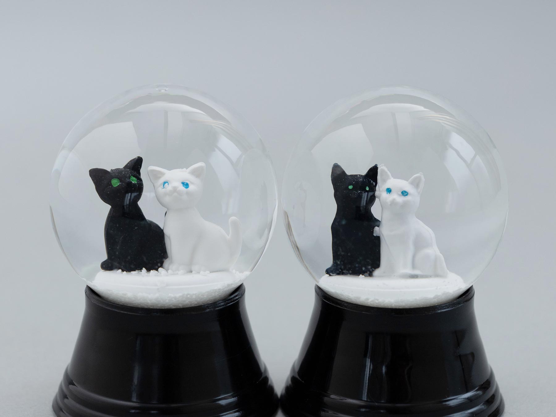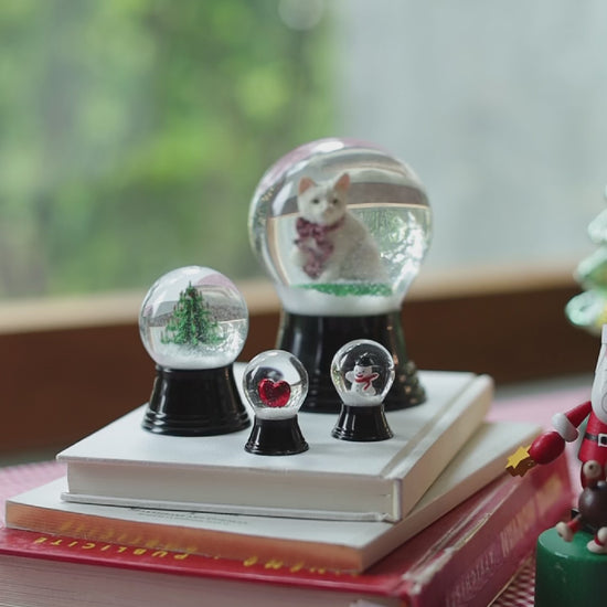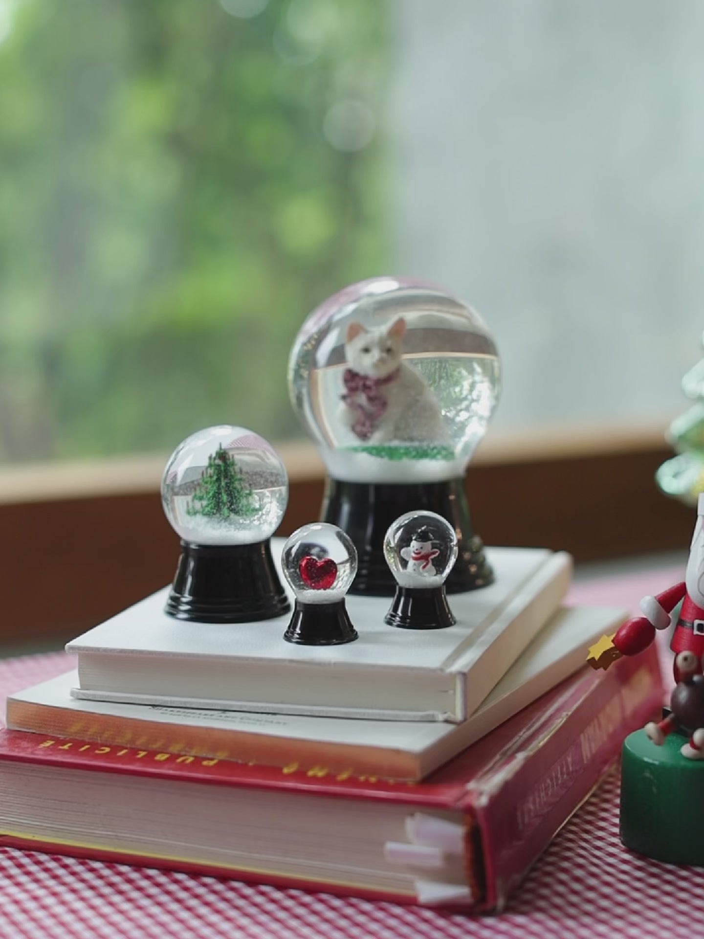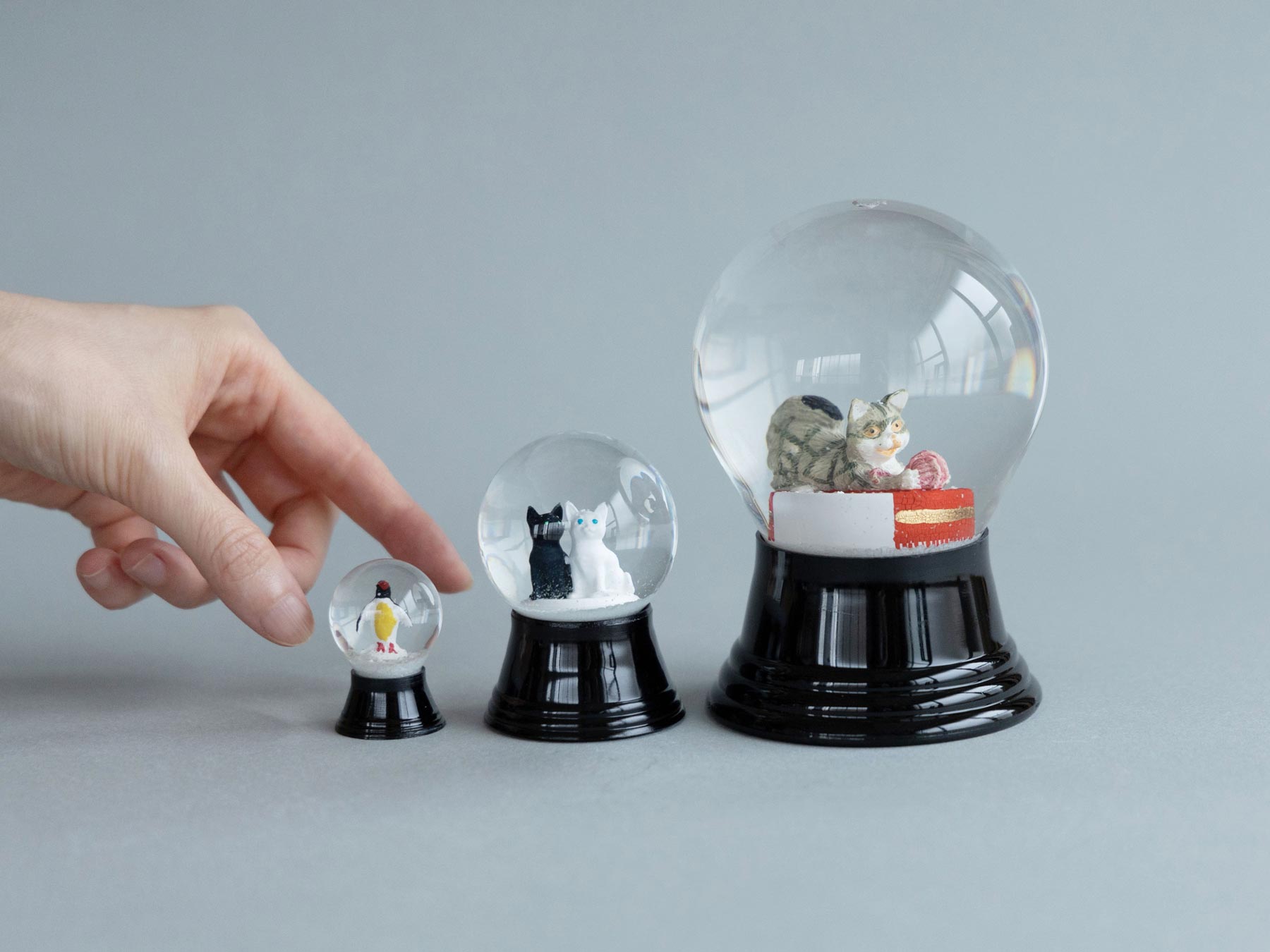 小さなドームの中に、モチーフがちょこんと佇む様子が印象的。スノードーム職人の手で一つずつ生み出される表情は、どれも個性があって素朴な温かみが感じられます。