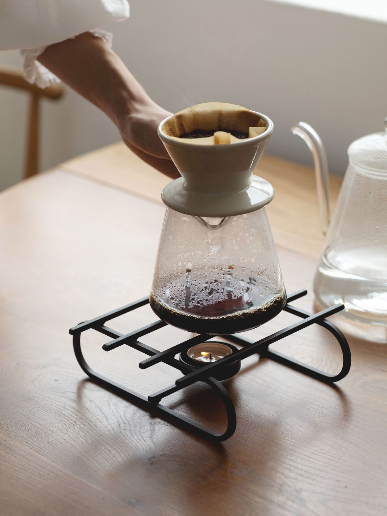 スウェーデンから届いた、アイアン製ポットウォーマー。下にキャンドルを灯すと、ティーポットを温かく保ってくれます。