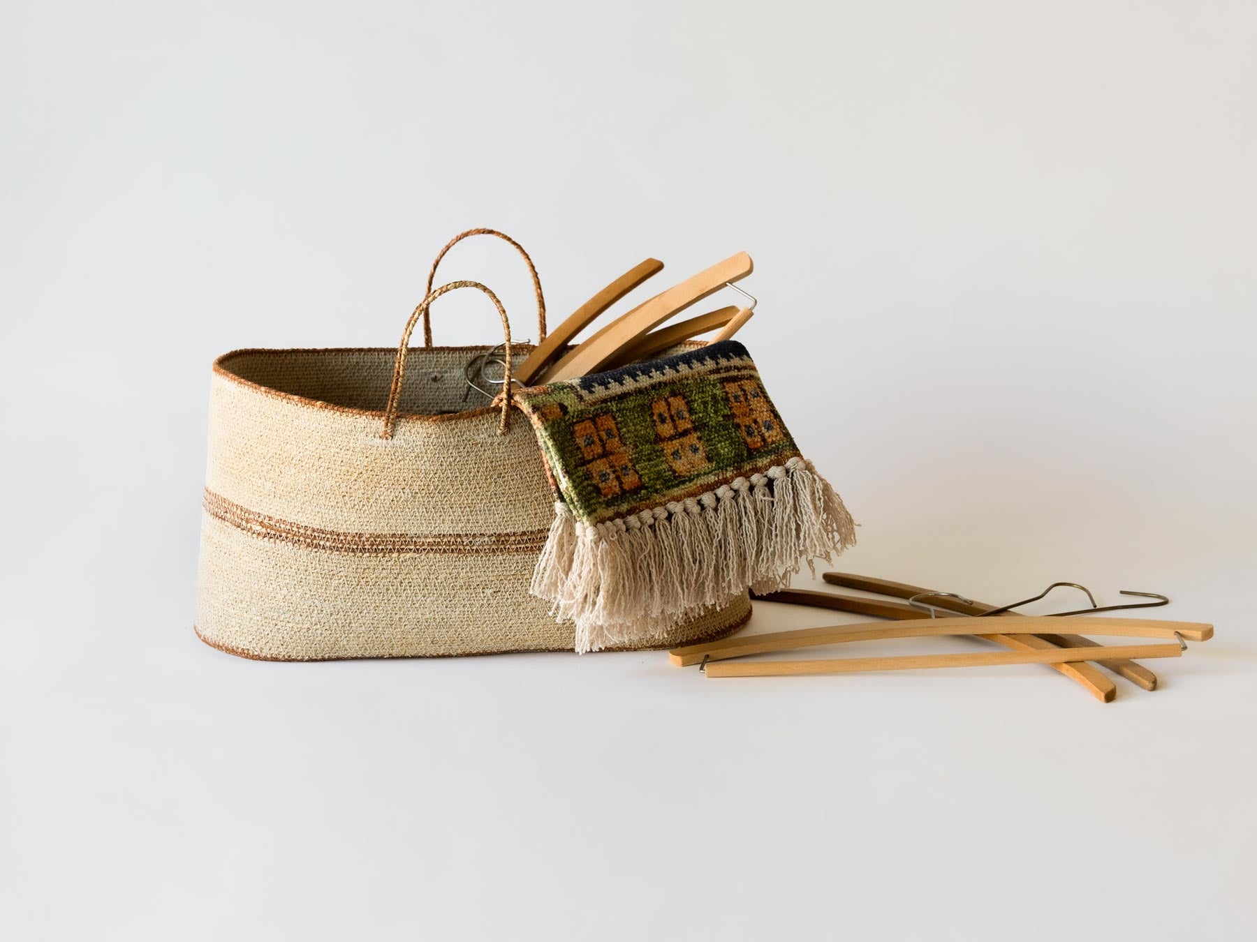 インドの職人さんによるハンドメイド。一点一点、手仕事ならではの温かみを感じられるクラフトバスケットです。