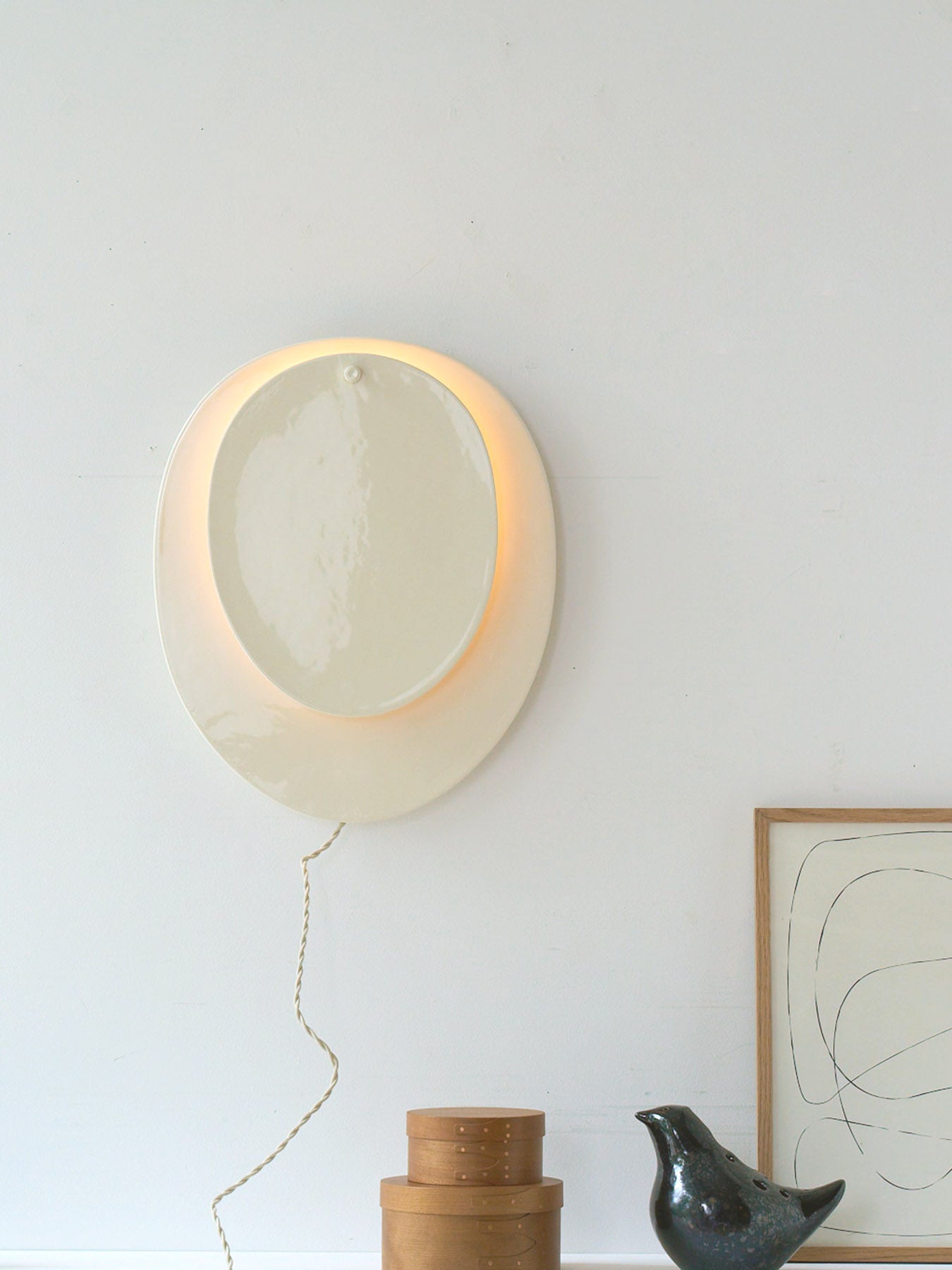 スイスのデザインスタジオ Studio Ottawa が手がけたウォールランプ「NEBULA」は、2枚のセラミックディスクを重ね合わせた構造で、その間から柔らかな光をにじませます。宇宙の彼方で光る星雲(Nebula)をイメージしています。