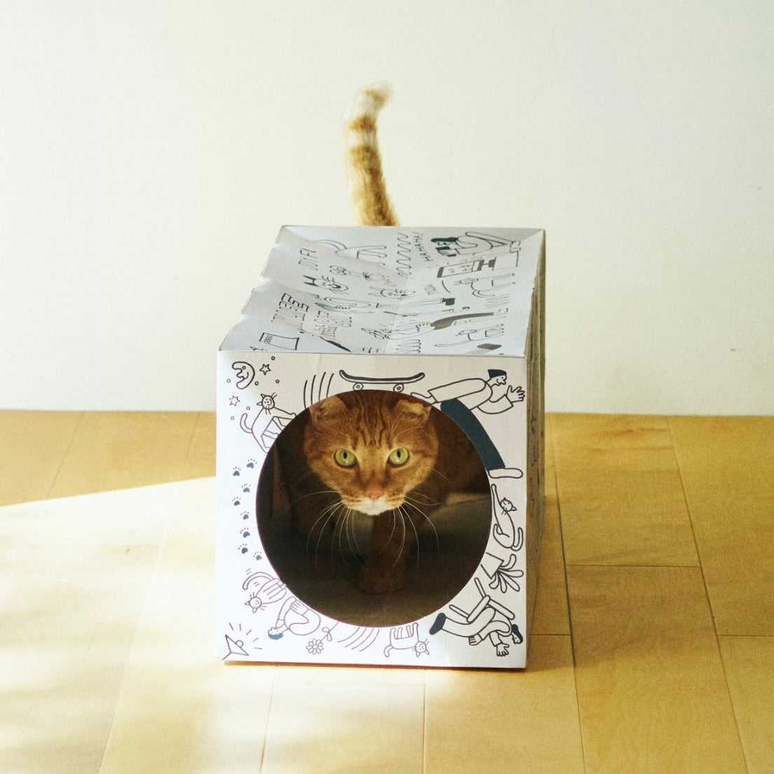 ネコとの暮らしにある、なにげなく愛しい瞬間。このネコトンネルには、そんなシーンを切り取ったアートワークが贅沢にも全面にプリントされています。